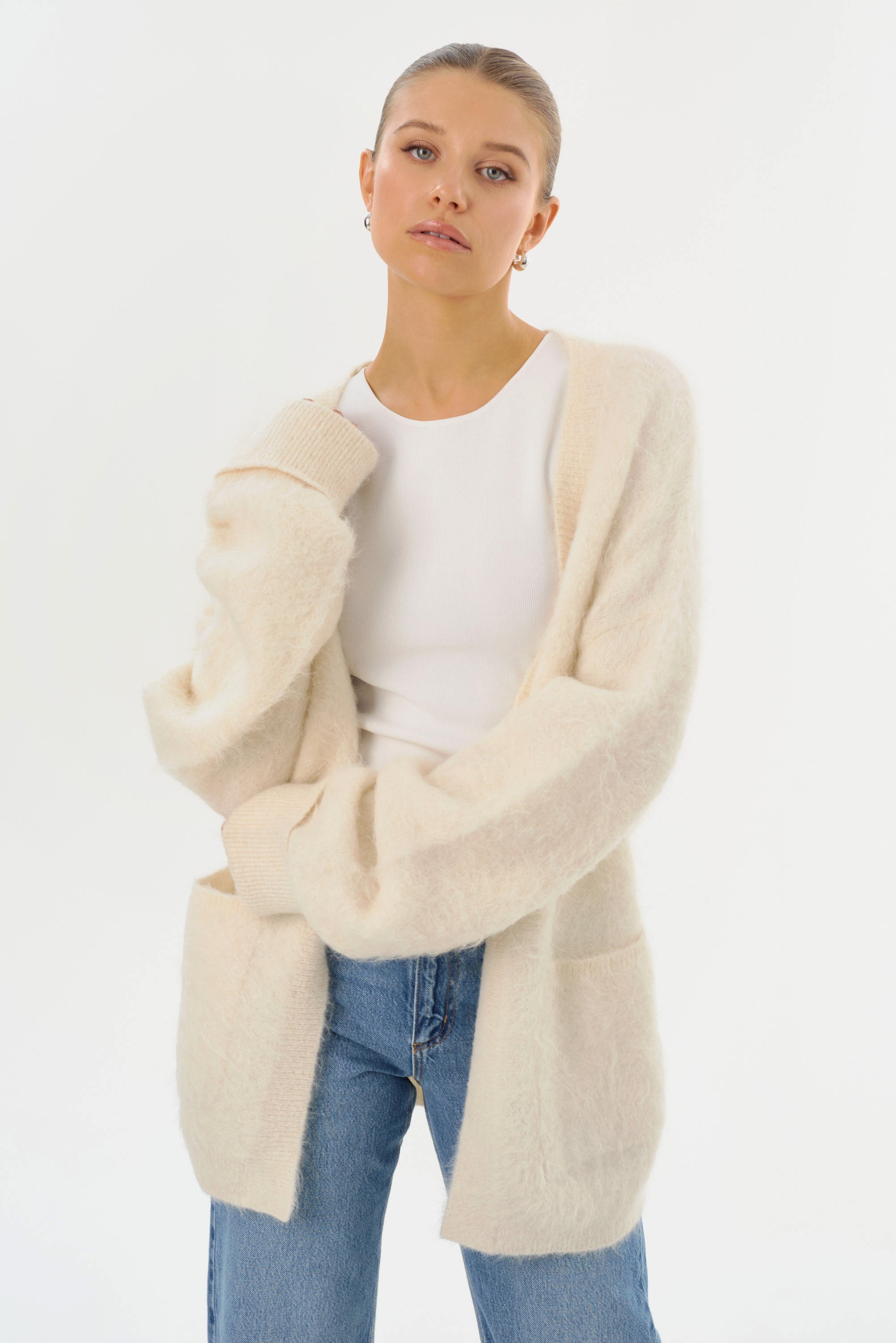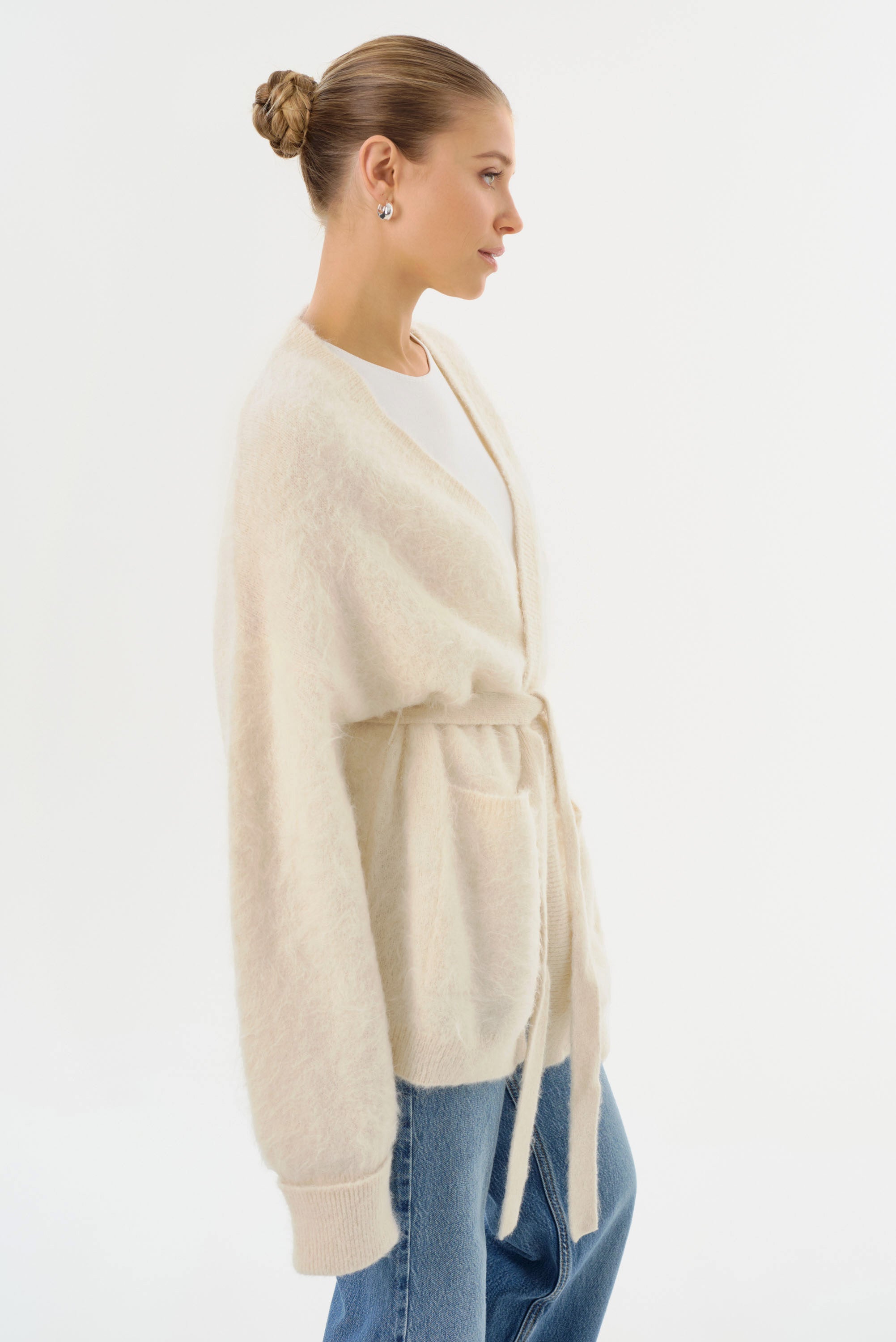 Le cardigan en laine BALERA combine sans effort luxe et confort, en faisant un incontournable pour la femme sophistiquée. Confectionné en laine d'alpaga de qualité supérieure, ce cardigan est doté d'une ceinture à nouer pour un ajustement personnalisé et de poches plaquées pour une fonctionnalité accrue. La longueur de manche exagérée et les poignets repliés apportent une touche contemporaine. Associez-le au pantalon en laine TARAN pour un look complet et chic.