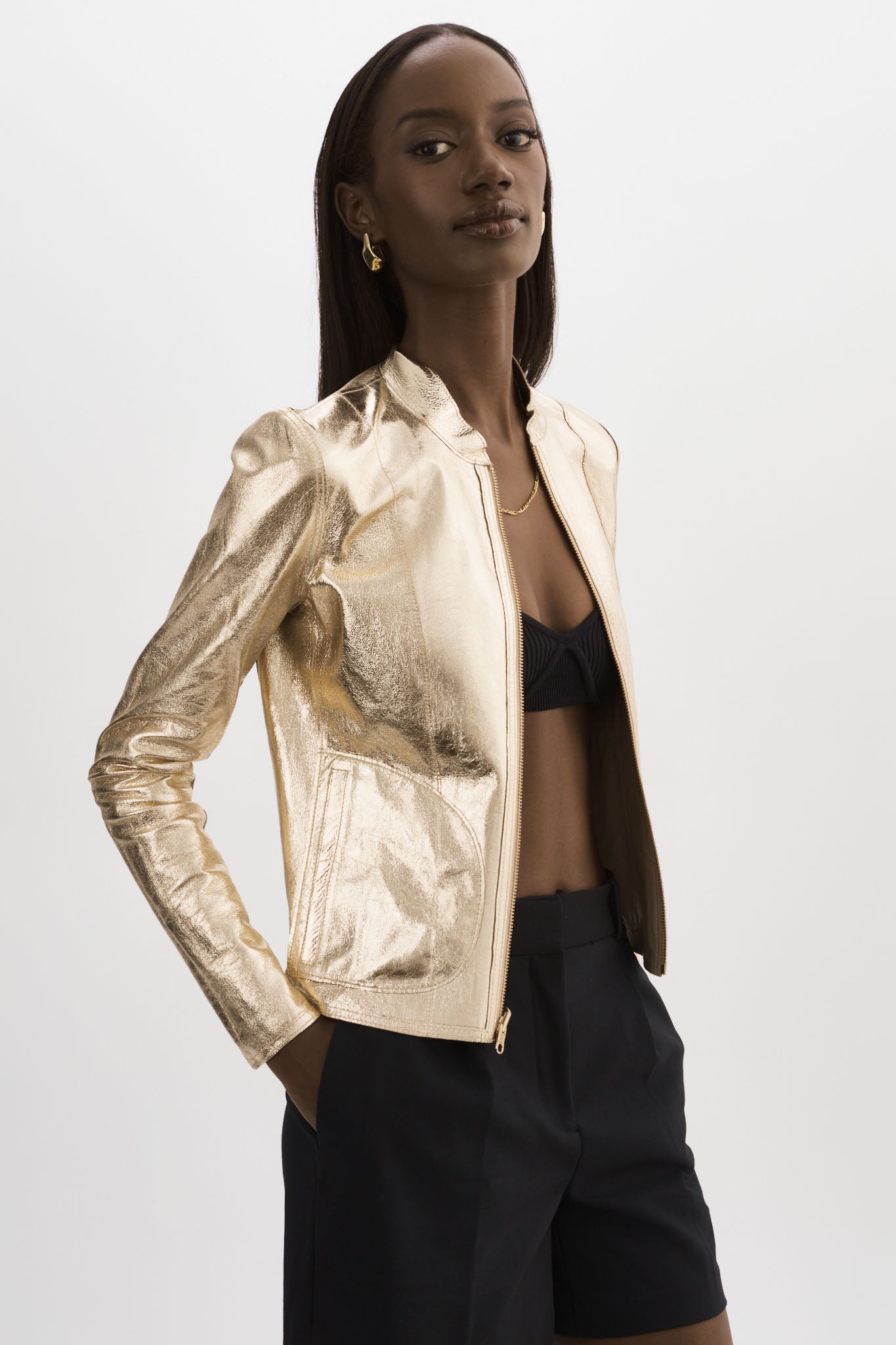 Remettant la doudoune traditionnelle au goût du jour avec des textures rafraîchissantes et une silhouette plus fine, la Chapin est à la fois luxueuse et polyvalente. Conçue en cuir d'agneau noir pour un look classique, sa doublure argentée est réversible pour un tout nouveau style brillant qui attirera tous les regards.