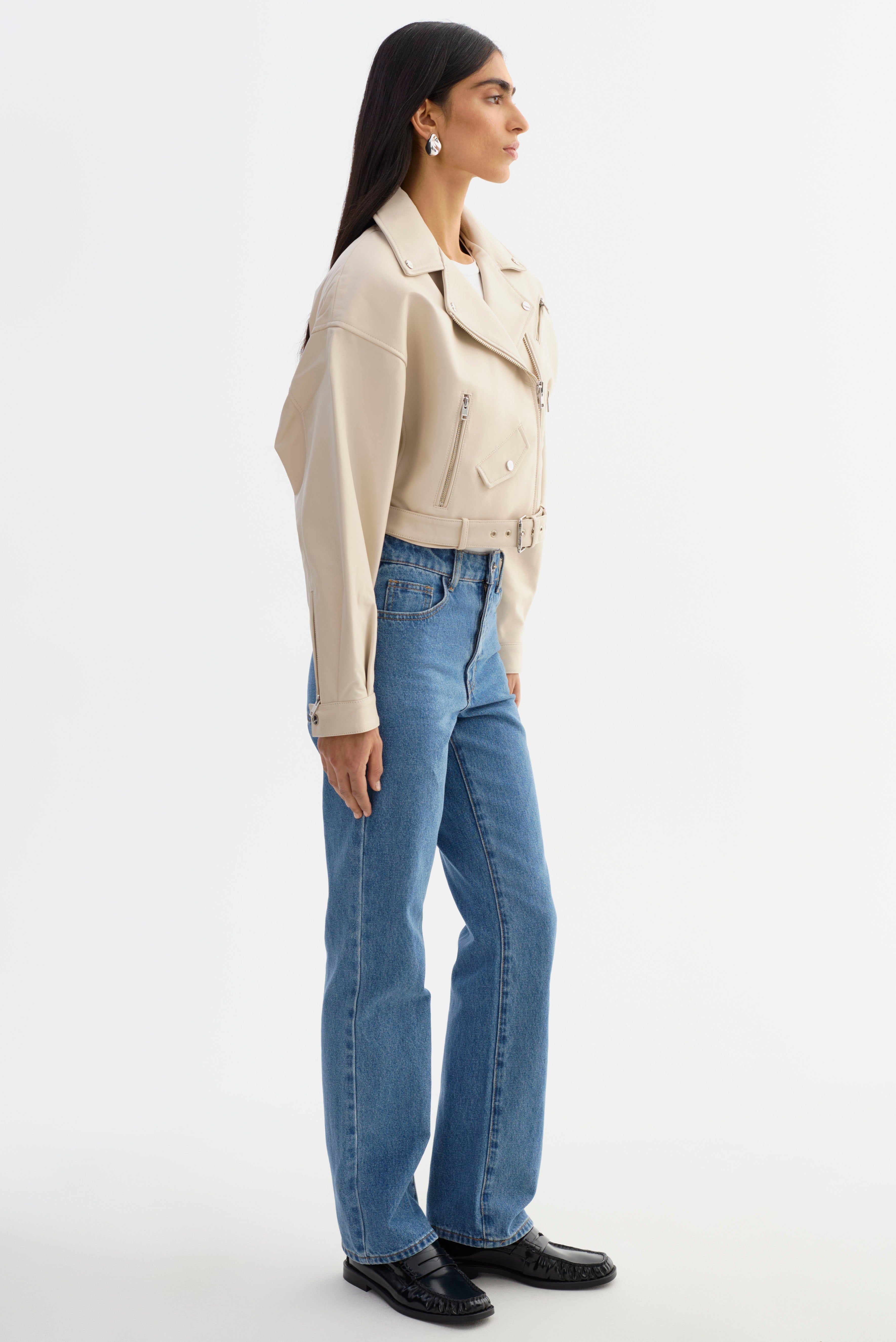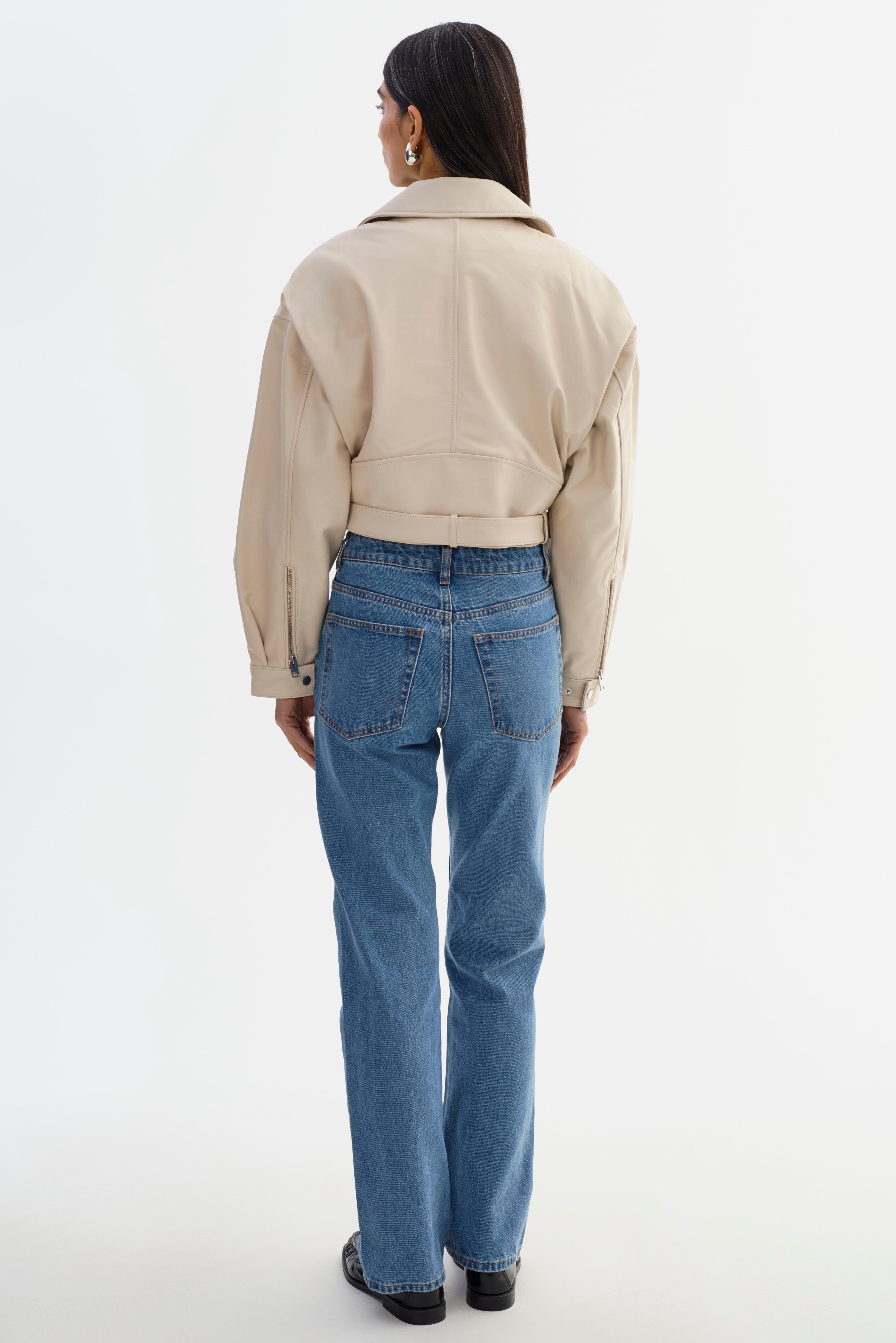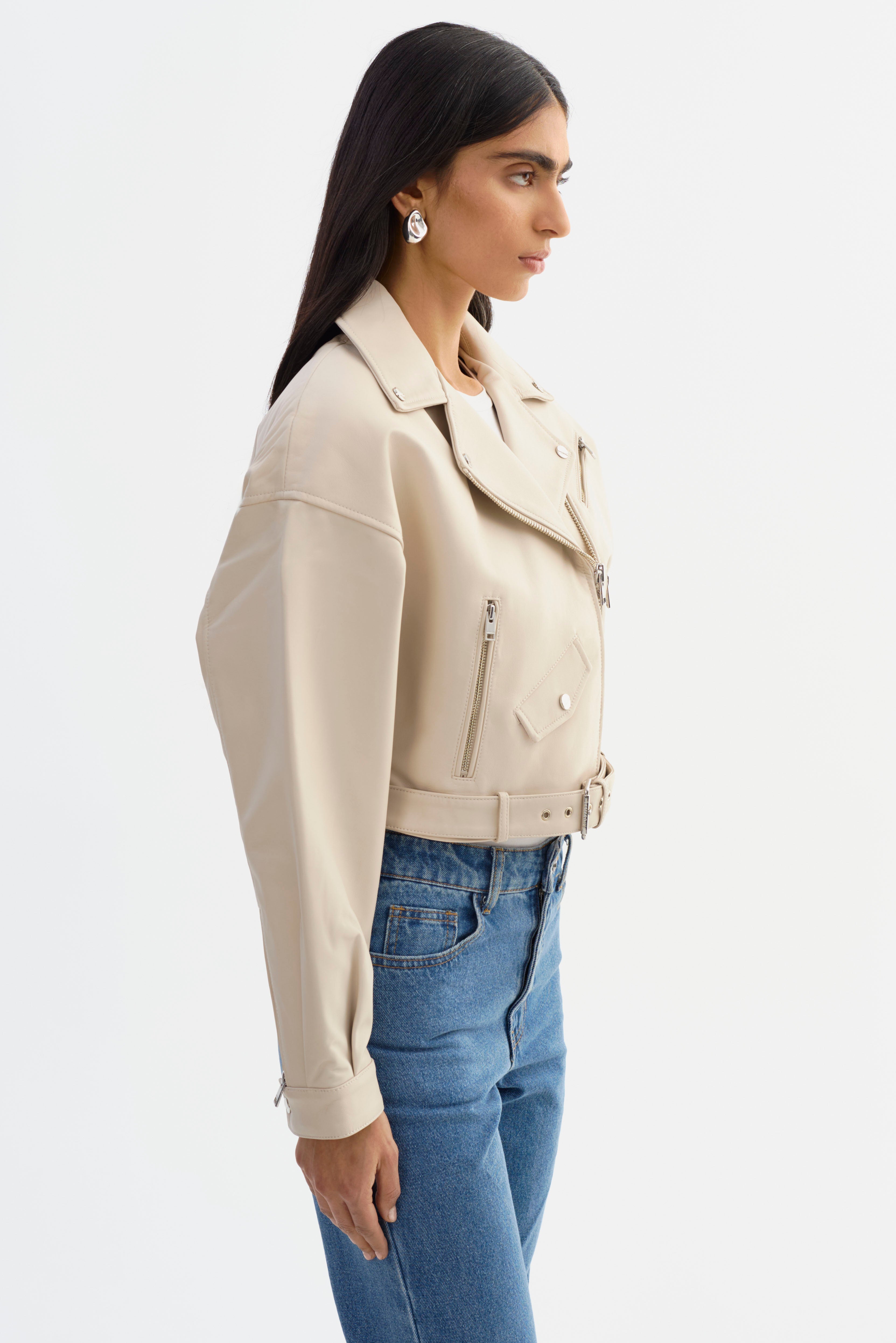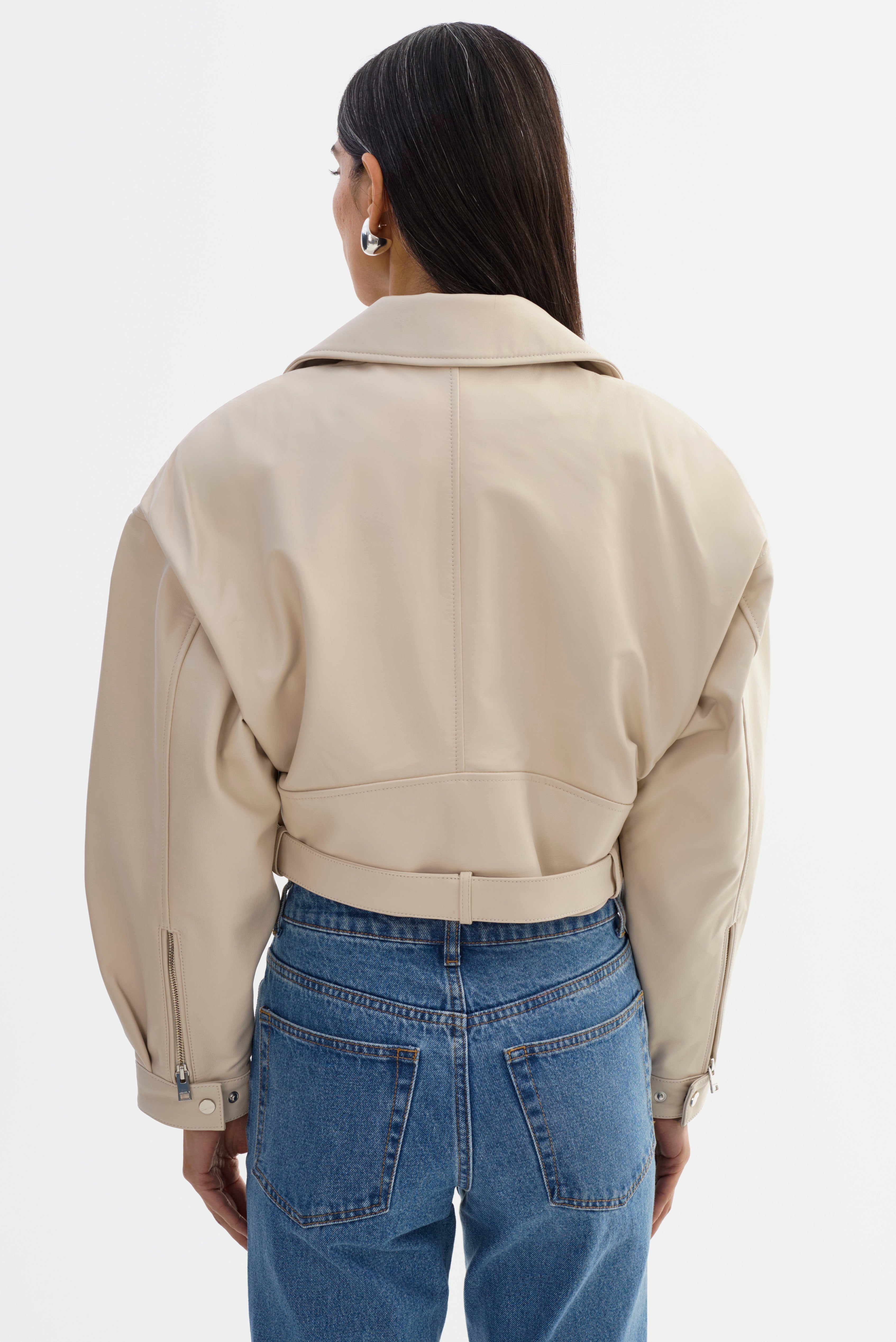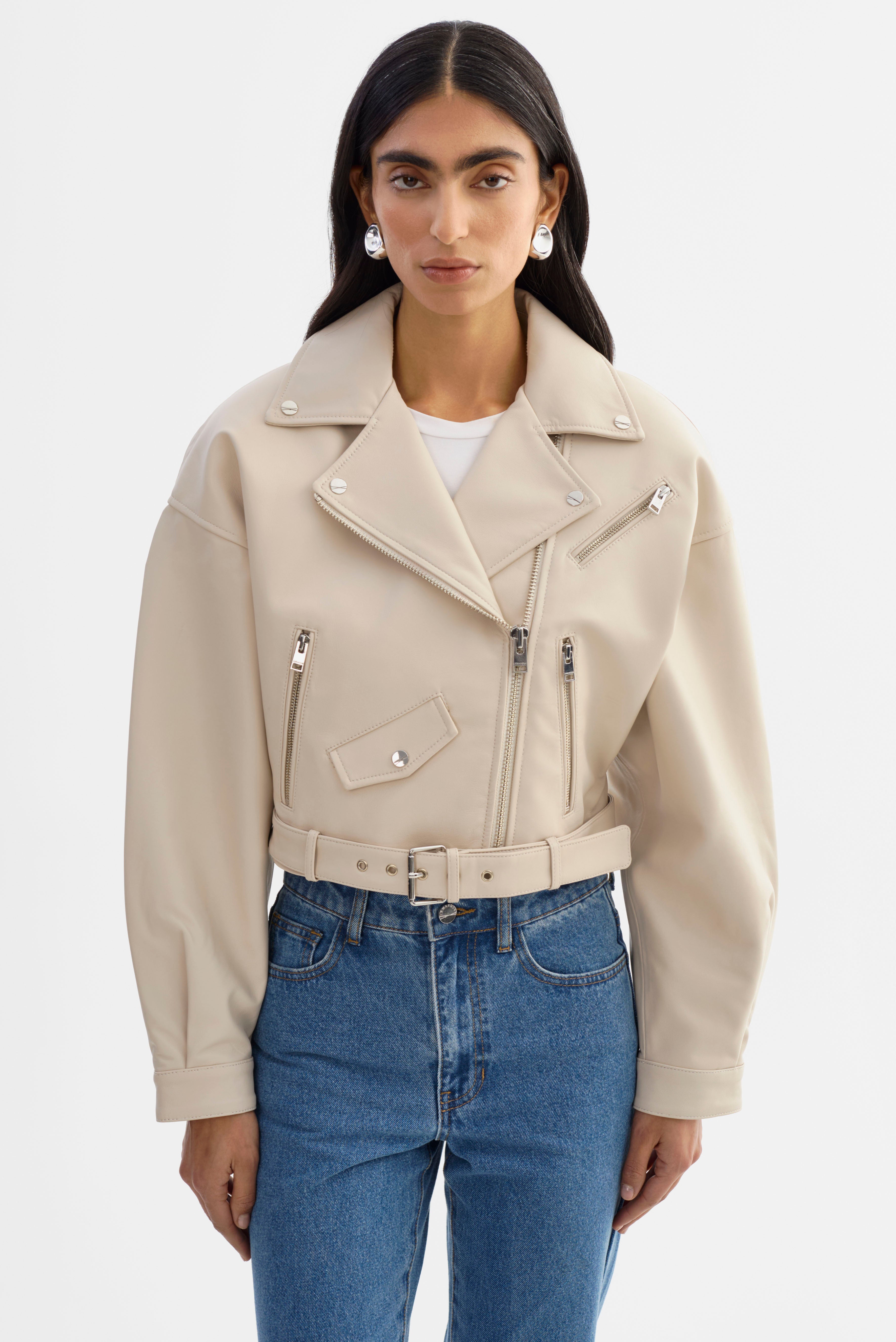 Sometimes, there's no better feeling than commanding the room. Bring back the best of the 80s with this vintage-inspired cropped leather jacket. Featuring classic biker elements and unexpected stand-outs like shoulder pads and balloon pleated sleeves, you'll stand out from the rest when you rock the Dylan. A coin flap pocket and a removable waist belt add unique touches to this lamb leather stunner. A true statement piece, this 80s leather jacket is an instant head-turner.
