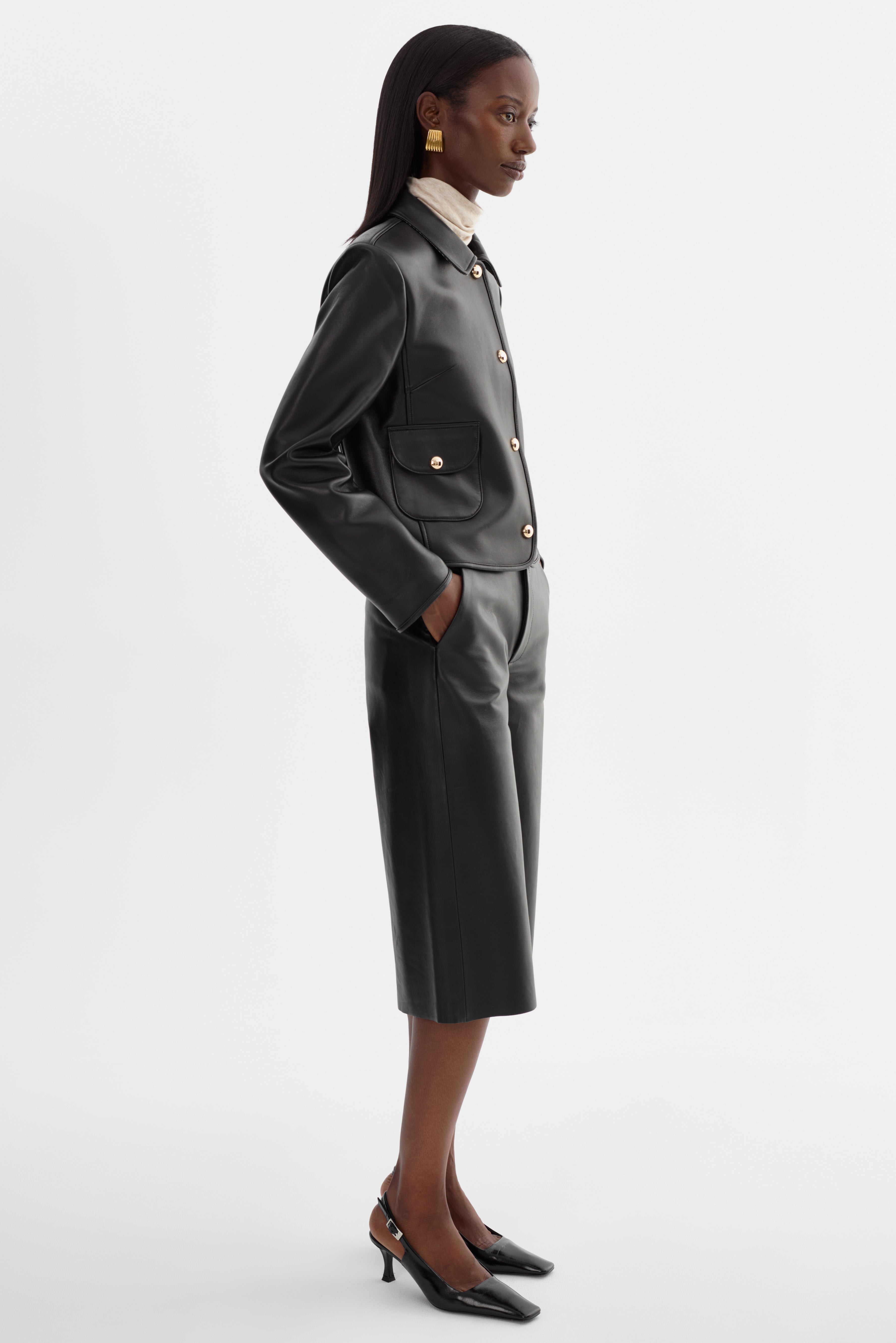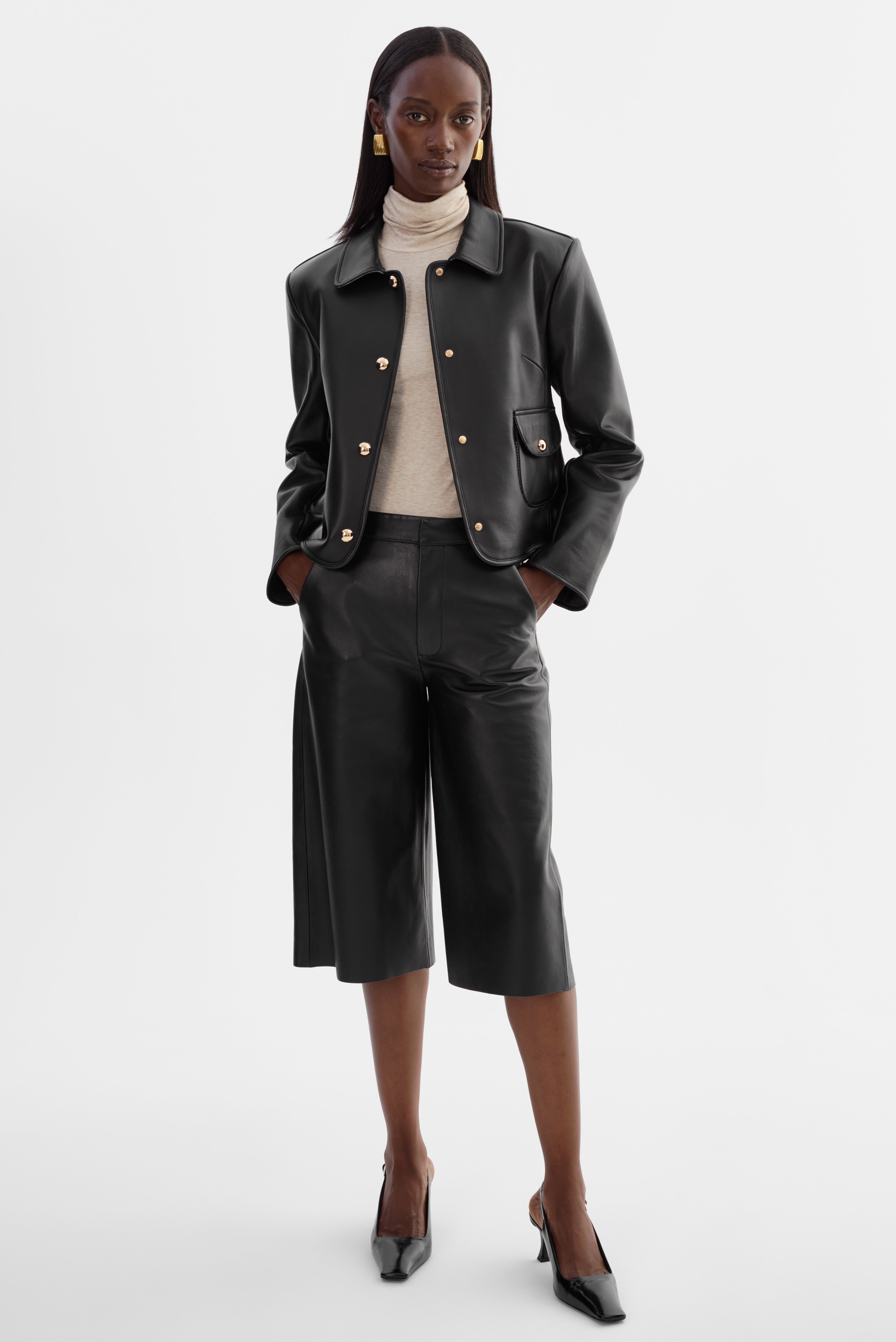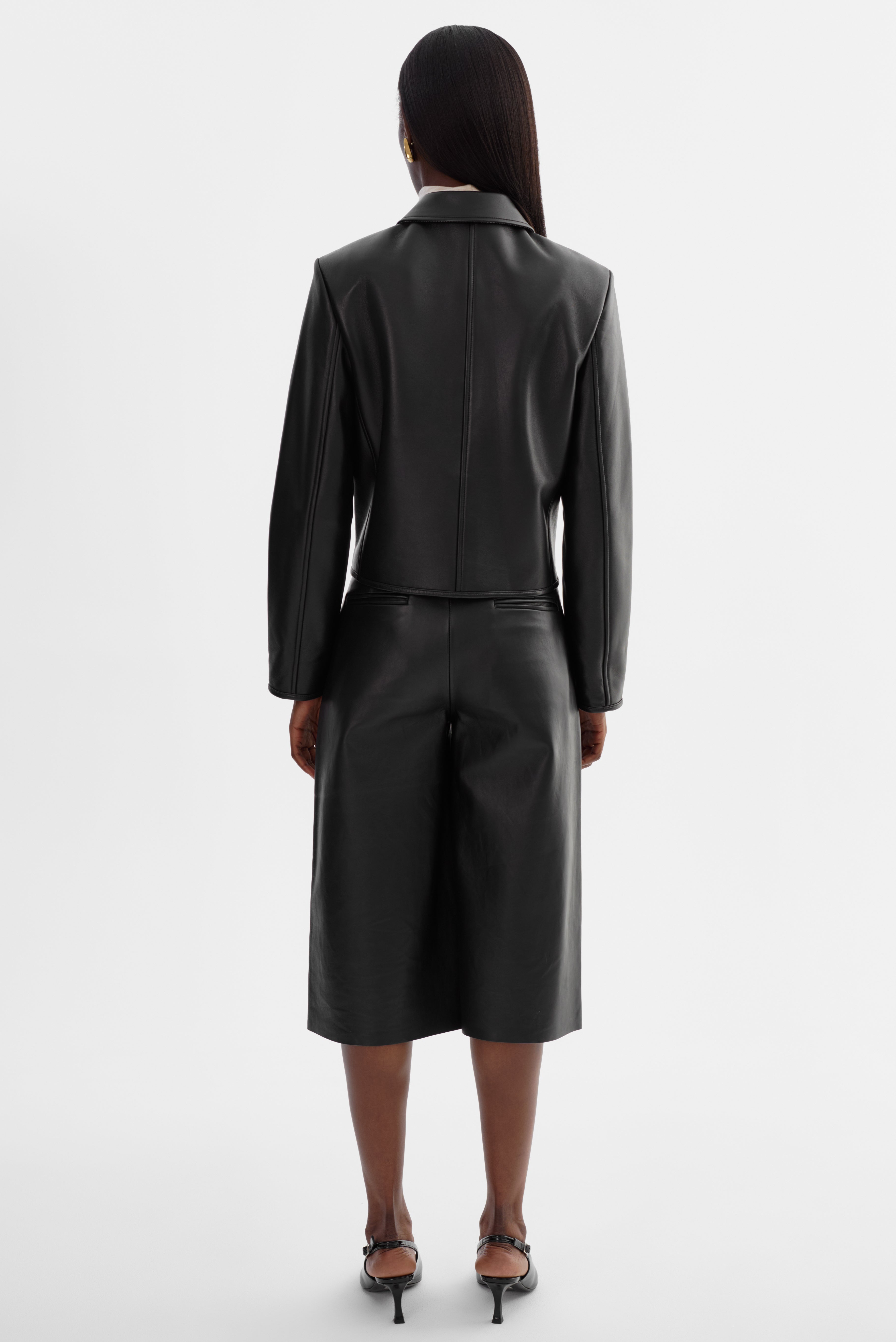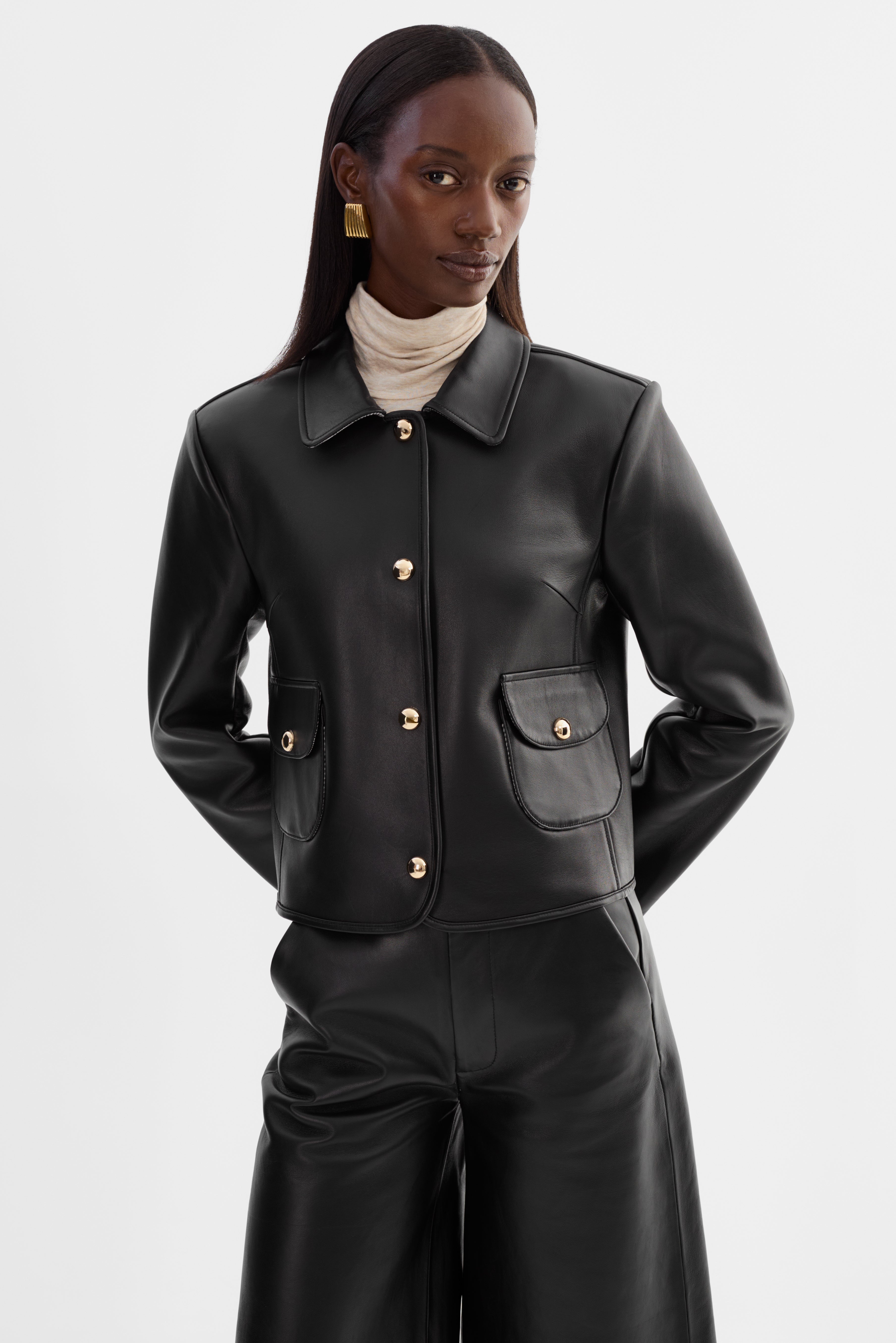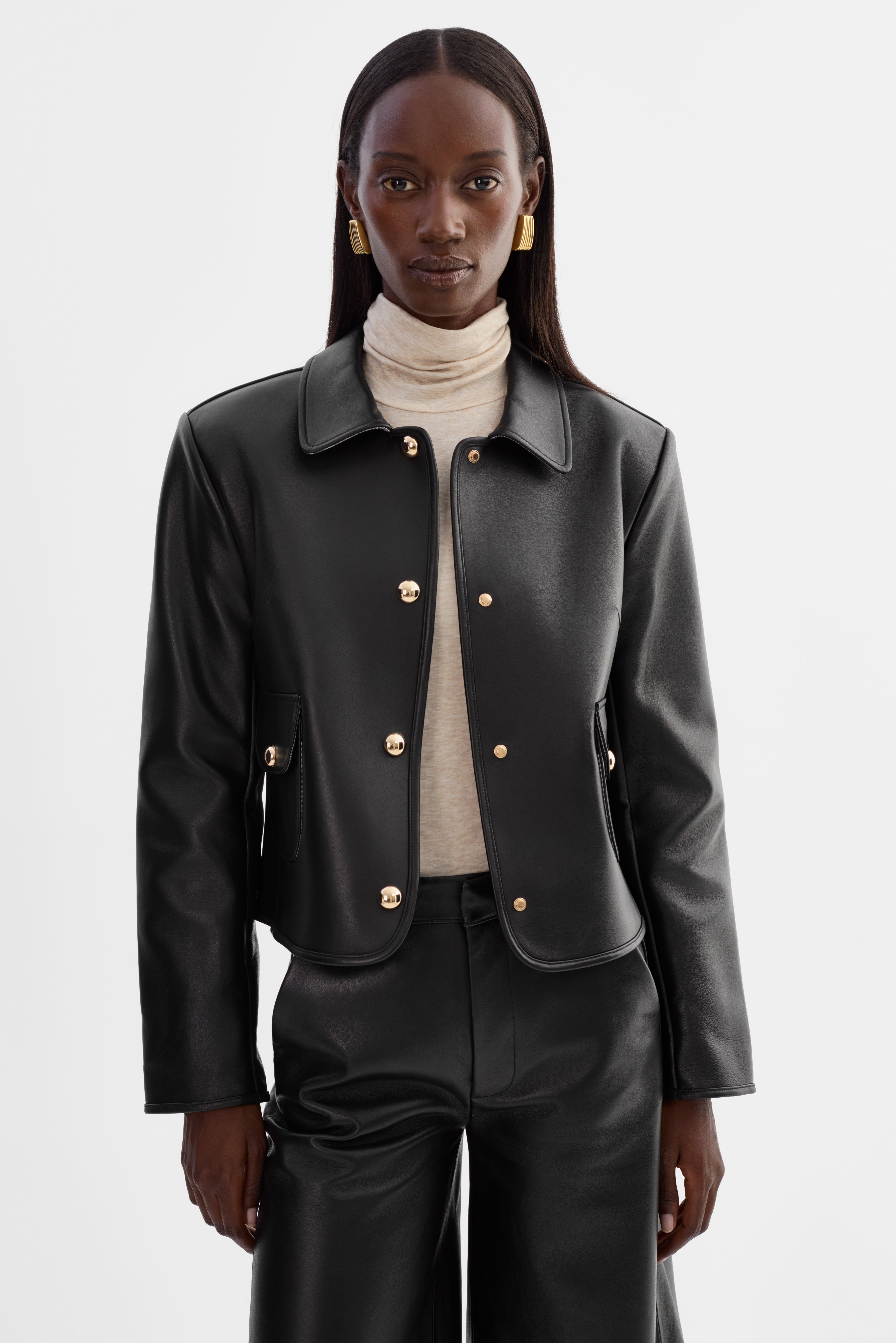La veste en cuir FRANCESCA allie charme vintage et élégance moderne. Dotée d'un col rond, d'une coupe structurée et de boutons-pression dorés, elle allie détails féminins et style intemporel. Ses poches plaquées lui confèrent une touche pratique, tandis que sa silhouette épurée lui confère élégance et raffinement.