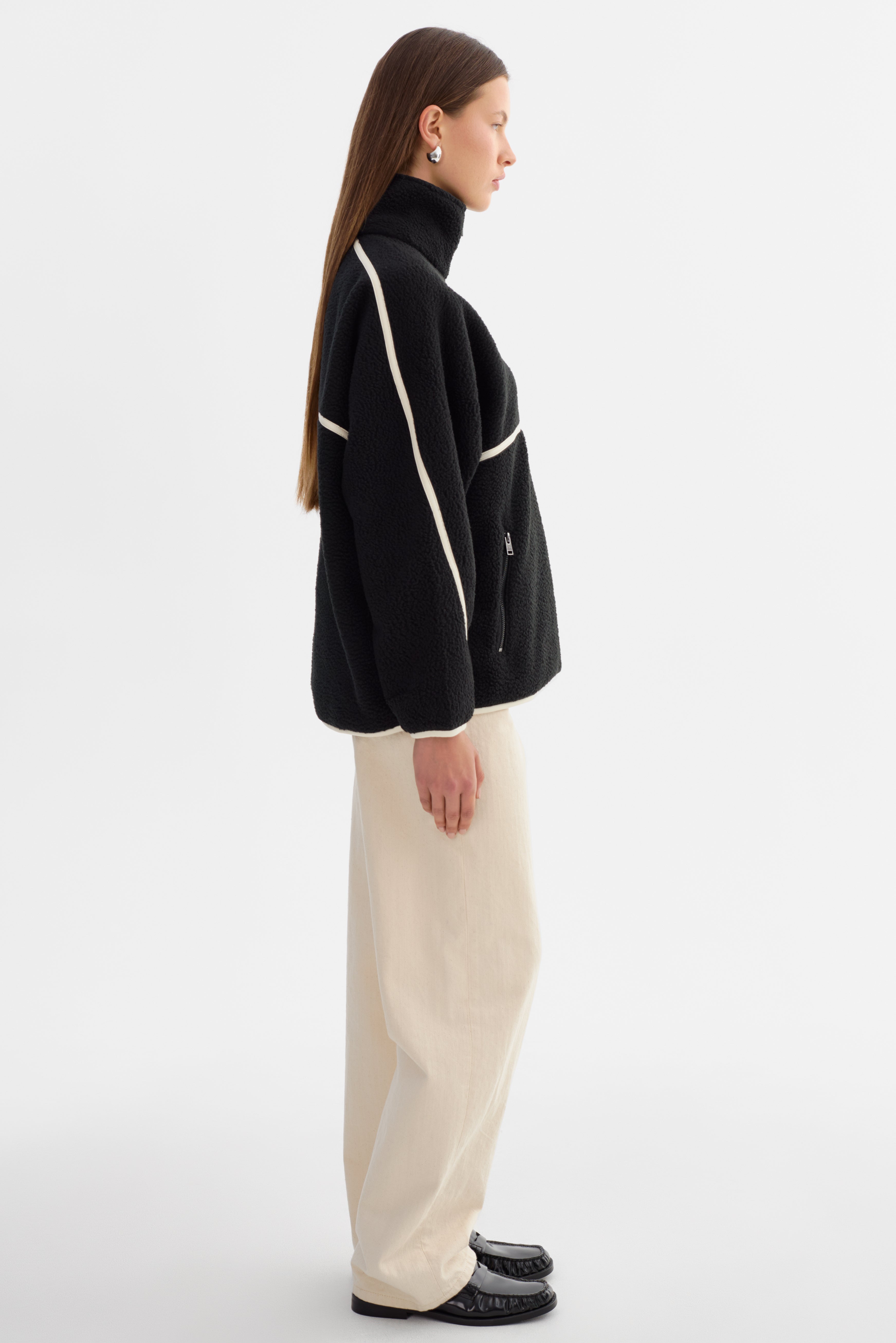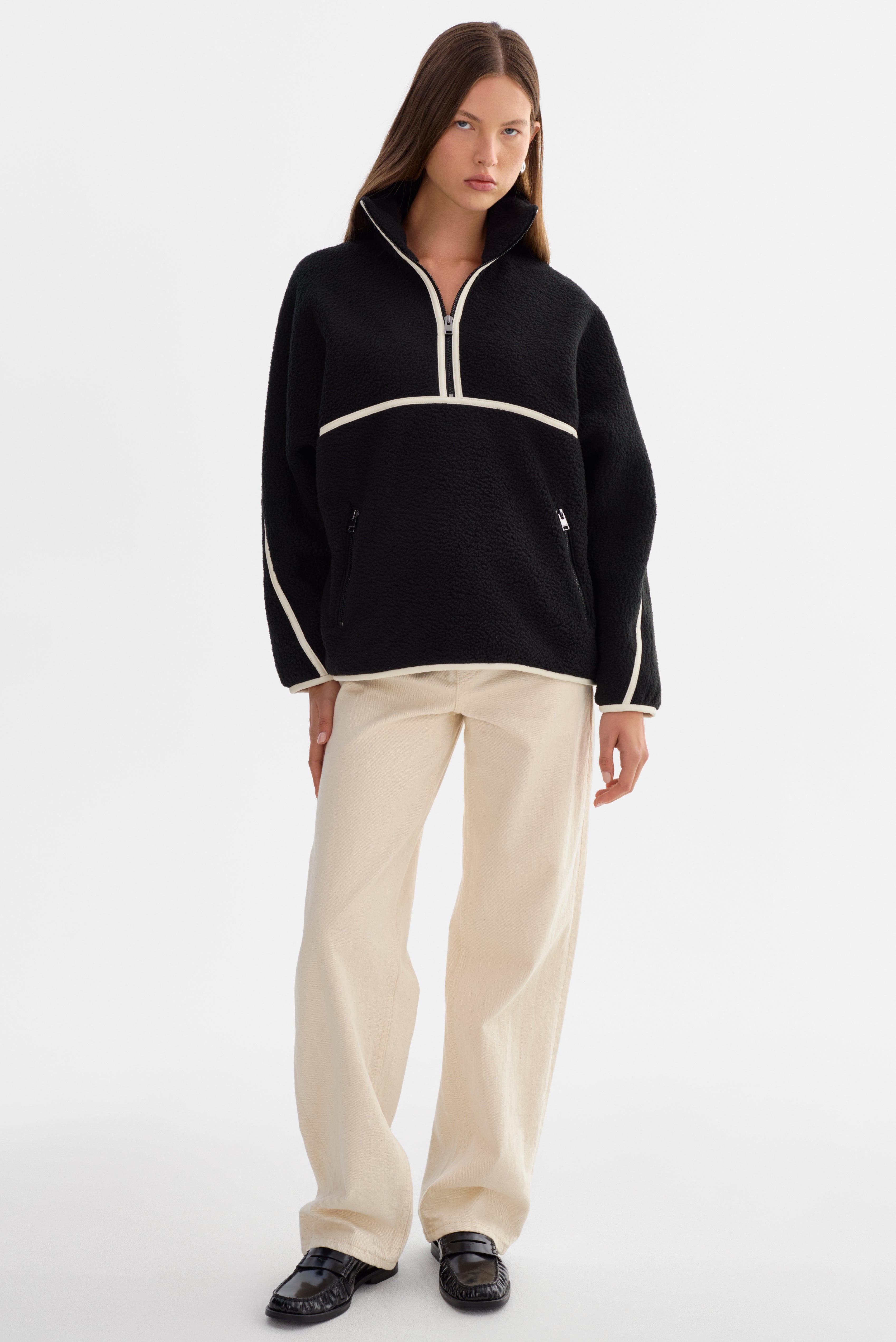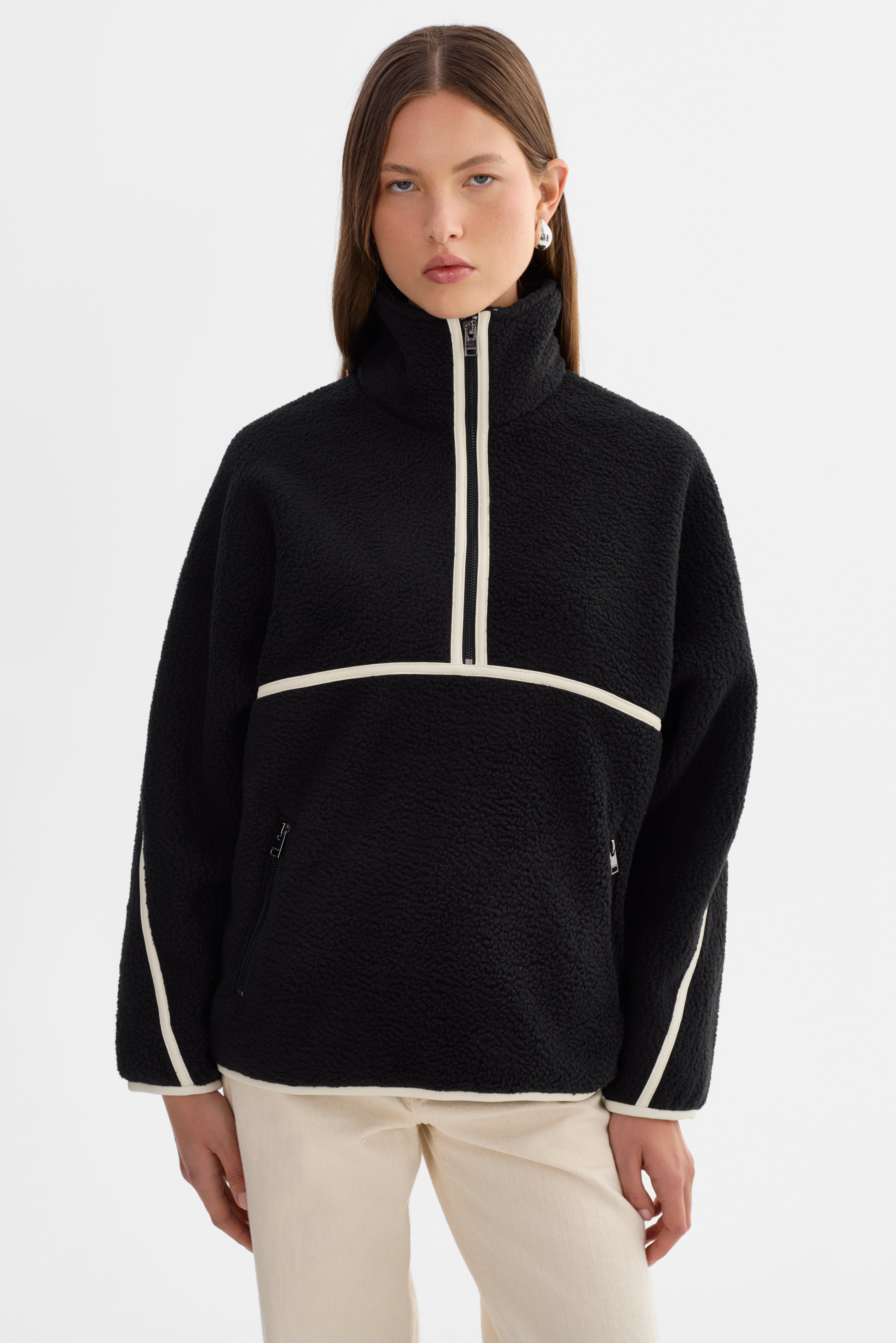 Parfait pour les week-ends en déplacement, le pull demi-zippé HELSA élève l'esthétique athleisure vers de nouveaux sommets de bon goût. La texture de la polaire moelleuse contraste avec le passepoil en similicuir, ce qui en fait un incontournable de votre garde-robe pour affronter le froid cette saison.