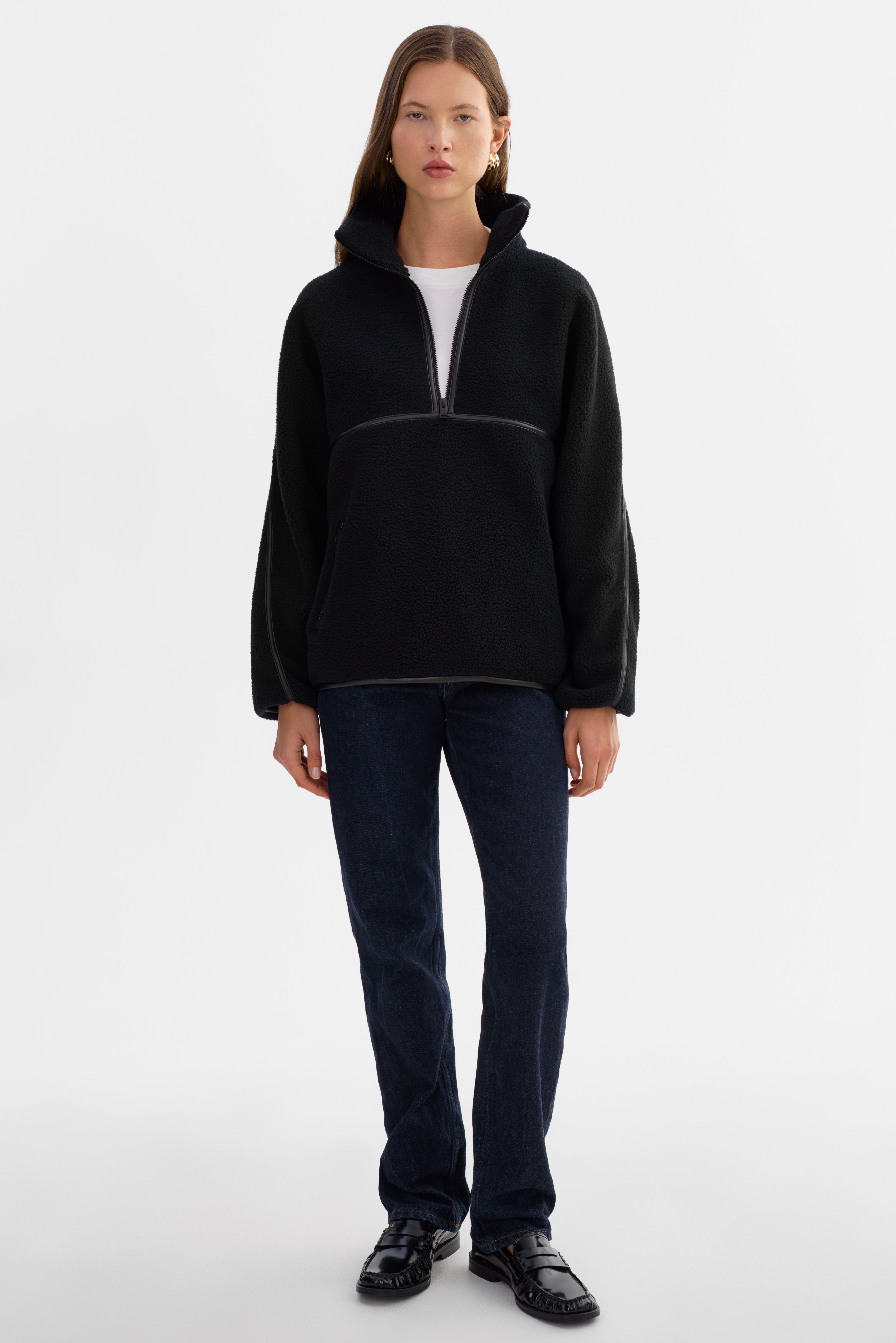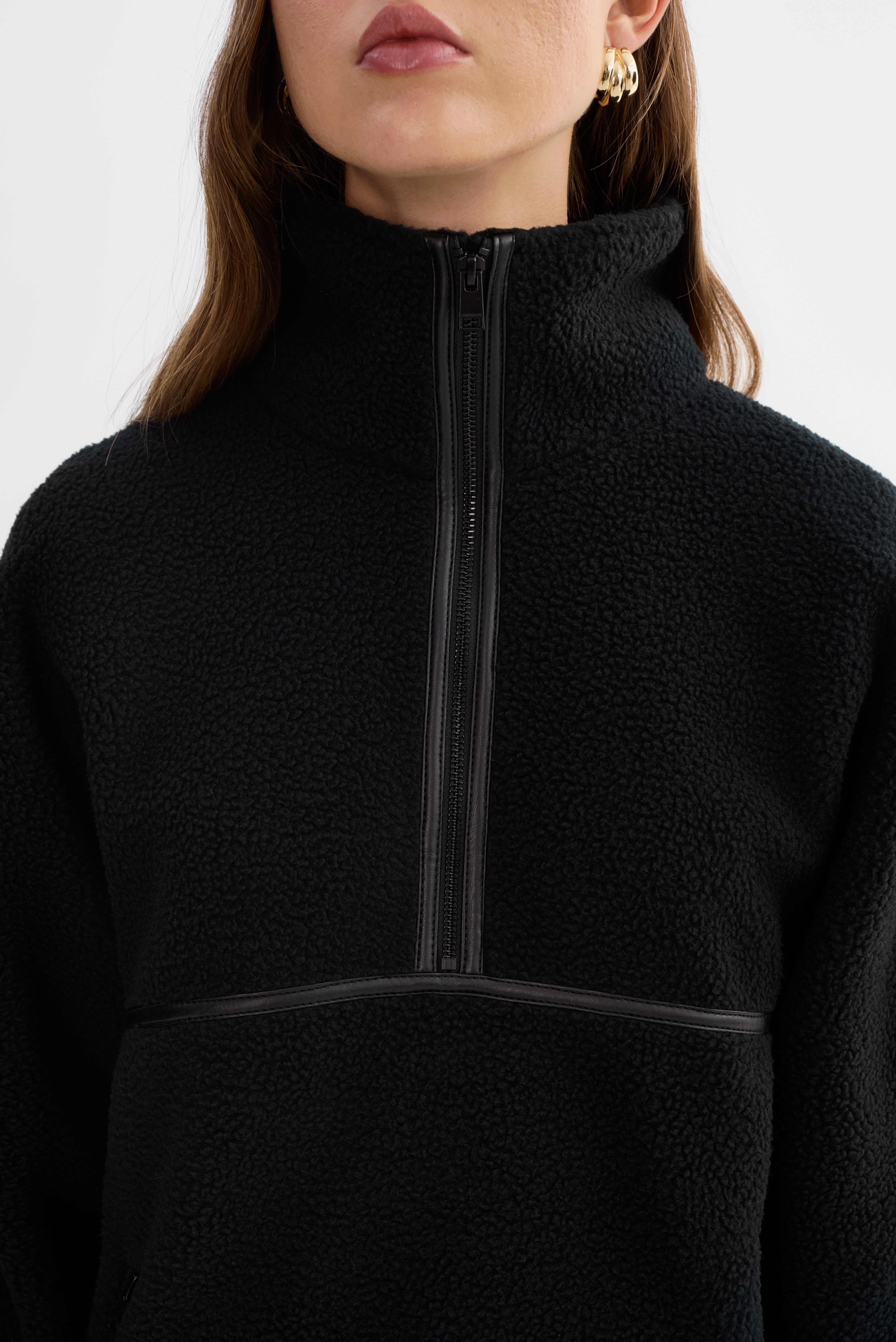 Parfait pour les week-ends en déplacement, le pull demi-zippé HELSA élève l'esthétique athleisure vers de nouveaux sommets de bon goût. La texture de la polaire moelleuse contraste avec le passepoil en similicuir, ce qui en fait un incontournable de votre garde-robe pour affronter le froid cette saison.