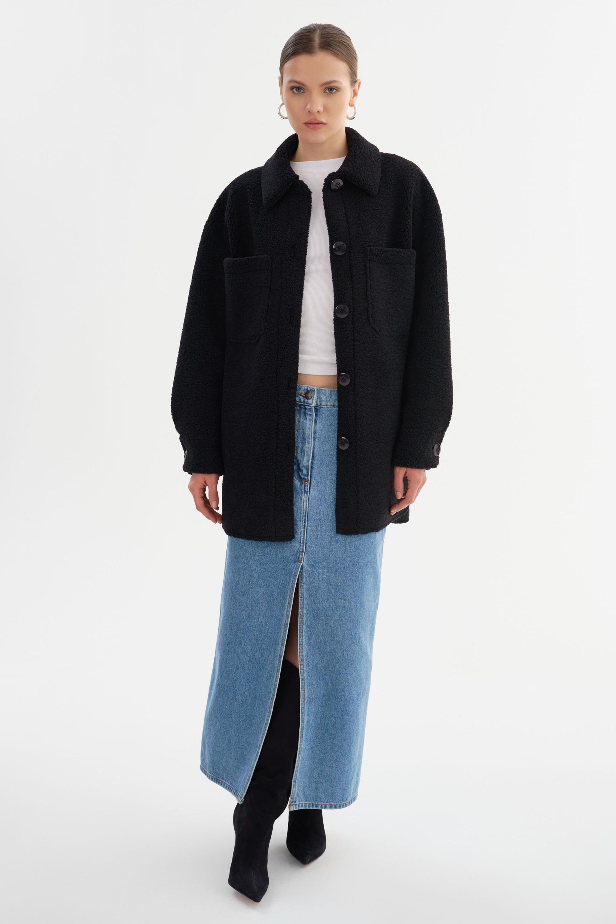 La surchemise en sherpa KANE allie parfaitement le style décontracté d'une chemise à la chaleur douillette d'une veste en sherpa oversize, en faisant un incontournable de la garde-robe d'automne. Dotée d'une fermeture à patte boutonnée, d'une poche plaquée sur la poitrine et de poches passepoilées, elle allie style et praticité. Son ourlet légèrement plus long à l'arrière apporte une touche subtile à sa silhouette décontractée, en faisant la pièce idéale à superposer. Parfaite pour les week-ends décontractés ou pour se réchauffer lors des journées fraîches, cette pièce polyvalente ajoute une touche chic sans effort à n'importe quelle tenue.