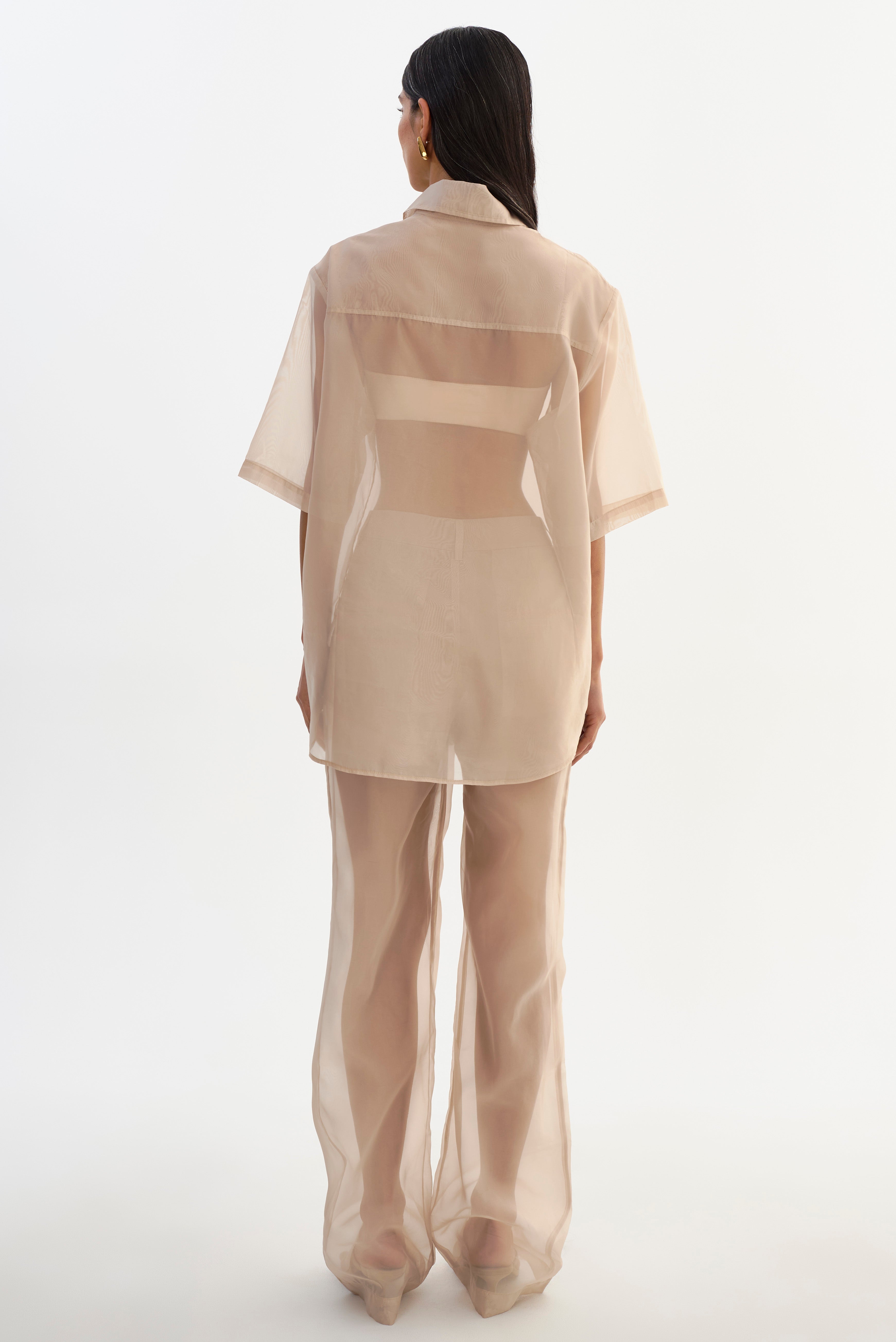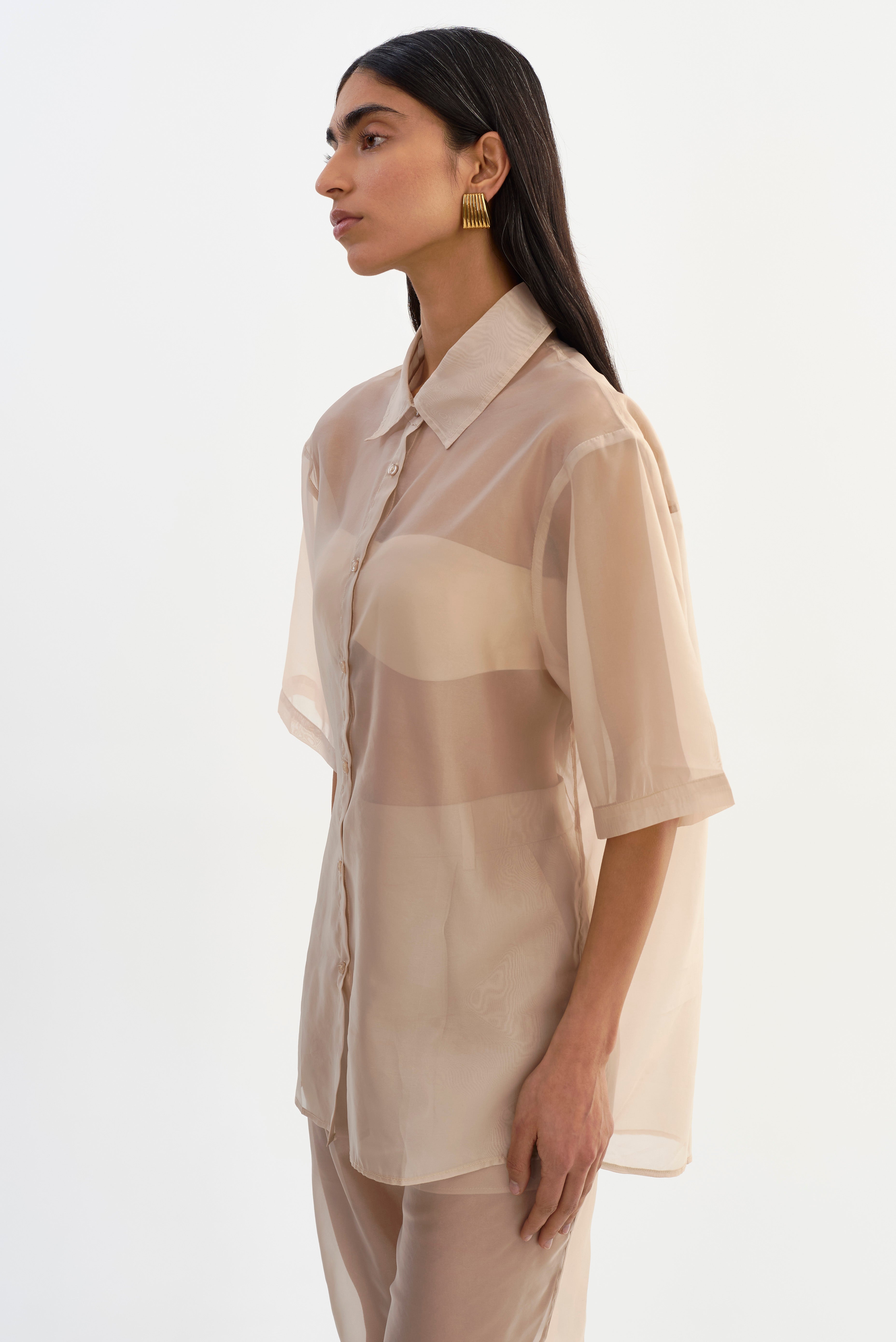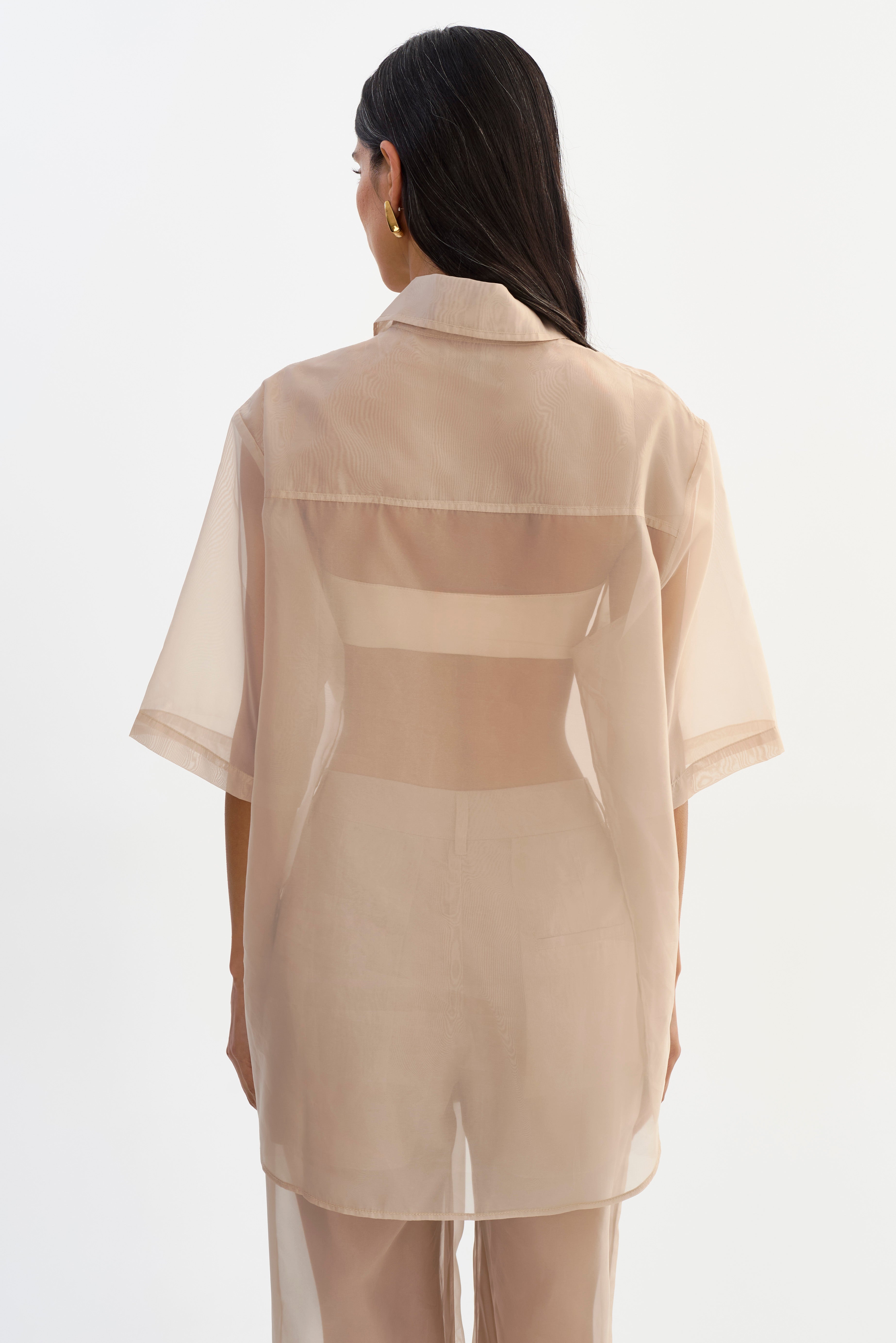 Légère et fluide, la chemise semi-transparente MANDA est conçue pour une sensation de légèreté et de bien-être. Son drapé souple et sa transparence délicate créent un look à la fois moderne et décontracté, offrant une élégance subtile sans effort. Une pièce polyvalente qui se prête aussi bien à une tenue de jour qu'à une tenue de soirée.