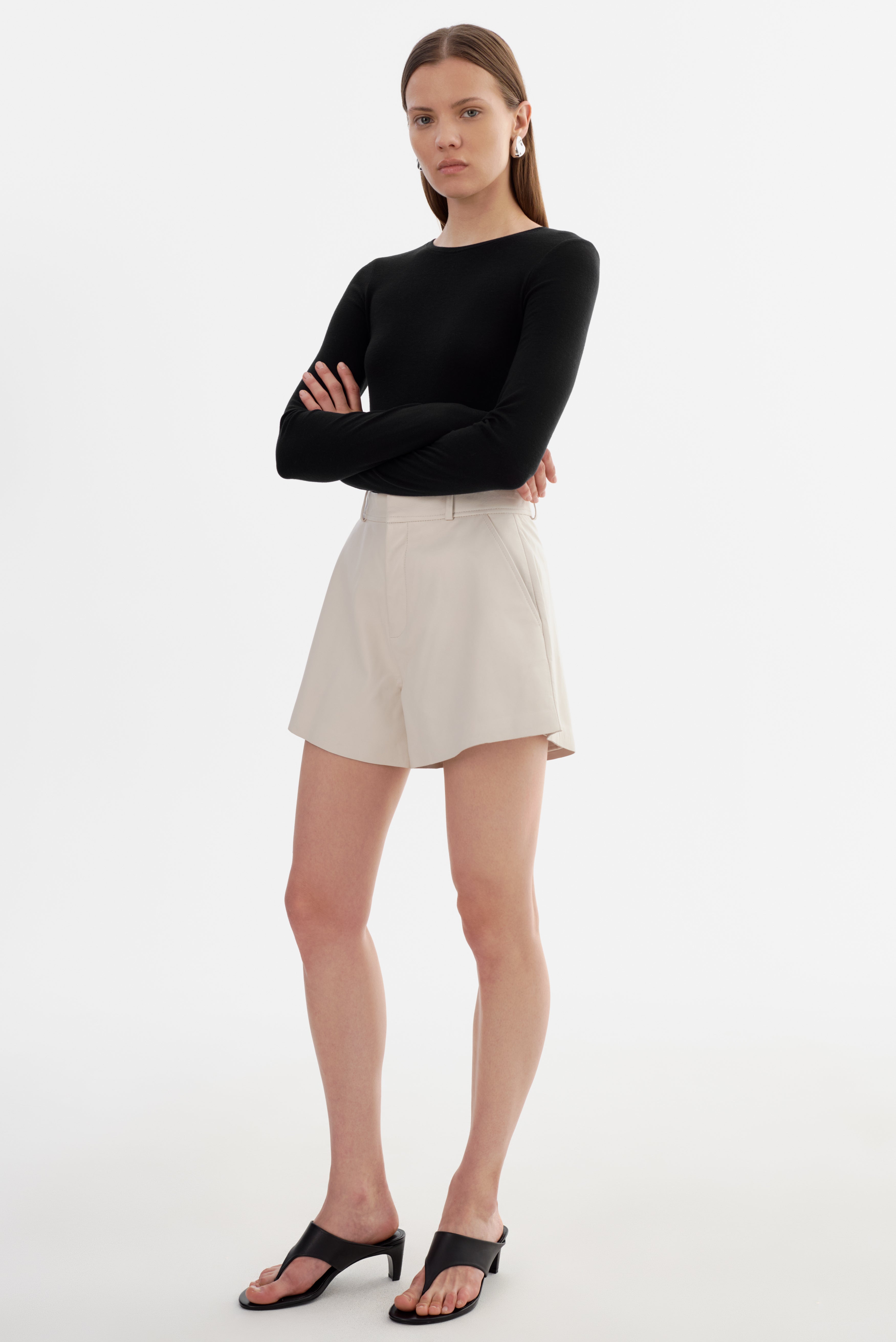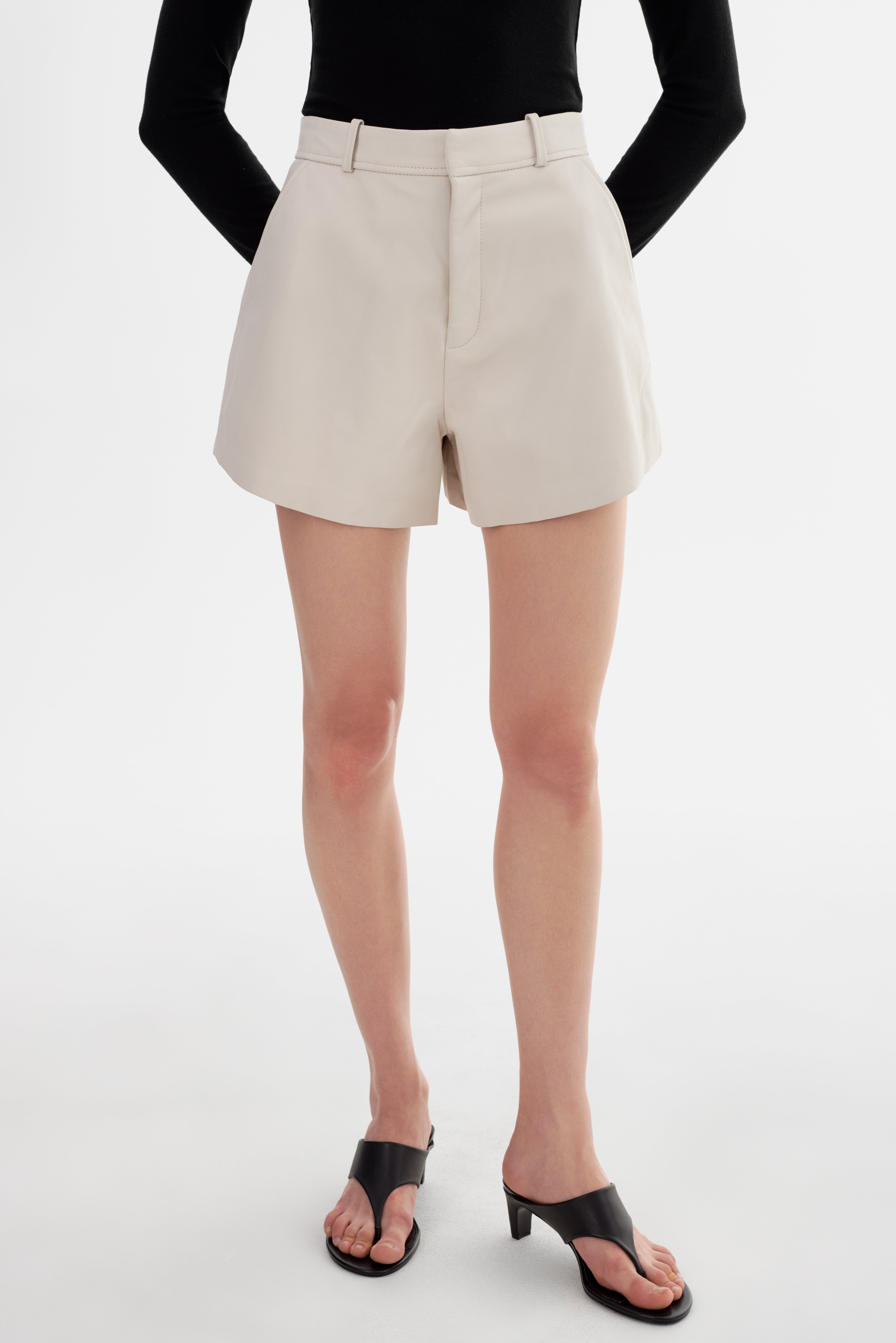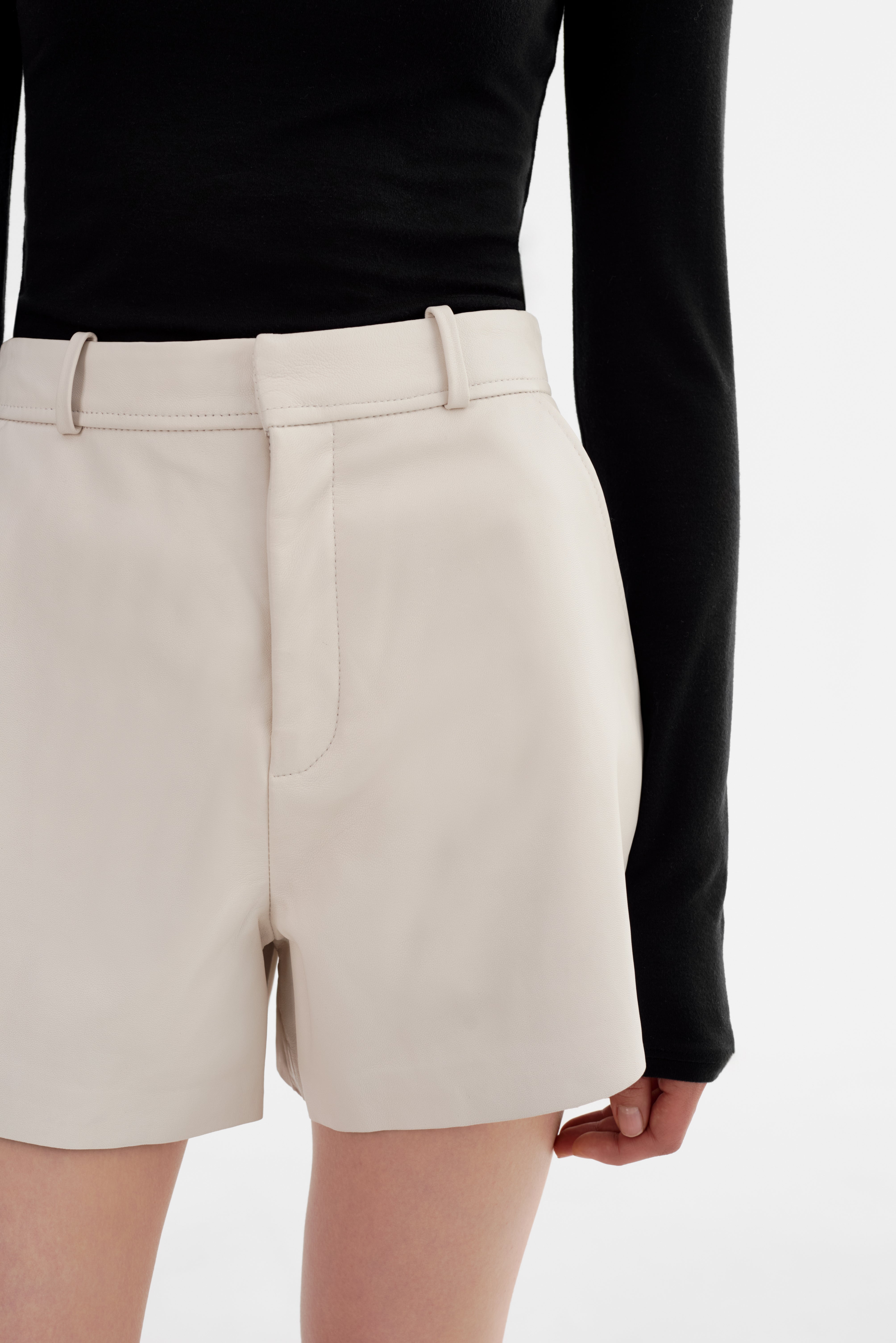 Le short en cuir MARCIE apporte une touche d'élégance à votre silhouette du quotidien. Confectionné en cuir souple avec une coupe trapèze évasée, il est doté de poches latérales et d'une taille structurée avec passants. Chic et ludique à la fois, il est la base idéale pour toutes vos tenues, des mailles douillettes aux costumes élégants.