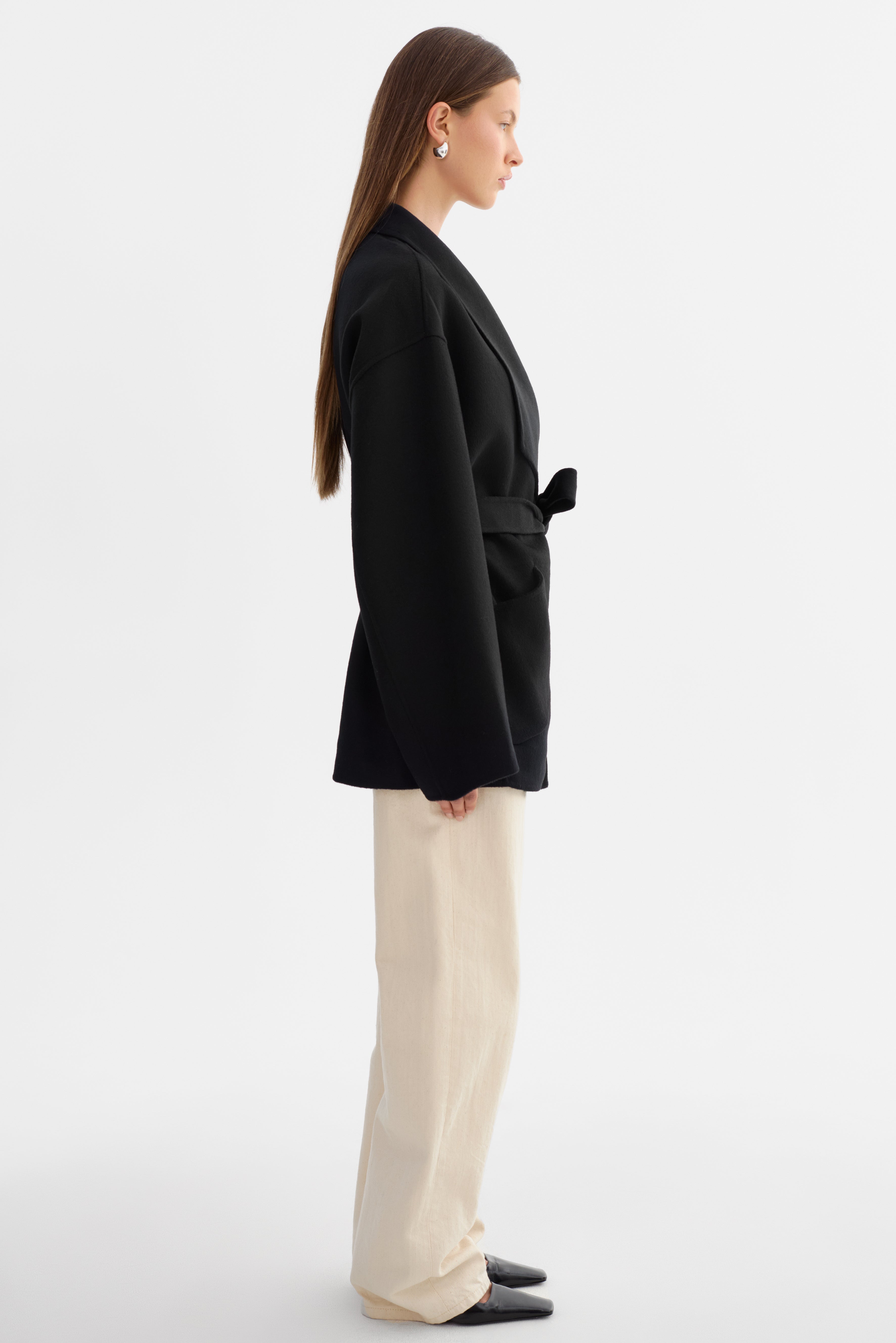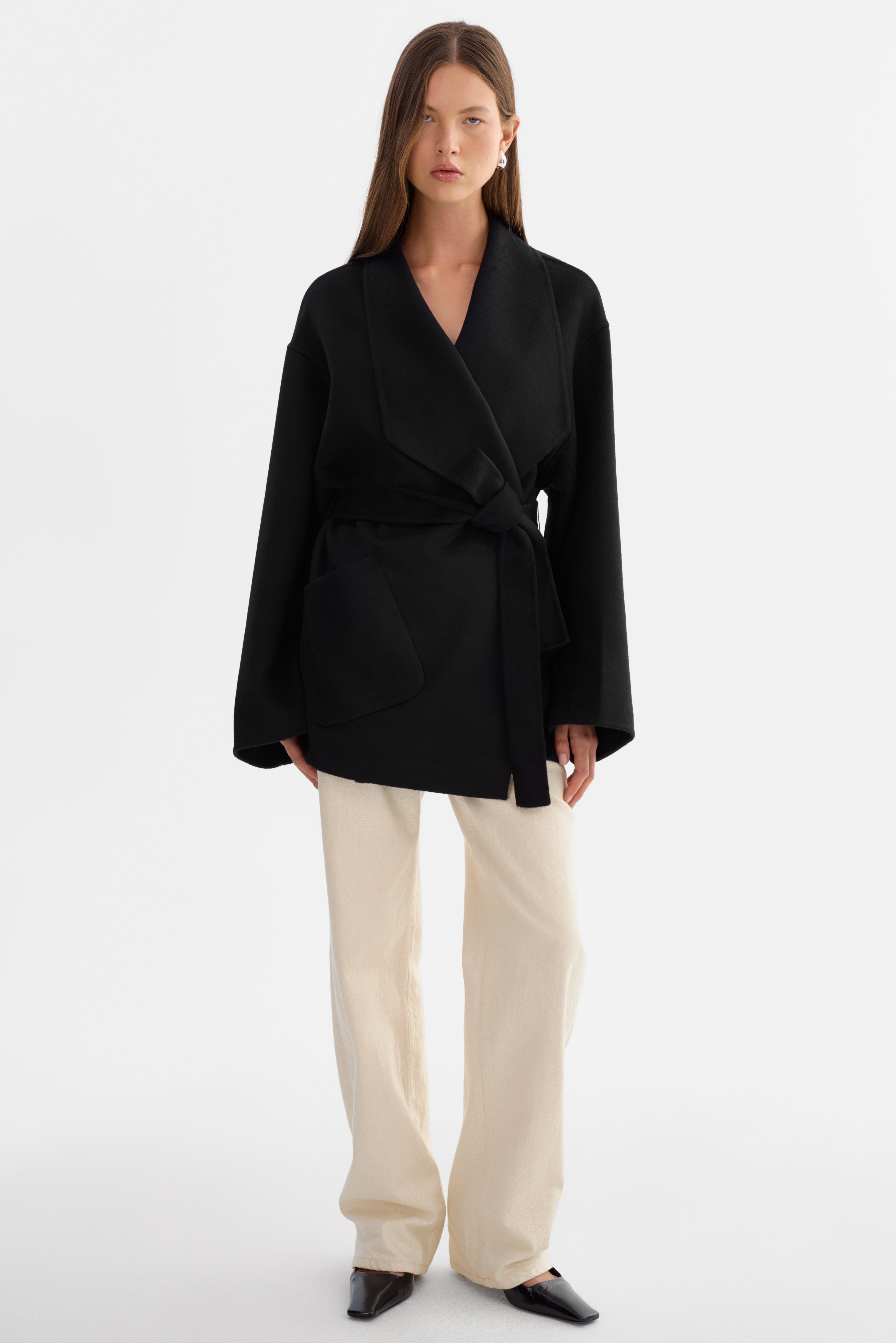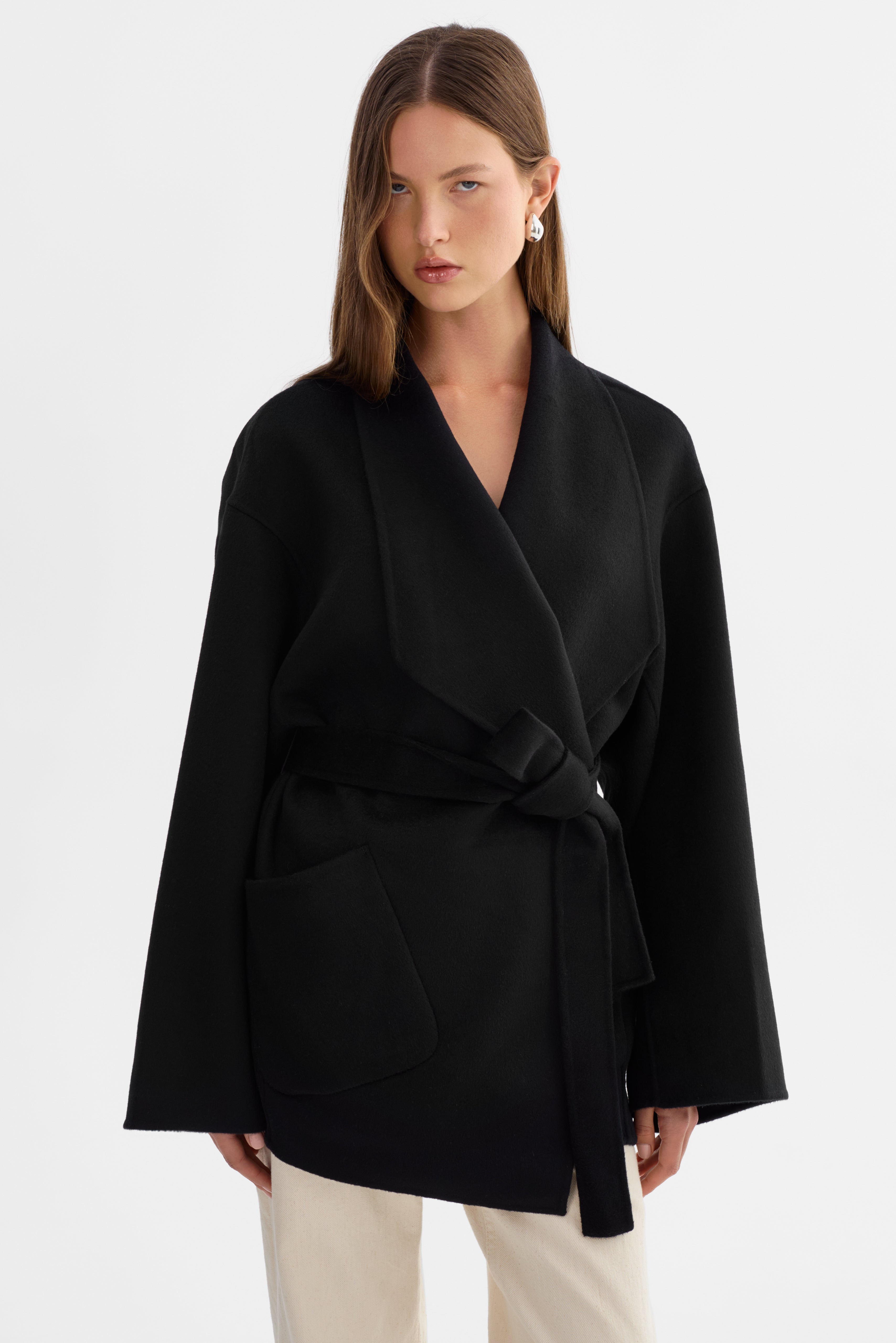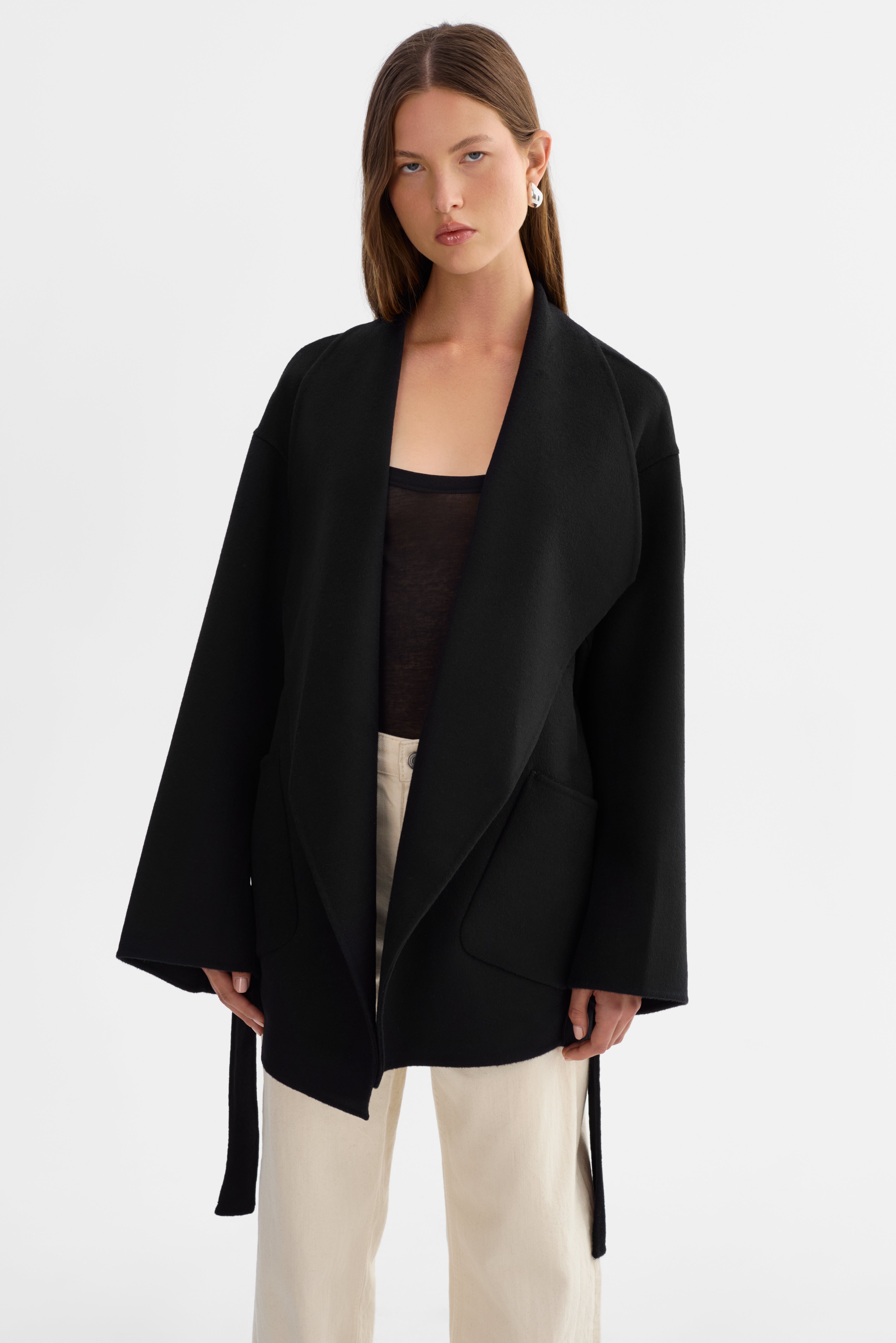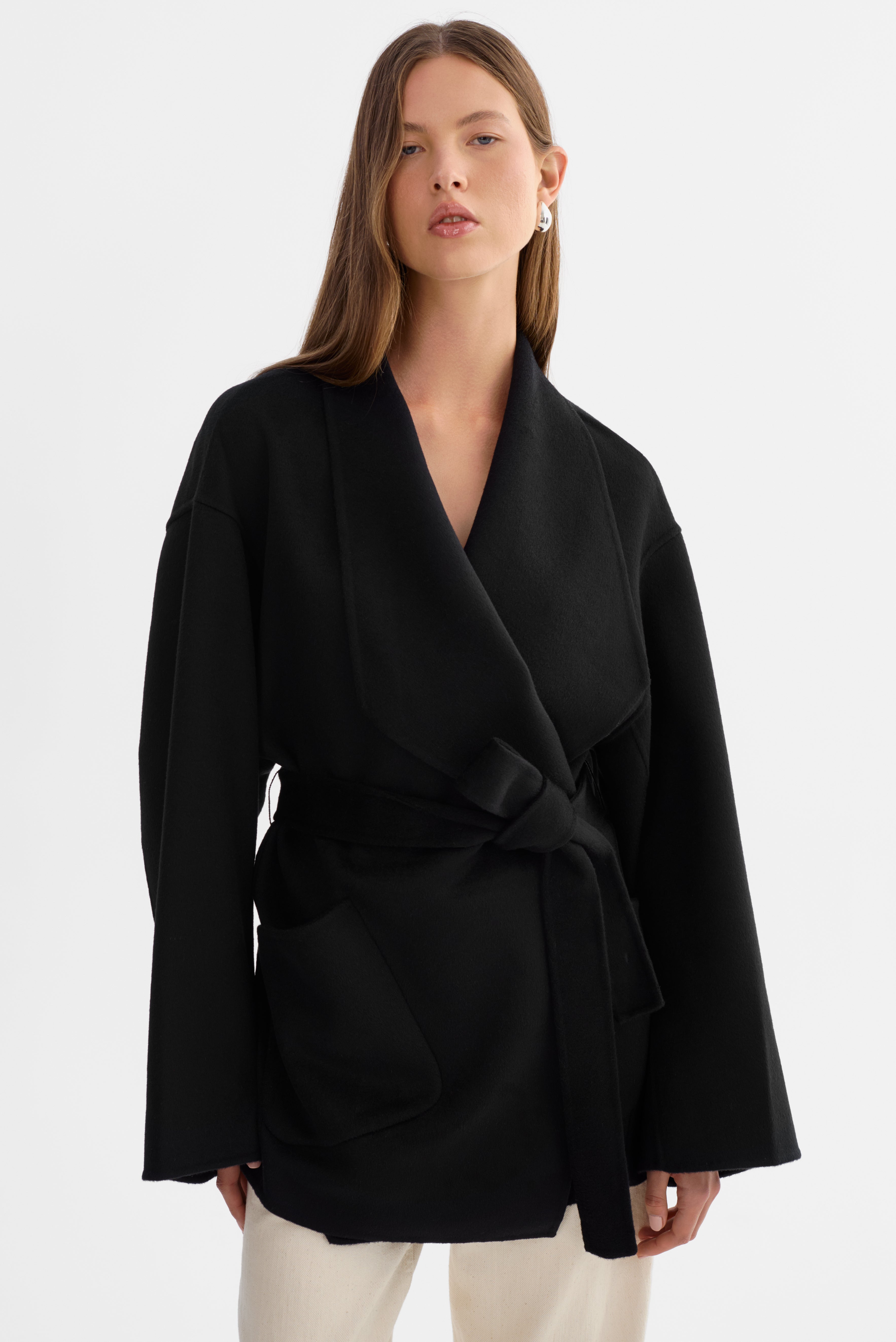 Le manteau en laine double face MEKIA allie élégance et style contemporain avec aisance. Confectionné à partir de laine double face luxueuse, il se distingue par son col drapé en cascade et ses poches plaquées diagonales, ajoutant à la fois sophistication et fonctionnalité. La ceinture à nouer permet un ajustement personnalisé, tandis que le design non doublé assure une légèreté optimale. Parfait pour les saisons de transition, ce manteau est idéal pour superposer et apporte une touche raffinée à n'importe quelle tenue.