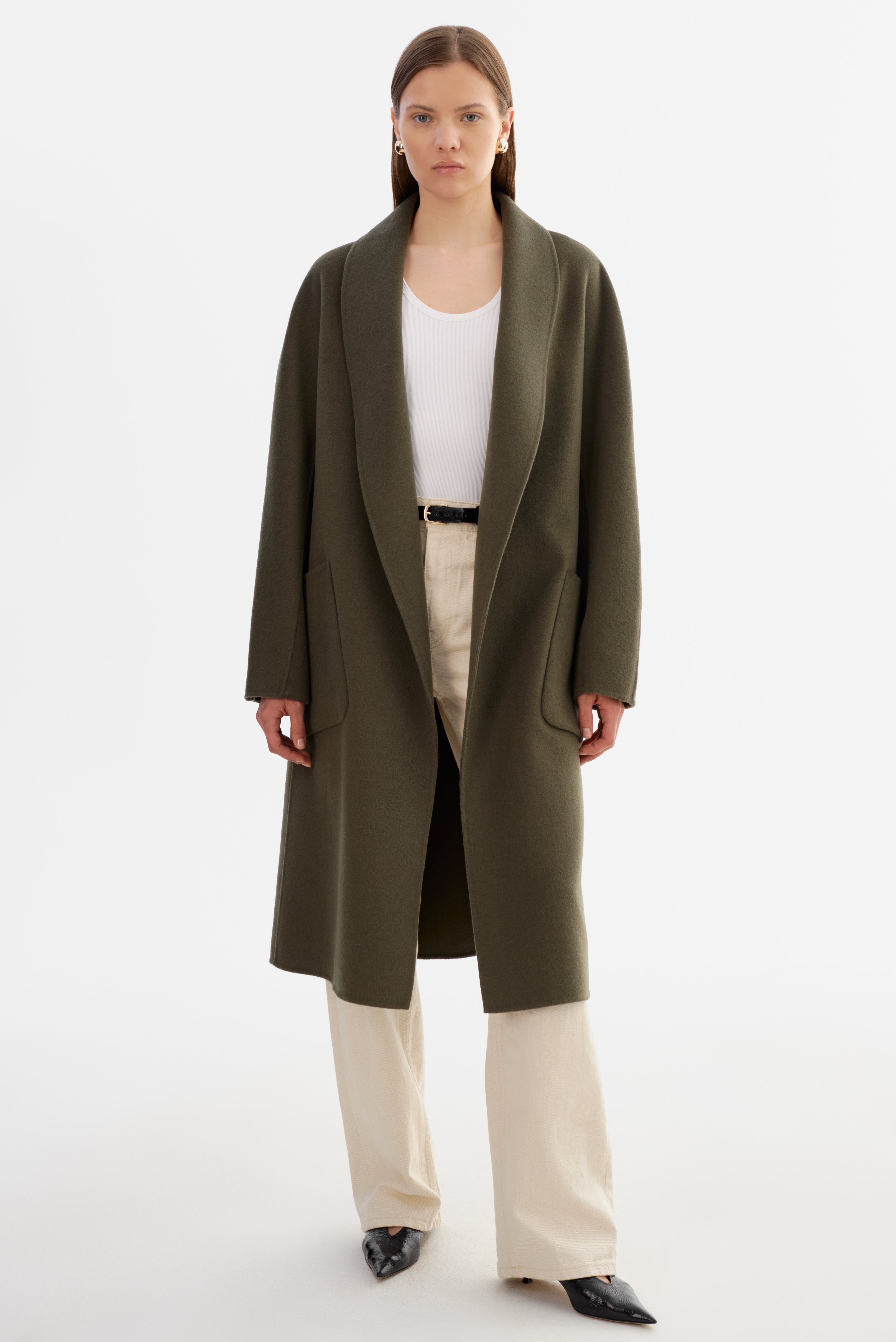 Incarnant tout ce qui est chic, le THARA est un produit étonnant par temps froid. Avec sa coupe drapée et ses manches surdimensionnées, ce manteau en laine à col châle allie avec grâce une esthétique confortable et sophistiquée. Doté de poches plaquées et de laine double face, ce haut est à la fois fonctionnel et chaleureux.