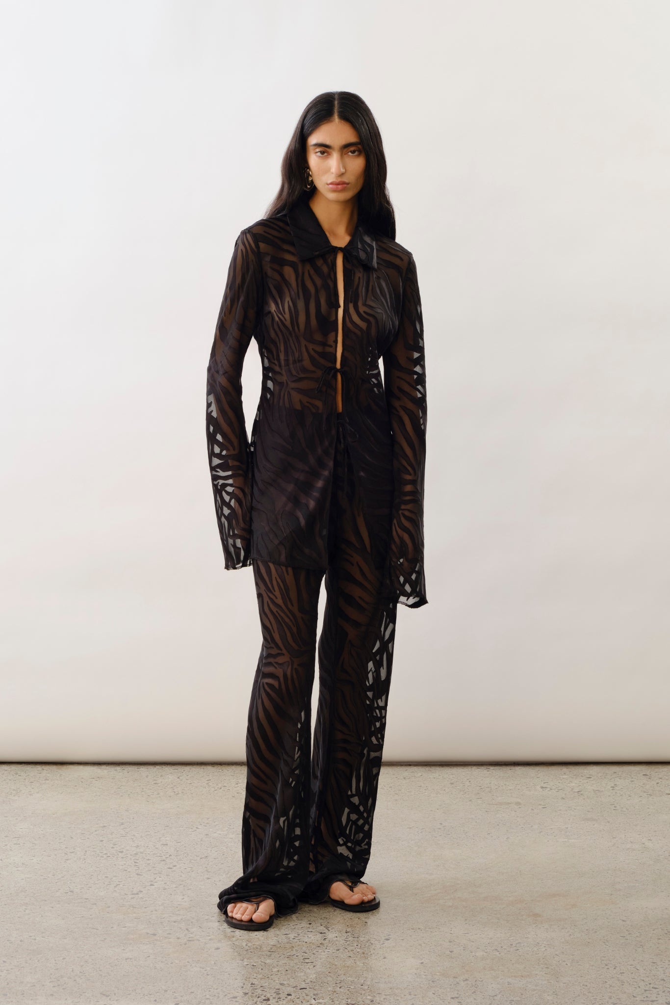 The BECKY Pants brings a contemporary edge to resort dressing. Designed in a sheer zebra pattern, it features a straight-leg silhouette and an easy elasticized waistband for a relaxed fit. Style it with the CAMINE Blouse or MARKEESA Jacket for a cohesive look that feels refined and effortless.