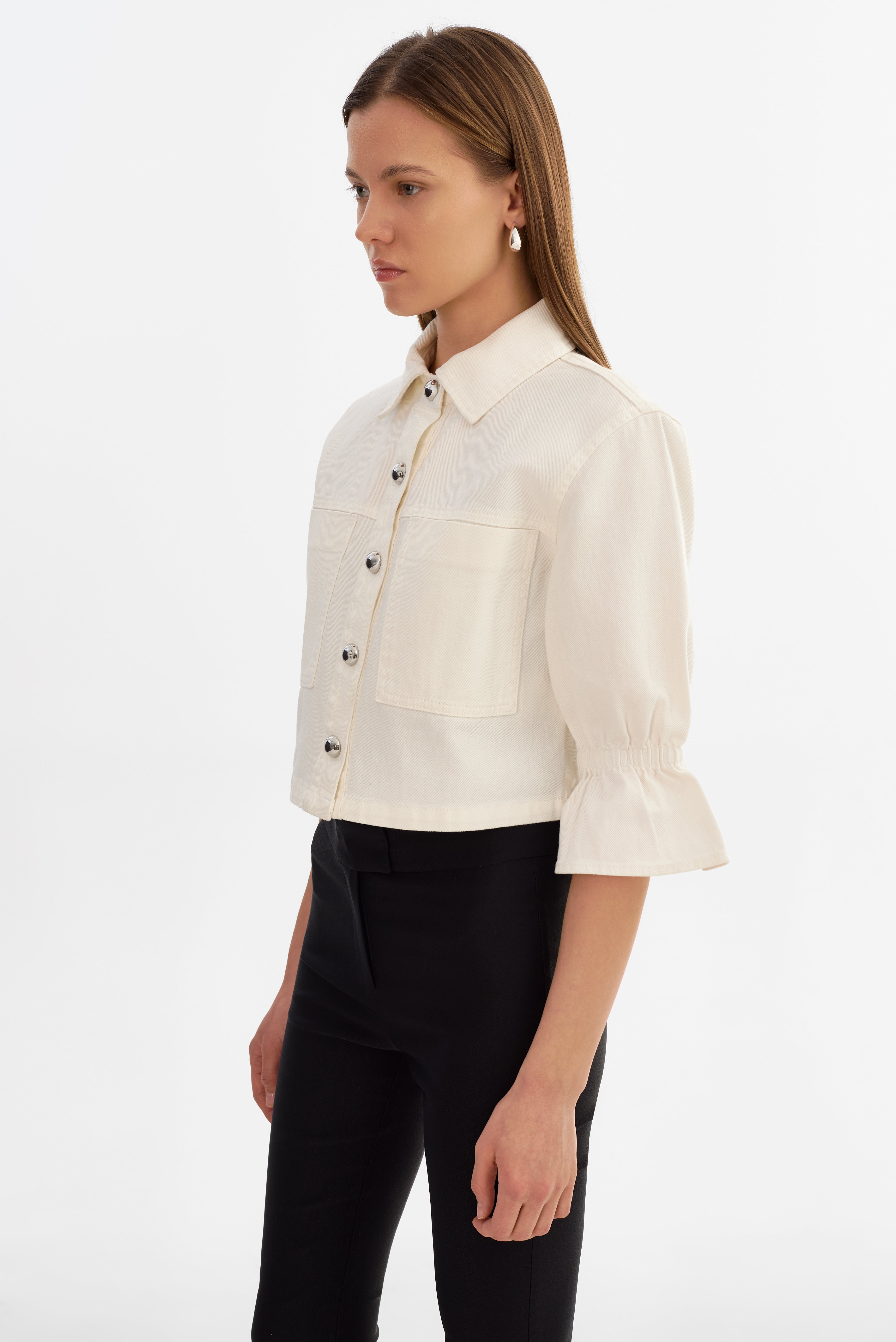 • Ruffled cropped sleeves