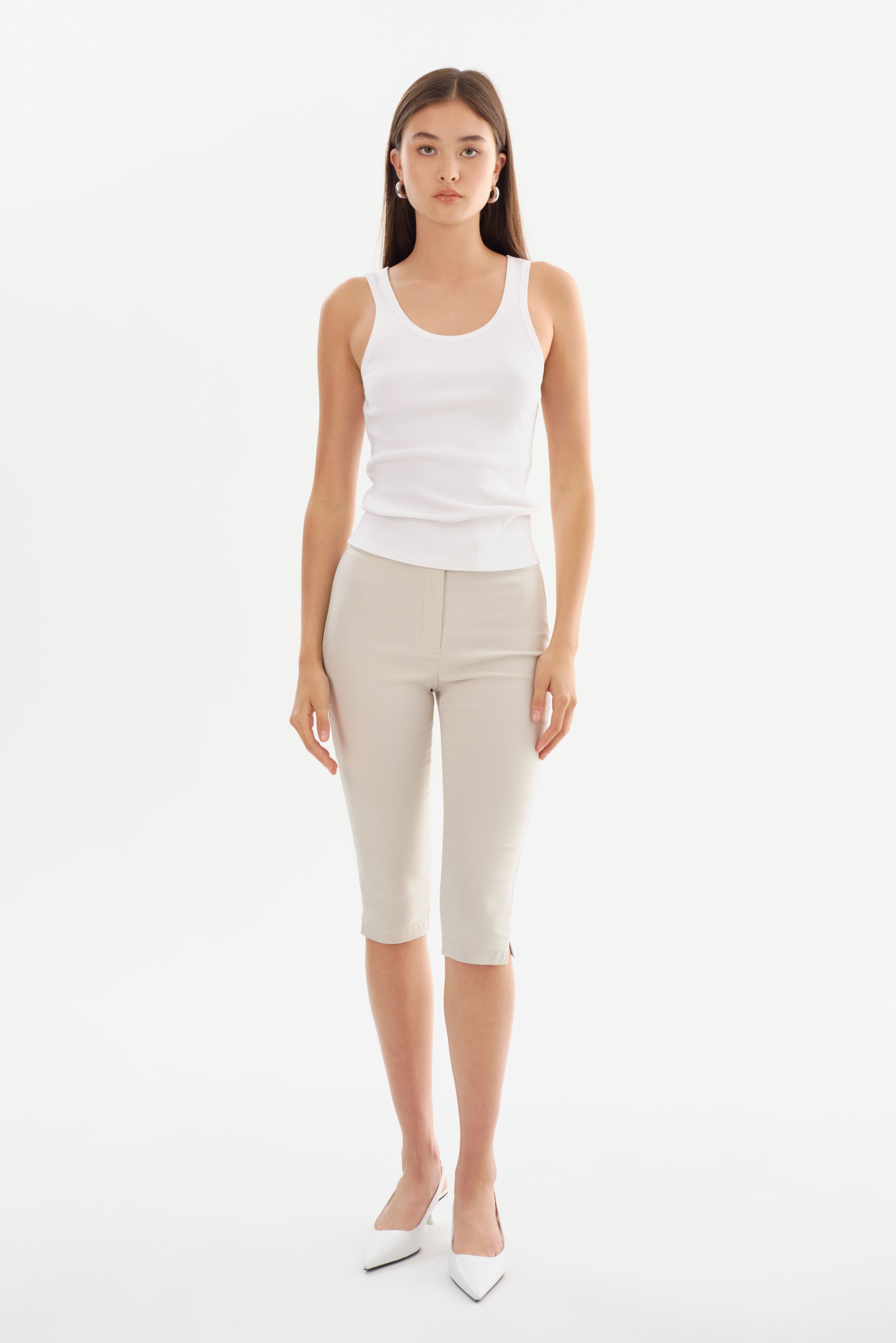 The CELINE Stretch Twill Capri is a must-have for the trendy woman. Crafted from flattering stretch twill fabric and featuring a retro-inspired cropped length, it effortlessly blends comfort and style. Pair it with kitten heels or slip-on pumps for an effortlessly chic look.