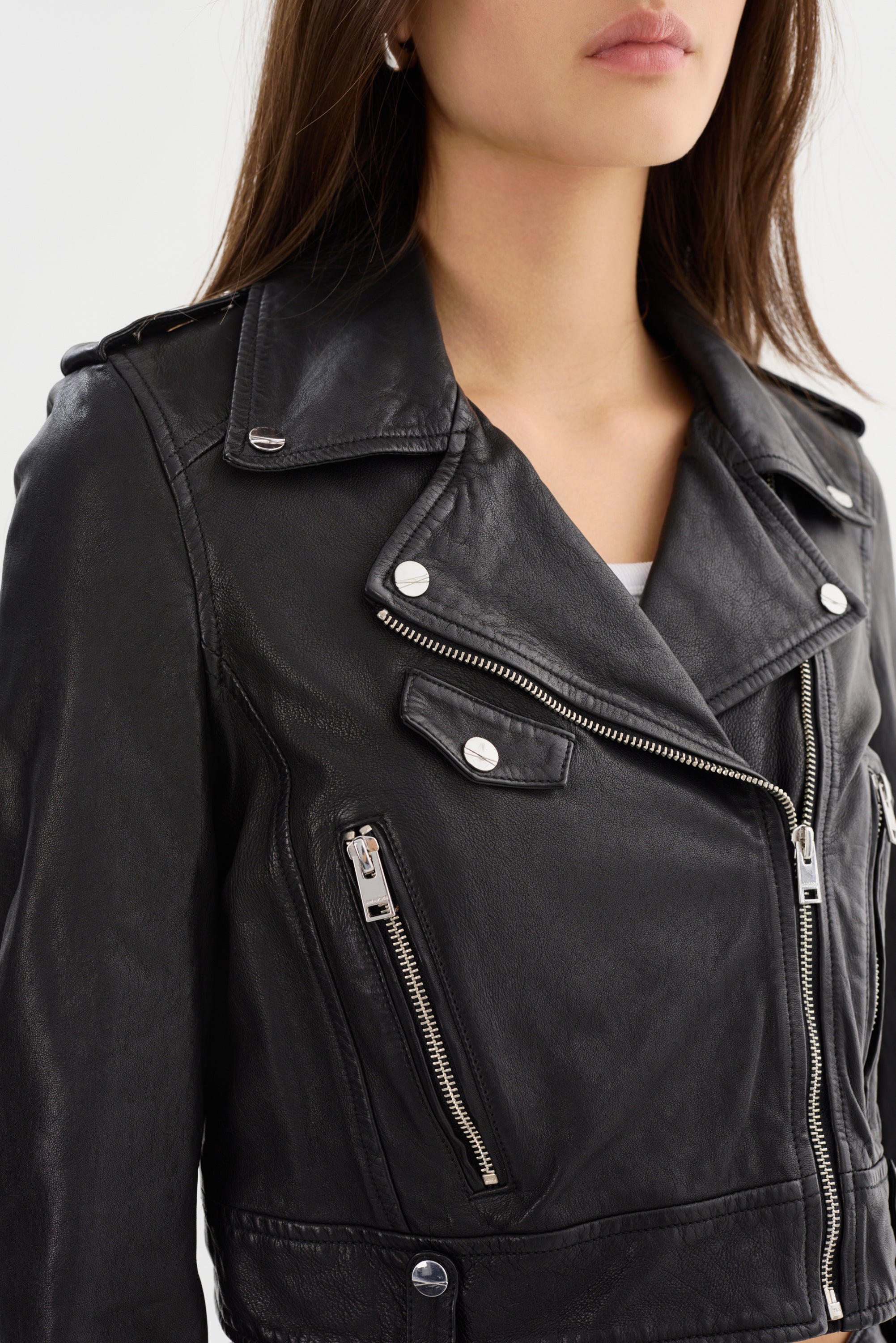 A high-end classic smartly suited for warmer days, the CIARA Leather Jacket features a cropped body that flatters your natural shape and embodies an effortlessly casual look. Constructed with premium leather, this key top piece only gets better with time.