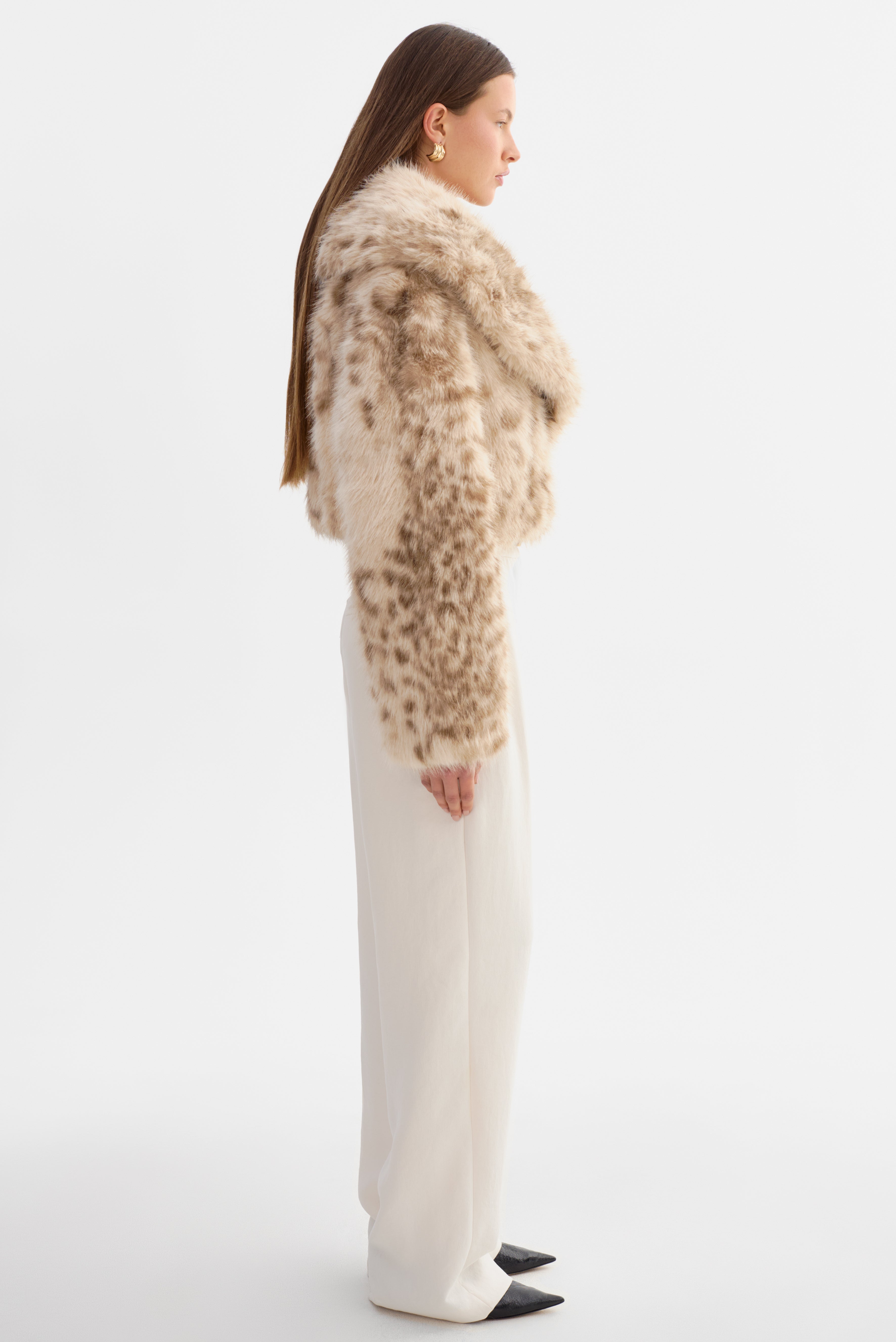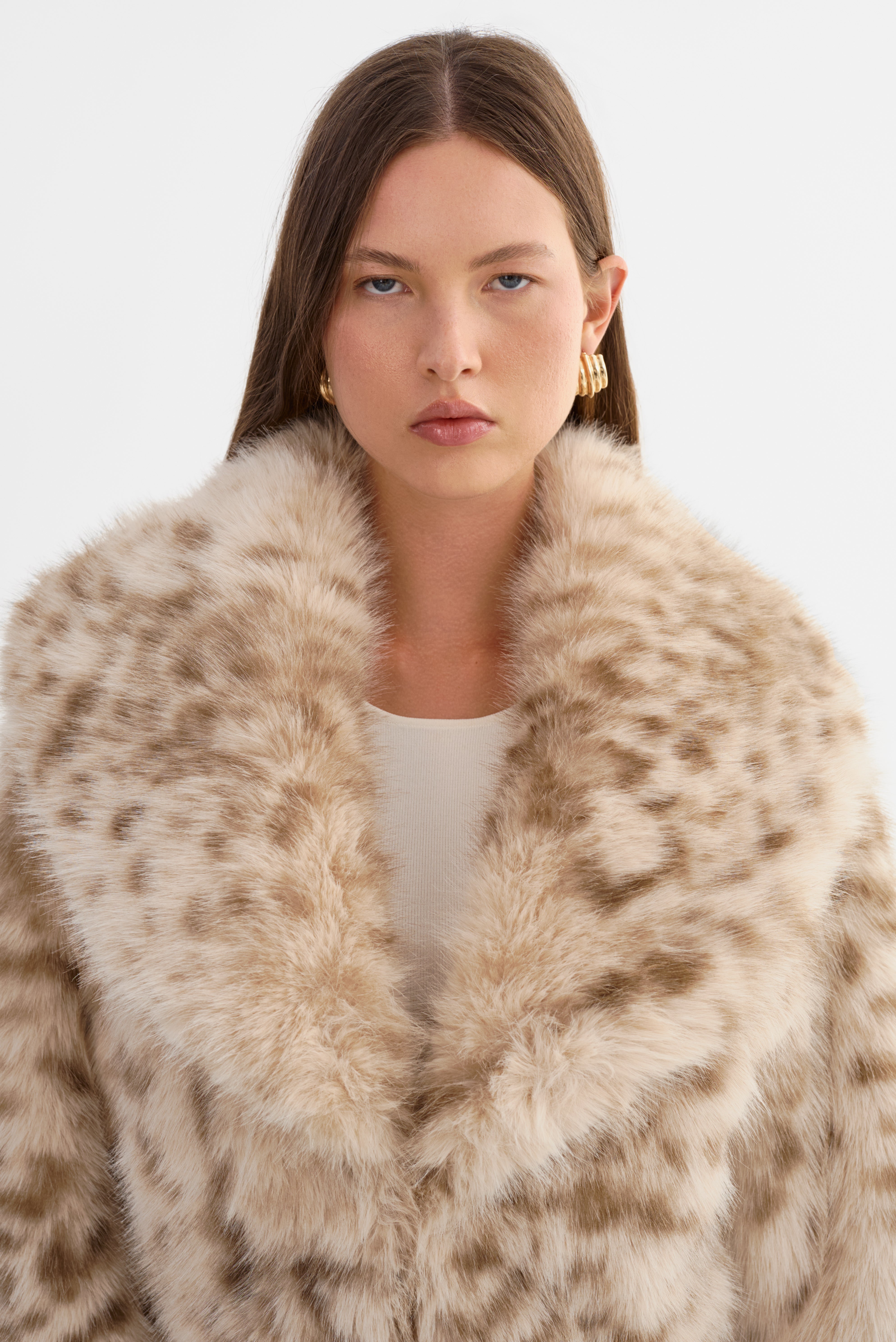 The DANIKA Faux Fur Jacket, featuring a plush leopard print, brings all the glamour and trendiness you need for fall. The large shawl collar exudes elegance, while the front hook-and-eye closure ensures a secure fit. This statement piece pairs beautifully with high-waisted trousers for a chic daytime ensemble, or over an evening dress for a polished and eye-catching look.