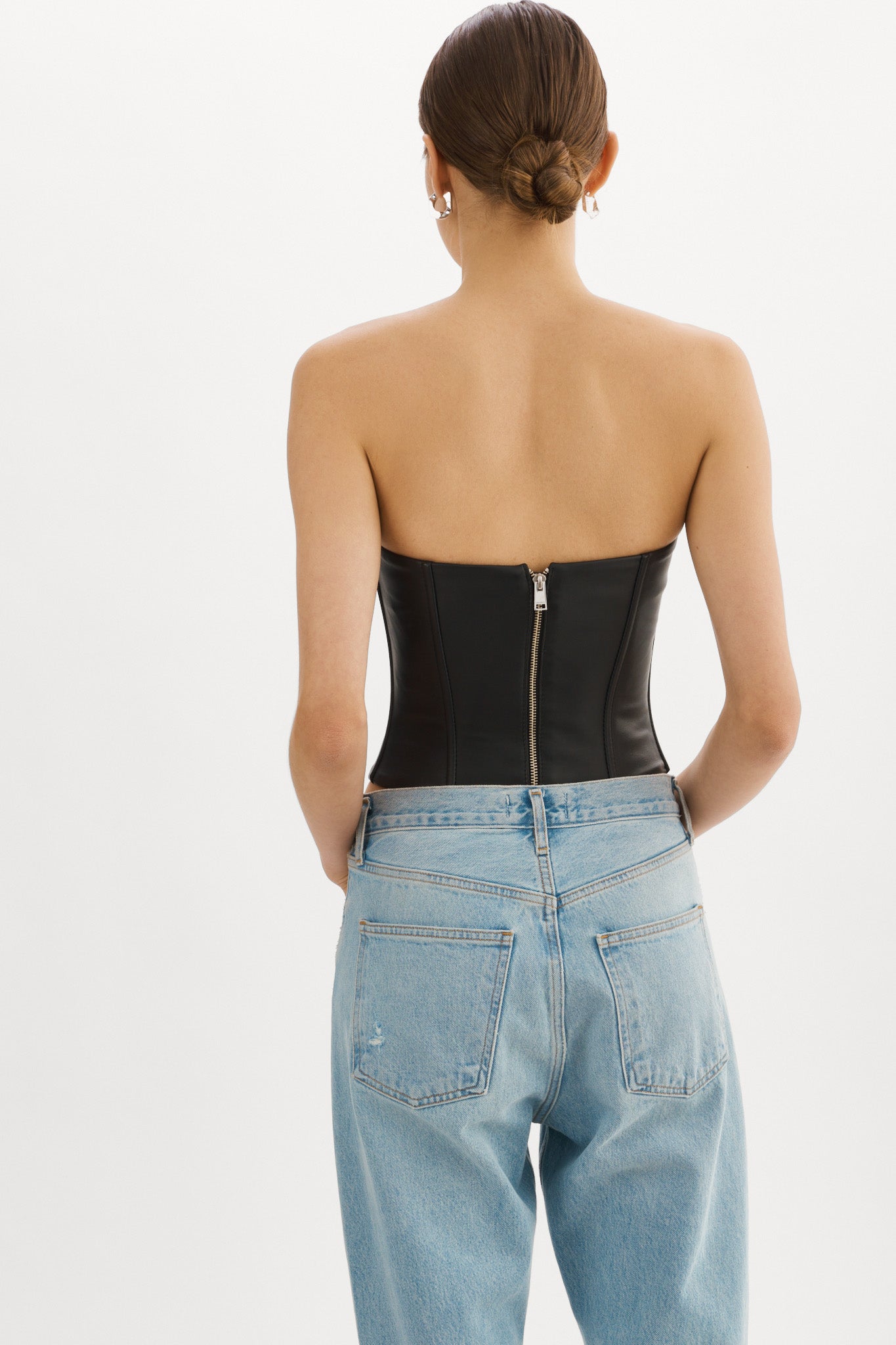 Soft yet structured, this leather bustier is an unexpectedly chic layer under blazers and jackets. A straight neck offers a classic look up top, while stretch lining offers comfortable movement all around.