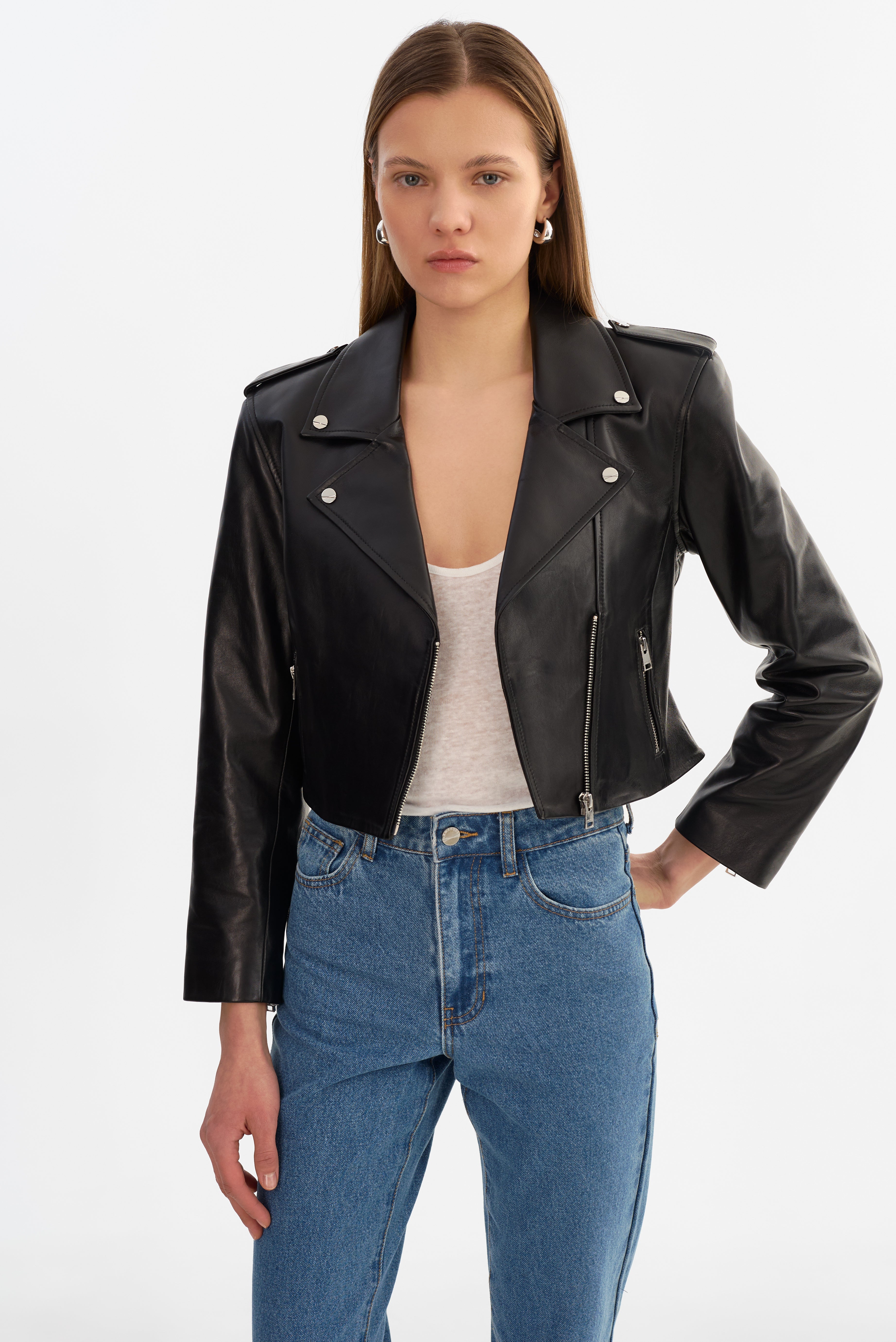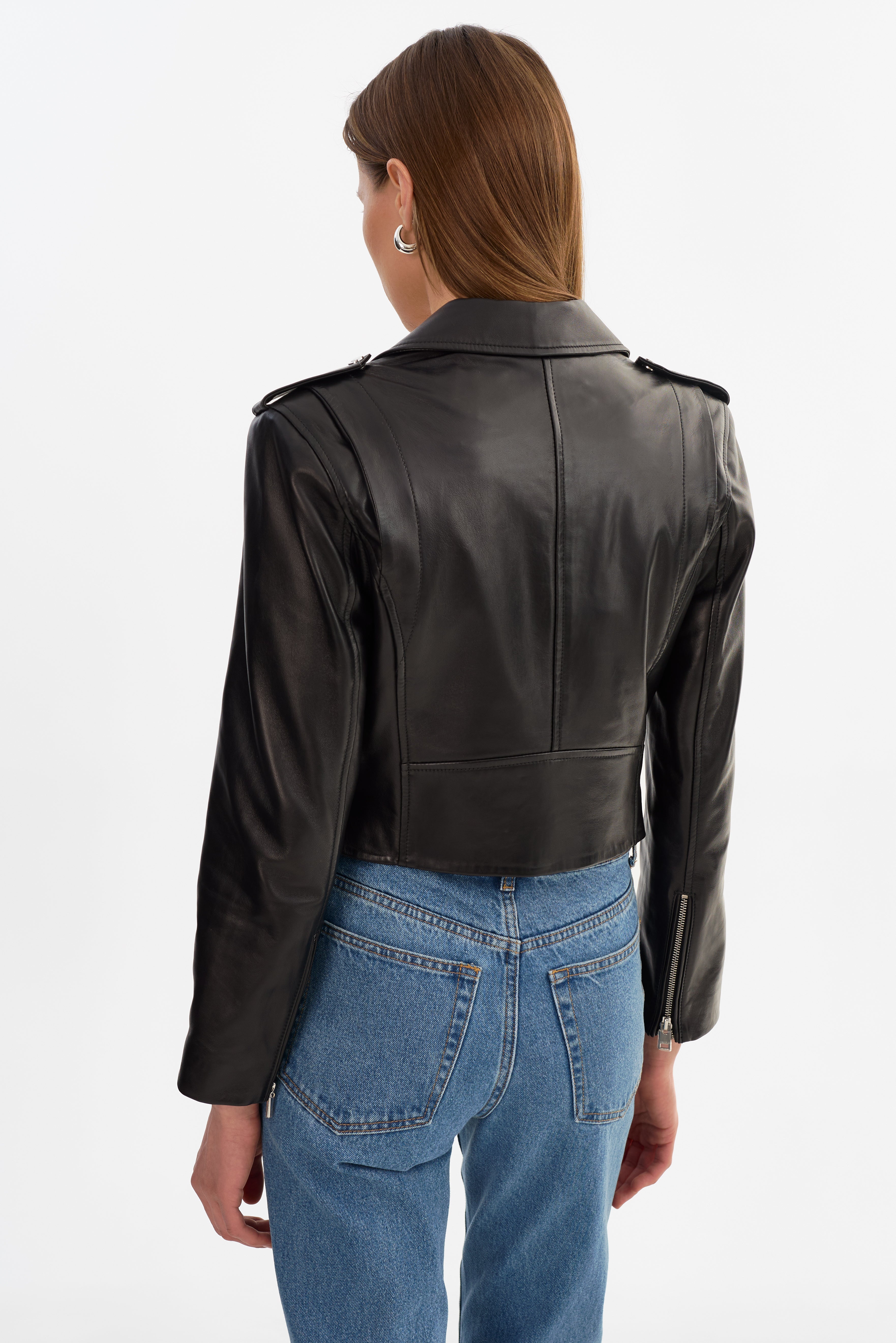 A fresh update on a classic biker. The DENALDA Cropped Leather Biker Jacket features a cropped length with a structured, confident fit that feels modern. Finished with signature biker details, it adds edge to everyday looks.