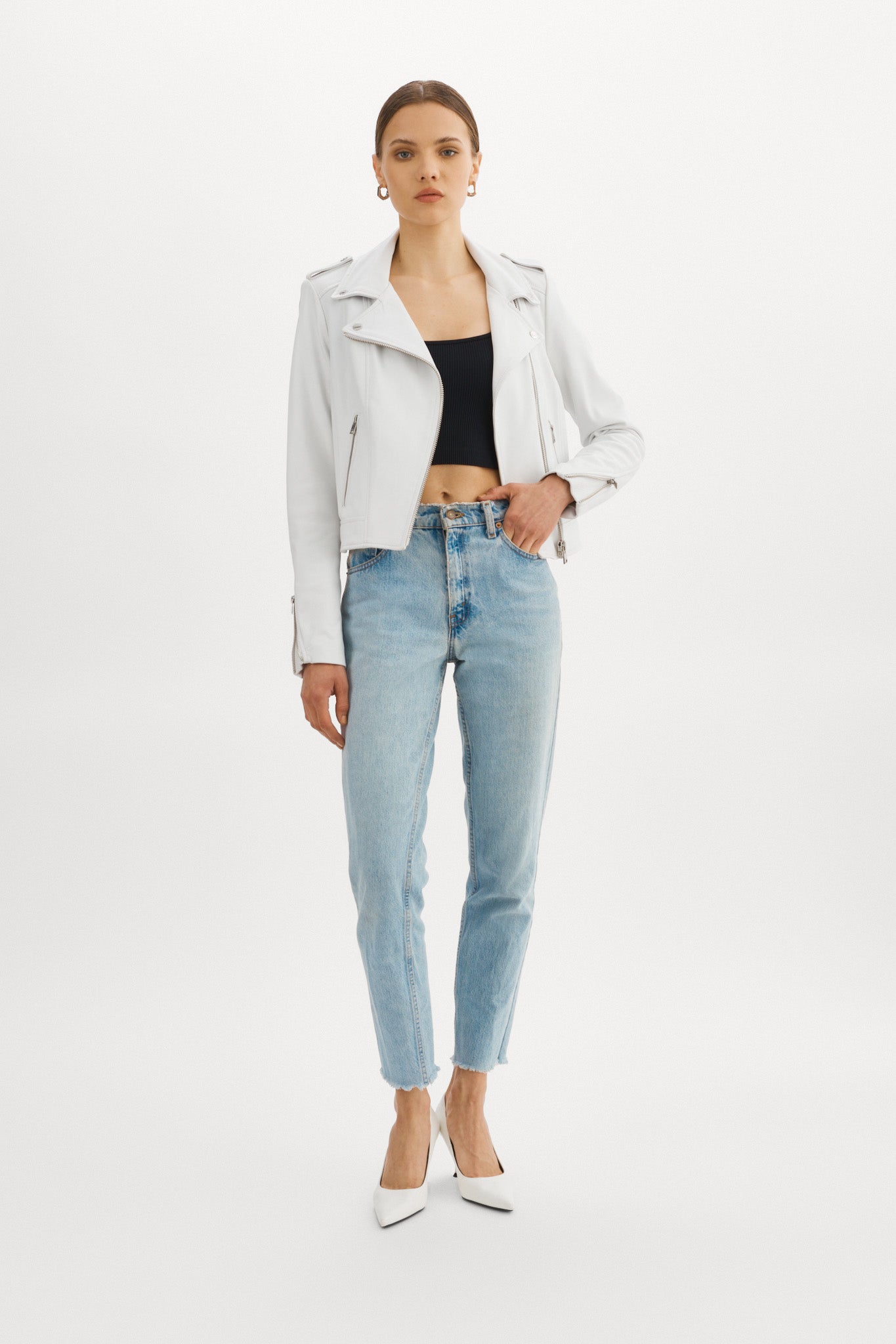 Classic, edgy, and oh-so-flattering, the Donna biker jacket is the wardrobe staple you've been waiting for. With its sharp notch lapels, zippered sleeves, and asymmetrical zipper, this iconic top-piece offers vintage appeal with a flawlessly tailored fit. Designed with premium leather that only becomes more appealing with age, the Donna is guaranteed to stick around.