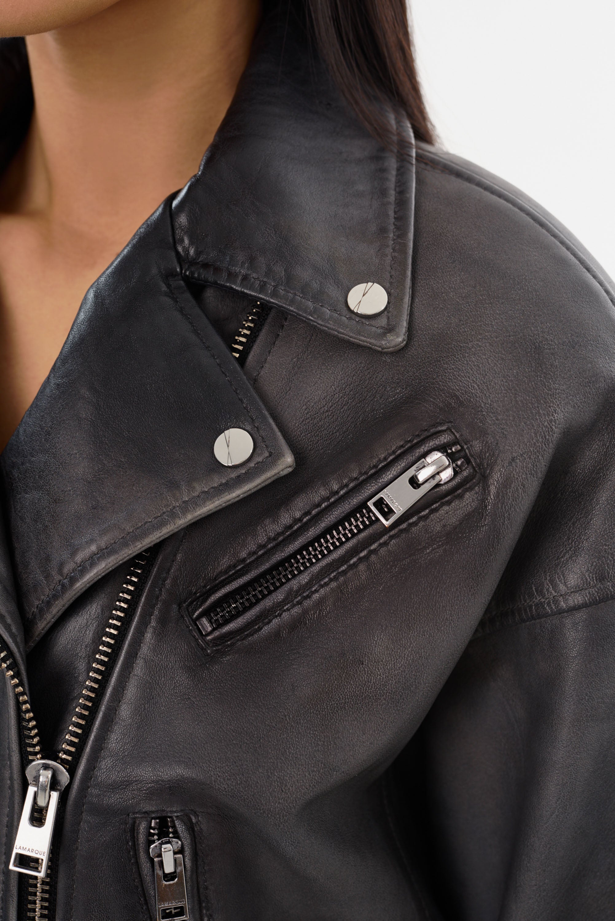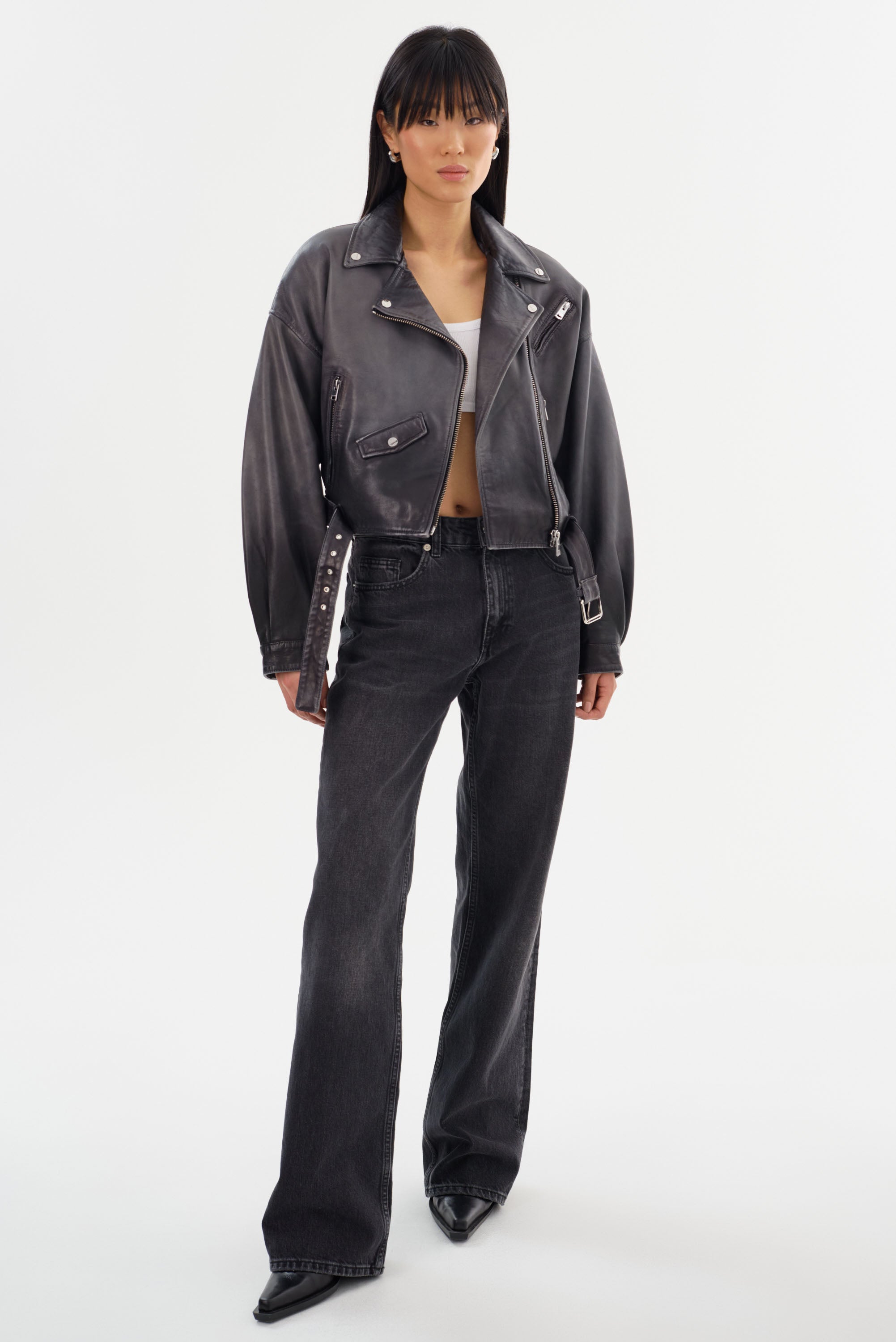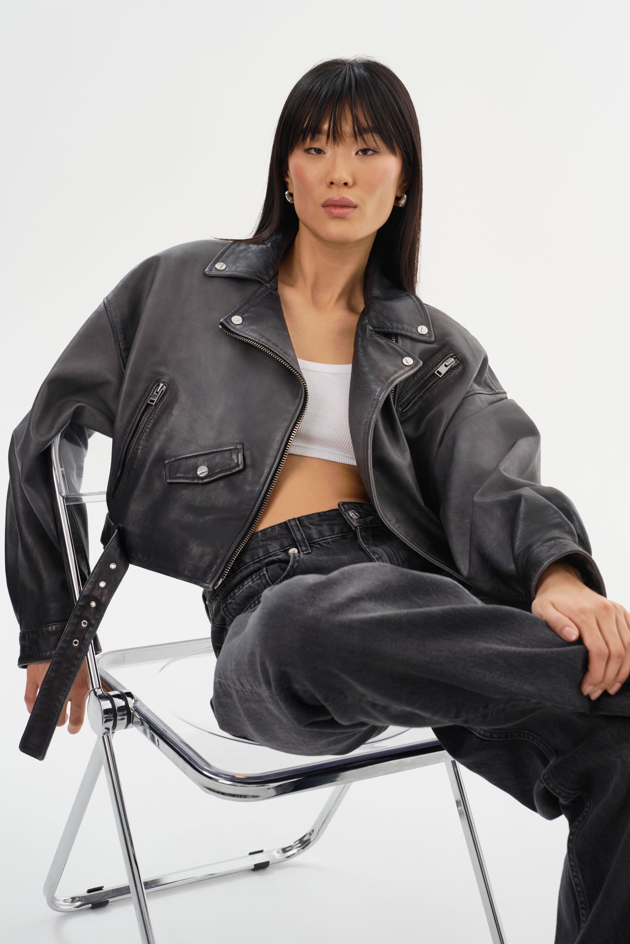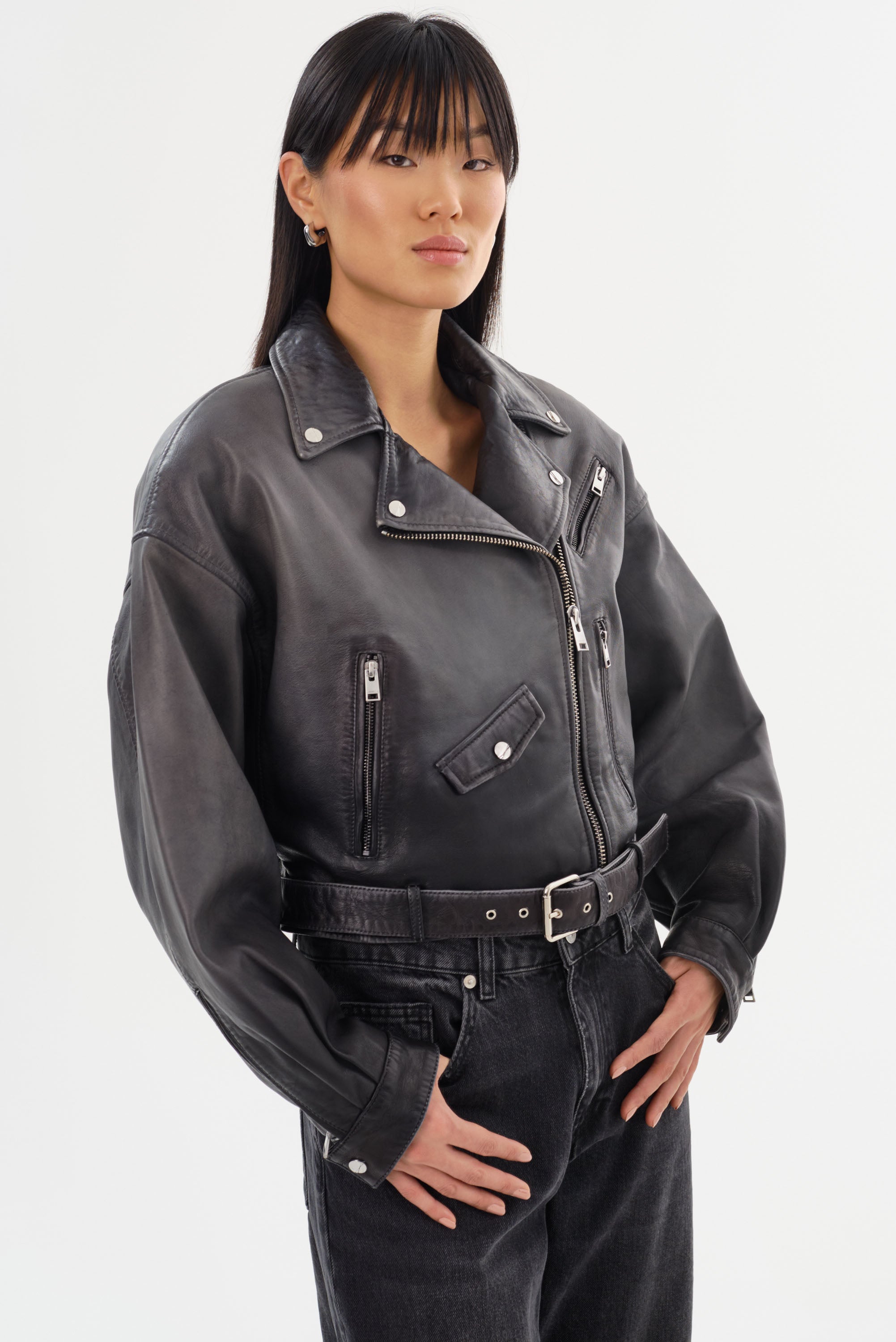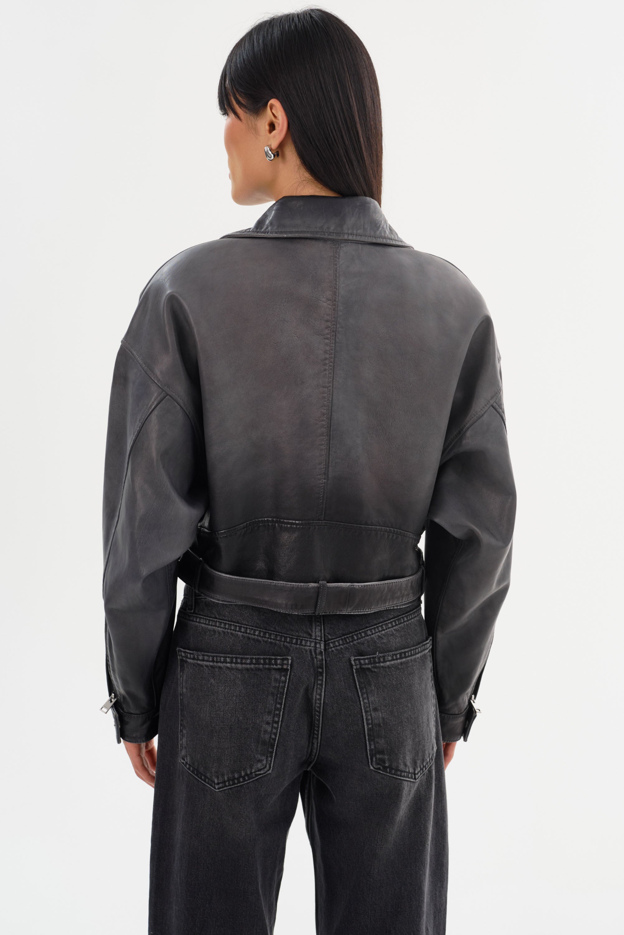 Sometimes, there's no better feeling than commanding the room. Bring back the best of the 80s with this vintage-inspired cropped leather jacket. Featuring classic biker elements and unexpected stand-outs like shoulder pads and balloon pleated sleeves, you'll stand out from the rest when you rock the Dylan. A coin flap pocket and a removable waist belt add unique touches to this lamb leather stunner. A true statement piece, this 80s leather jacket is an instant head-turner.