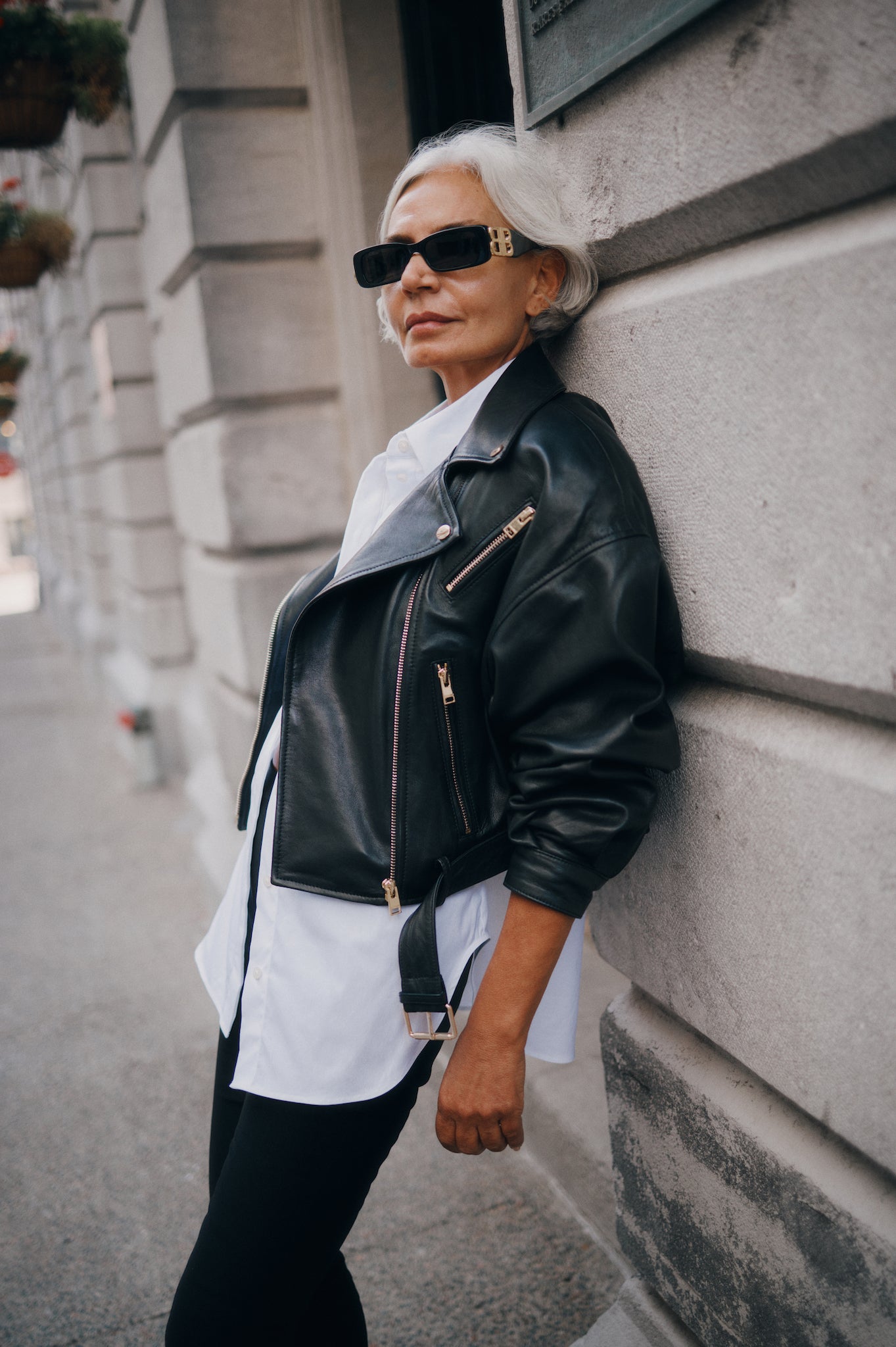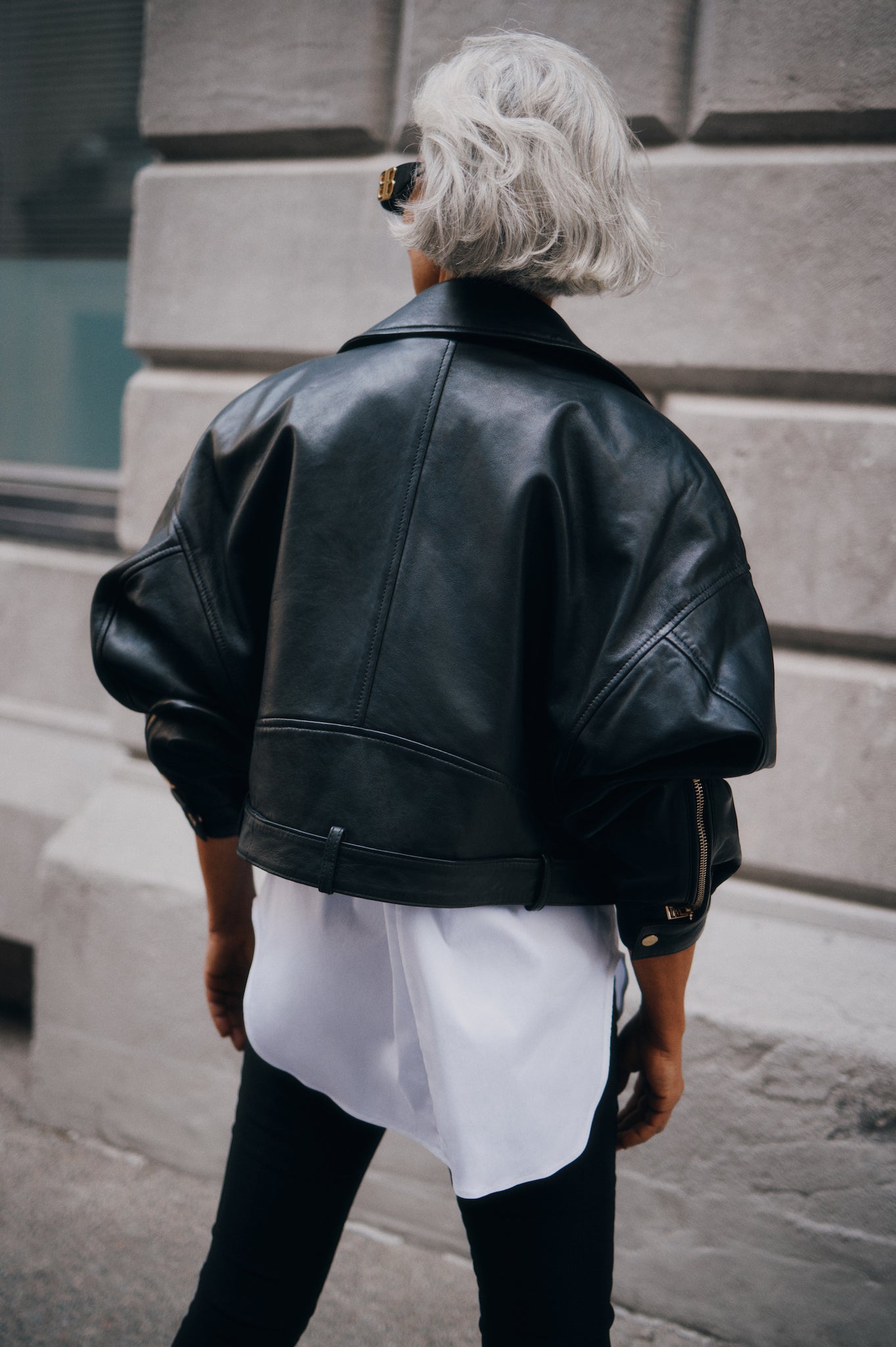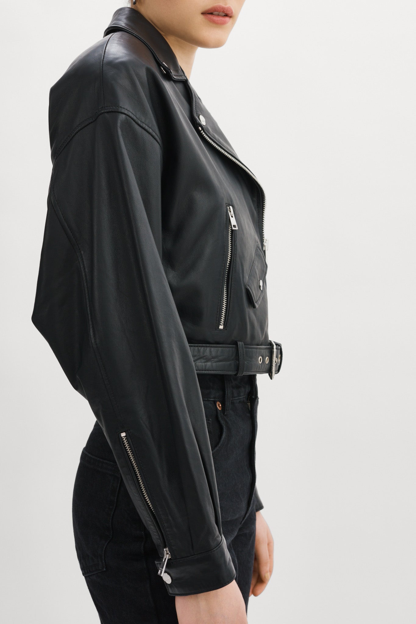Sometimes, there's no better feeling than commanding the room. Bring back the best of the 80s with this vintage-inspired cropped leather jacket. Featuring classic biker elements and unexpected stand-outs like shoulder pads and balloon pleated sleeves, you'll stand out from the rest when you rock the Dylan. A coin flap pocket and a removable waist belt add unique touches to this lamb leather stunner. A true statement piece, this 80s leather jacket is an instant head-turner.