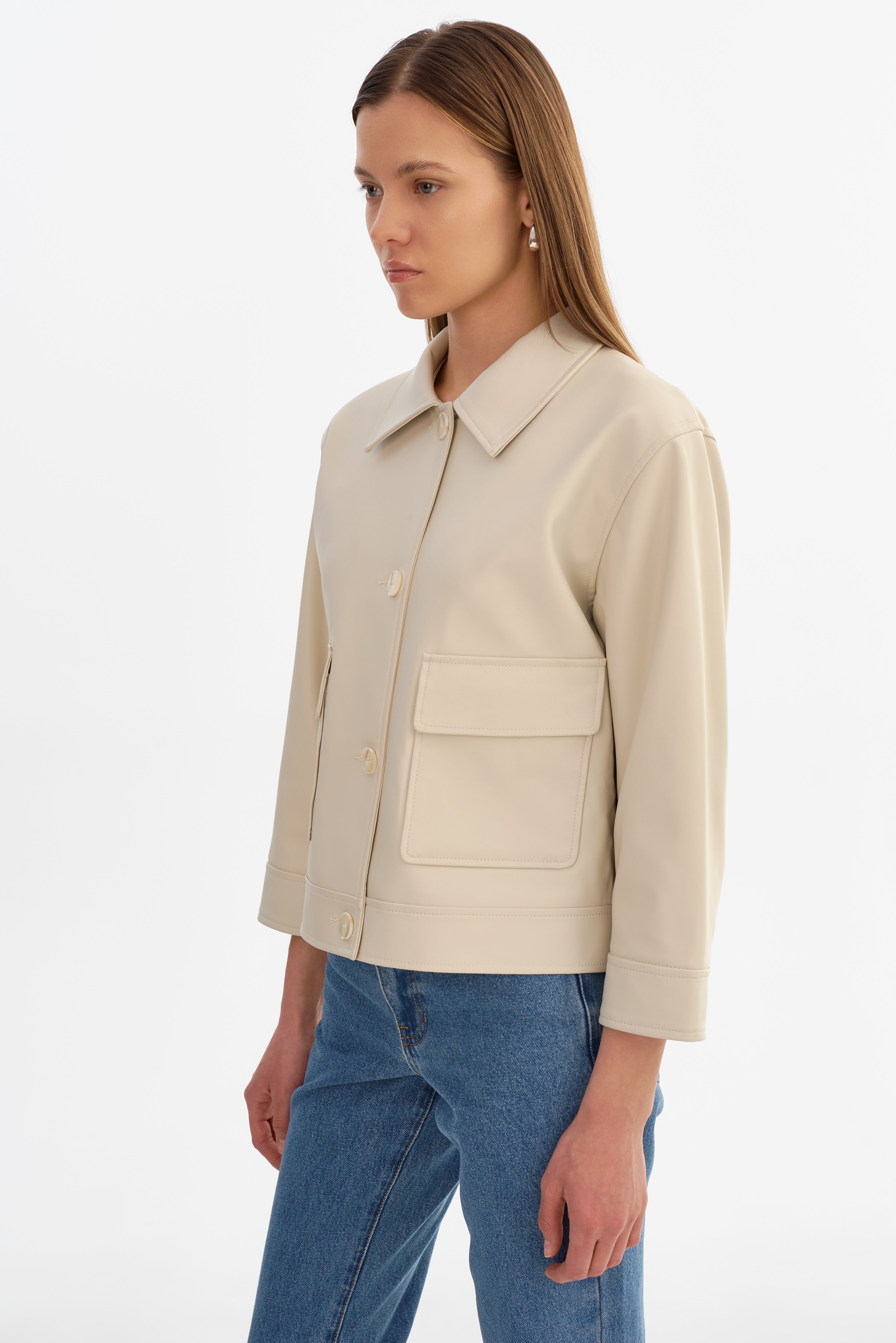 Relaxed with an edge. The ELARA Faux Leather Jacket balances modern ease with a confident feel, creating an effortless layer that works across everyday looks.