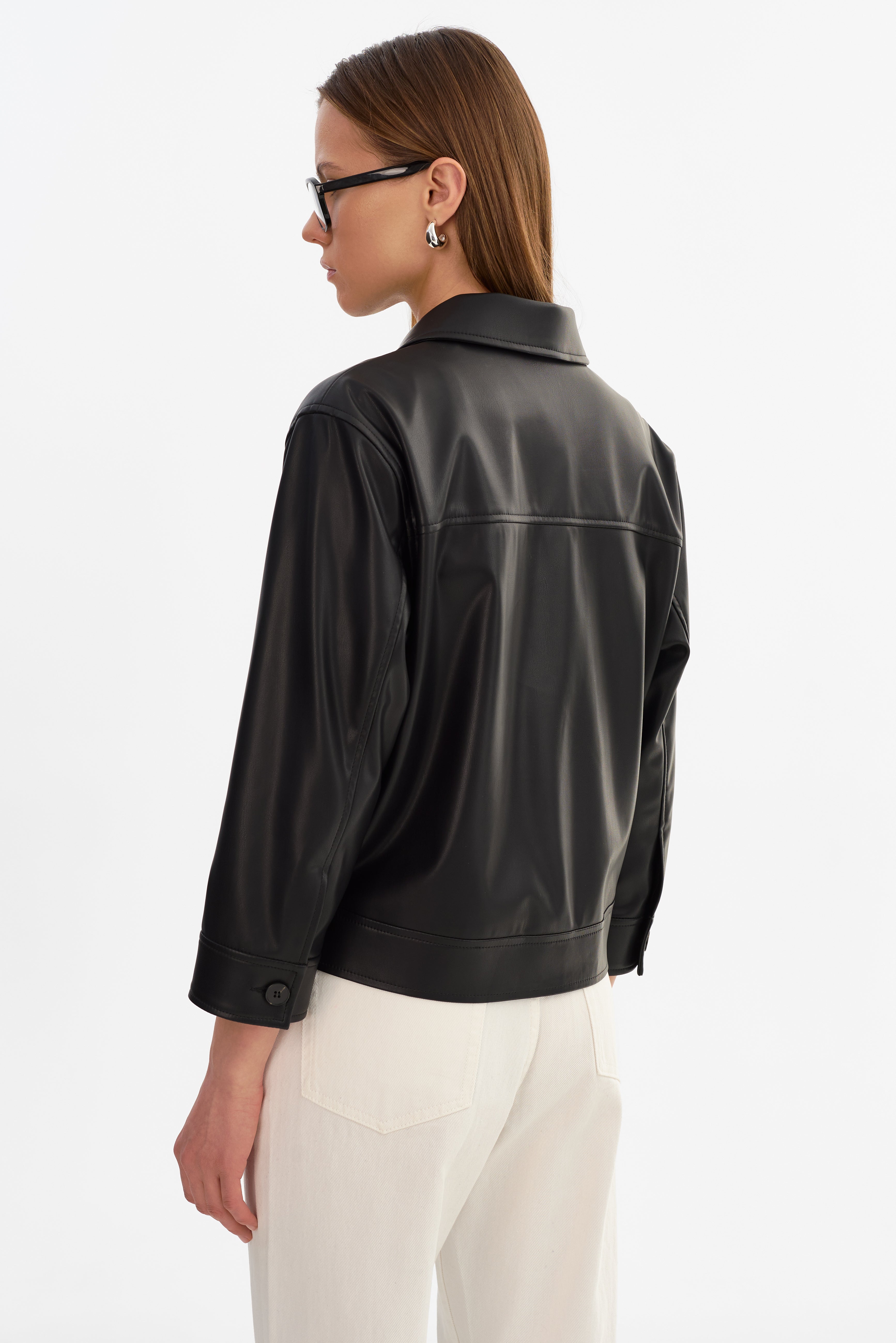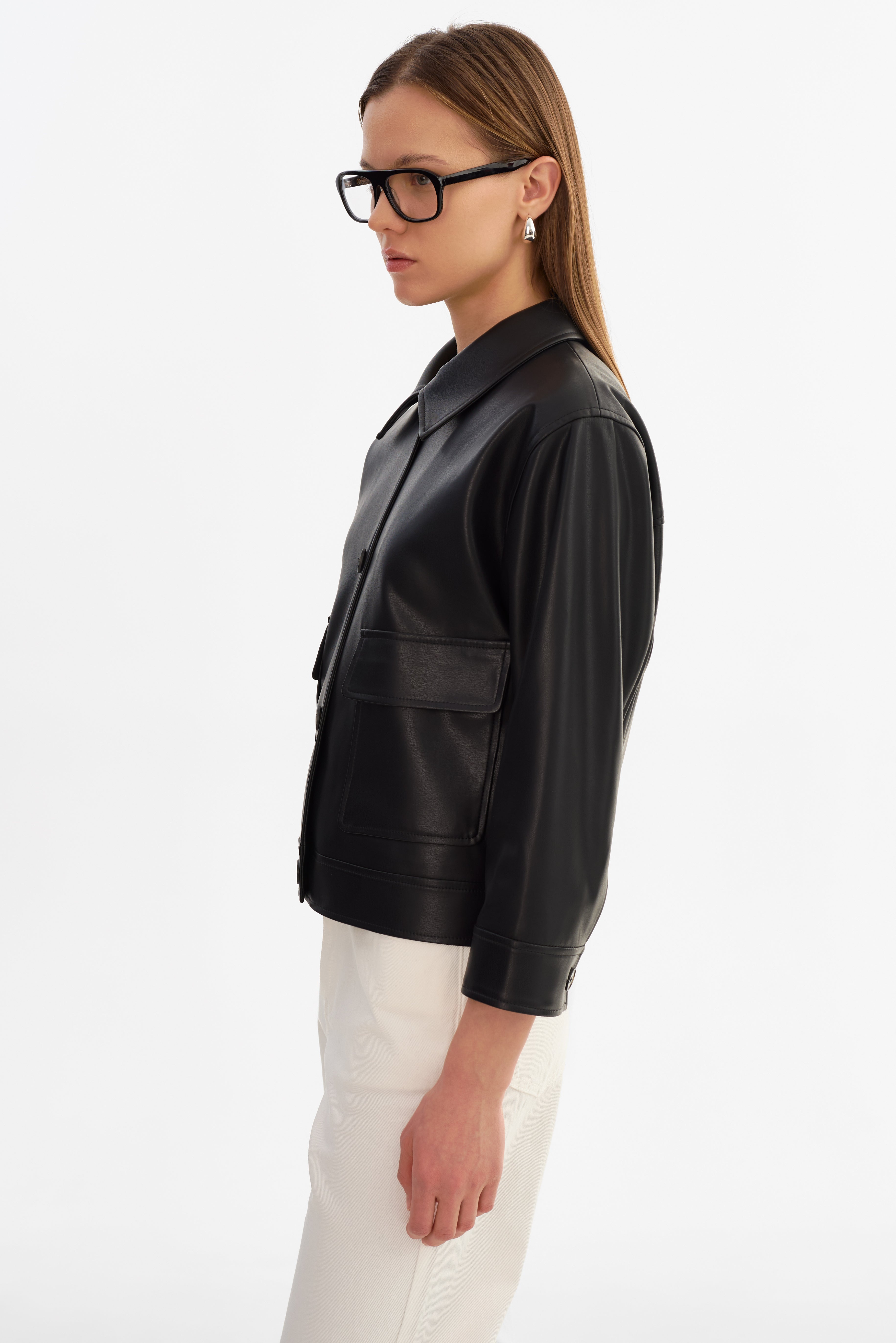 Relaxed with an edge. The ELARA Faux Leather Jacket balances modern ease with a confident feel, creating an effortless layer that works across everyday looks.
