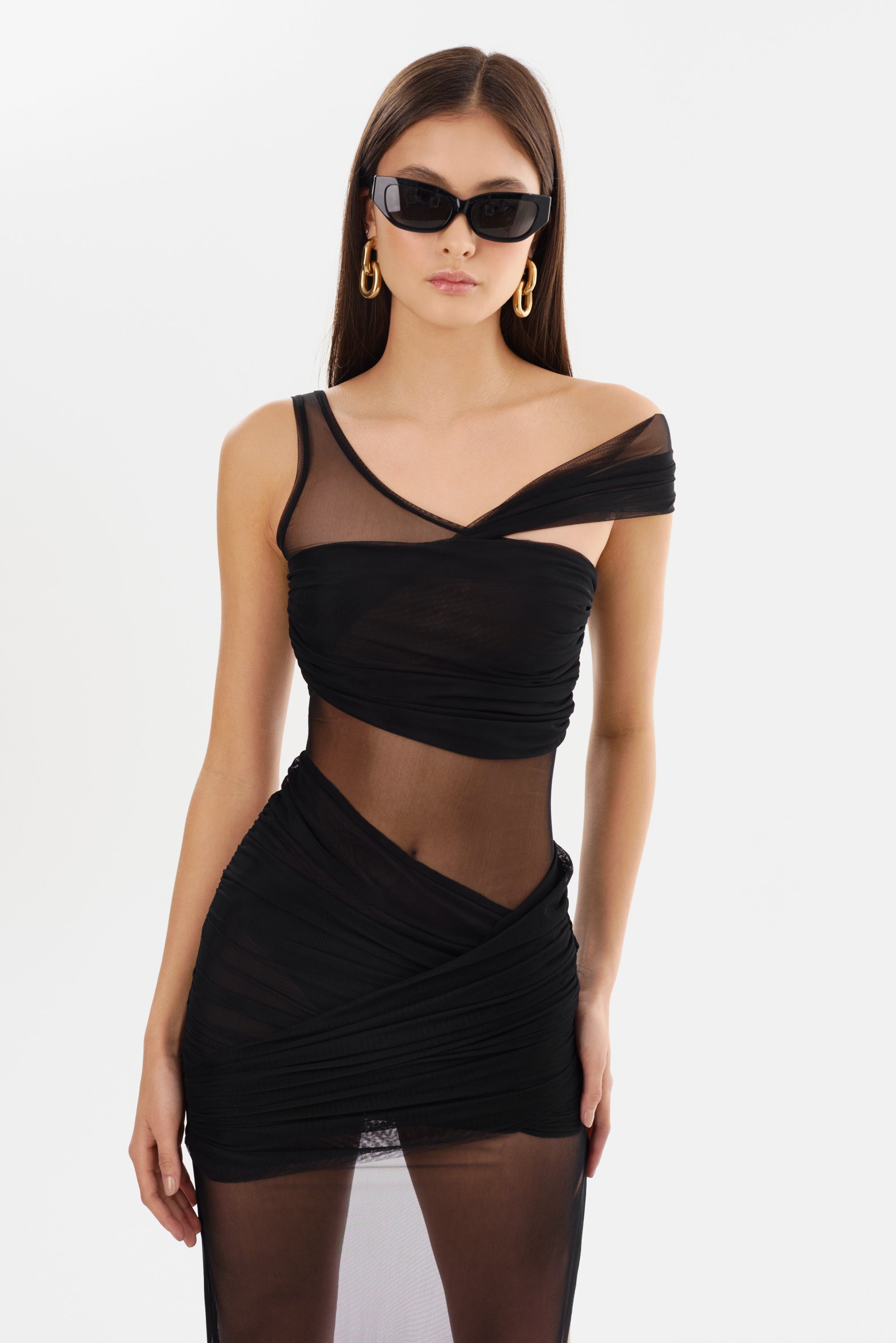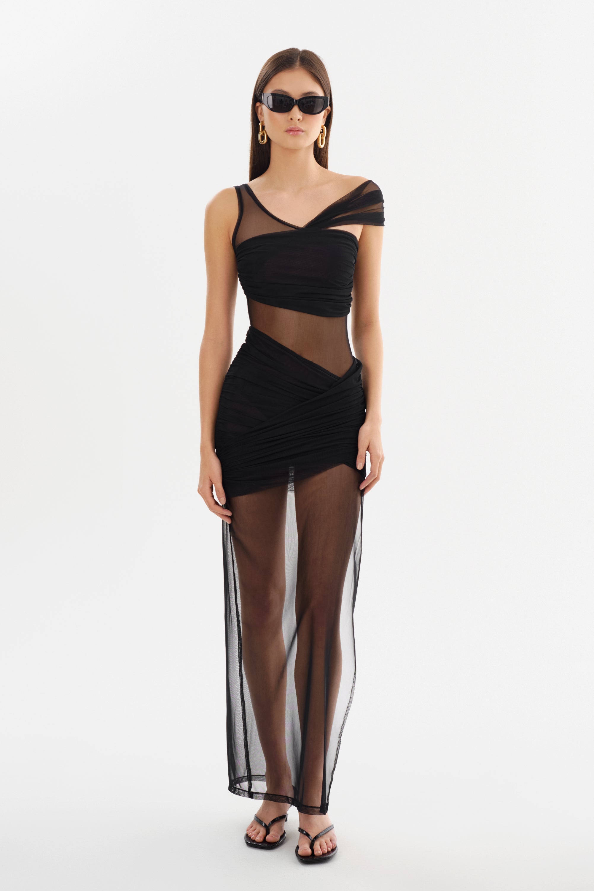 The FLORINDA Mesh Dress is a statement of modern elegance, blending semi-sheer allure with a graceful maxi length. Its sculptural twist details and asymmetrical straps create a bold, refined silhouette, while the unlined design adds a touch of daring sophistication. Perfect for striking evening looks, this lightweight piece redefines effortless resort glamour.