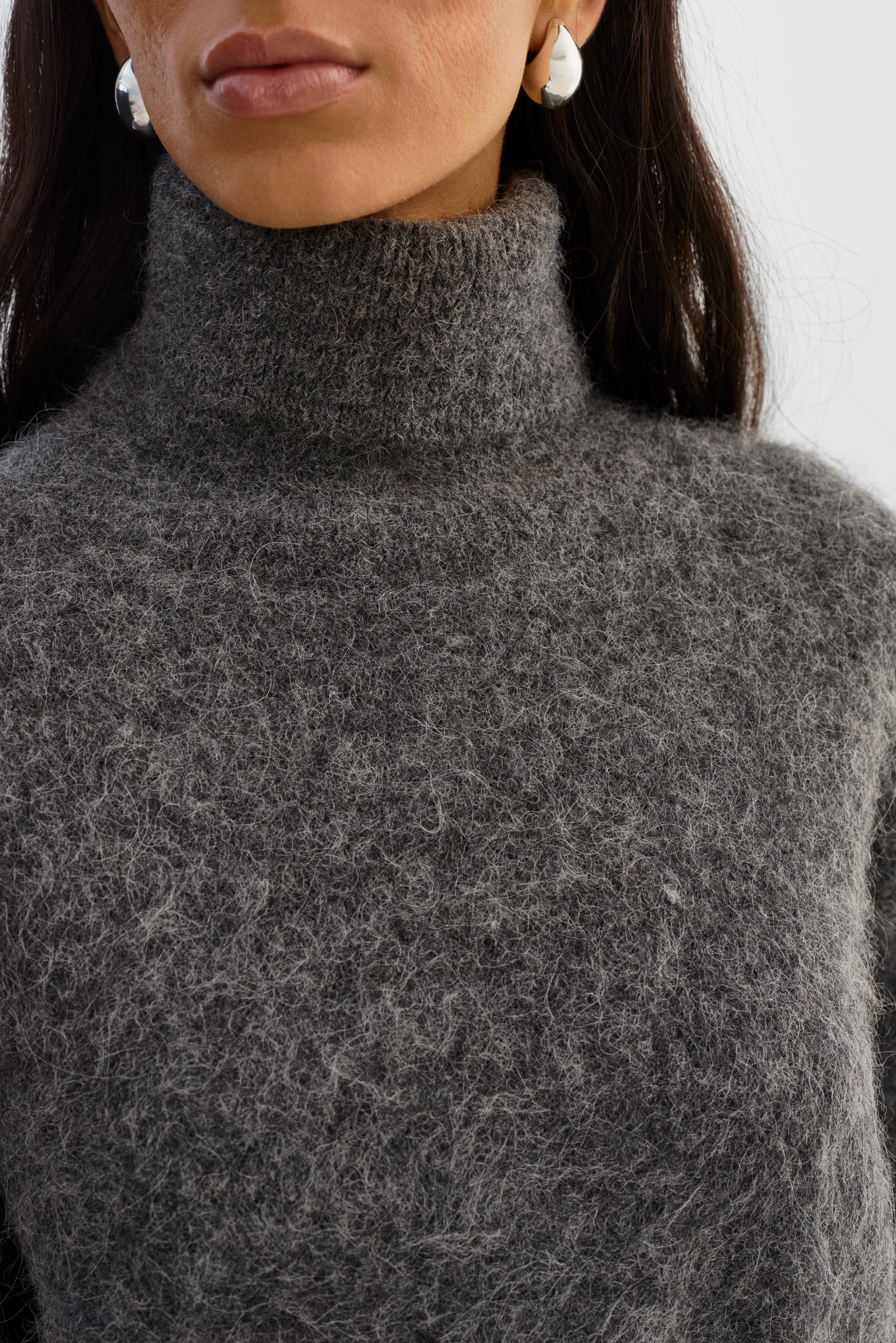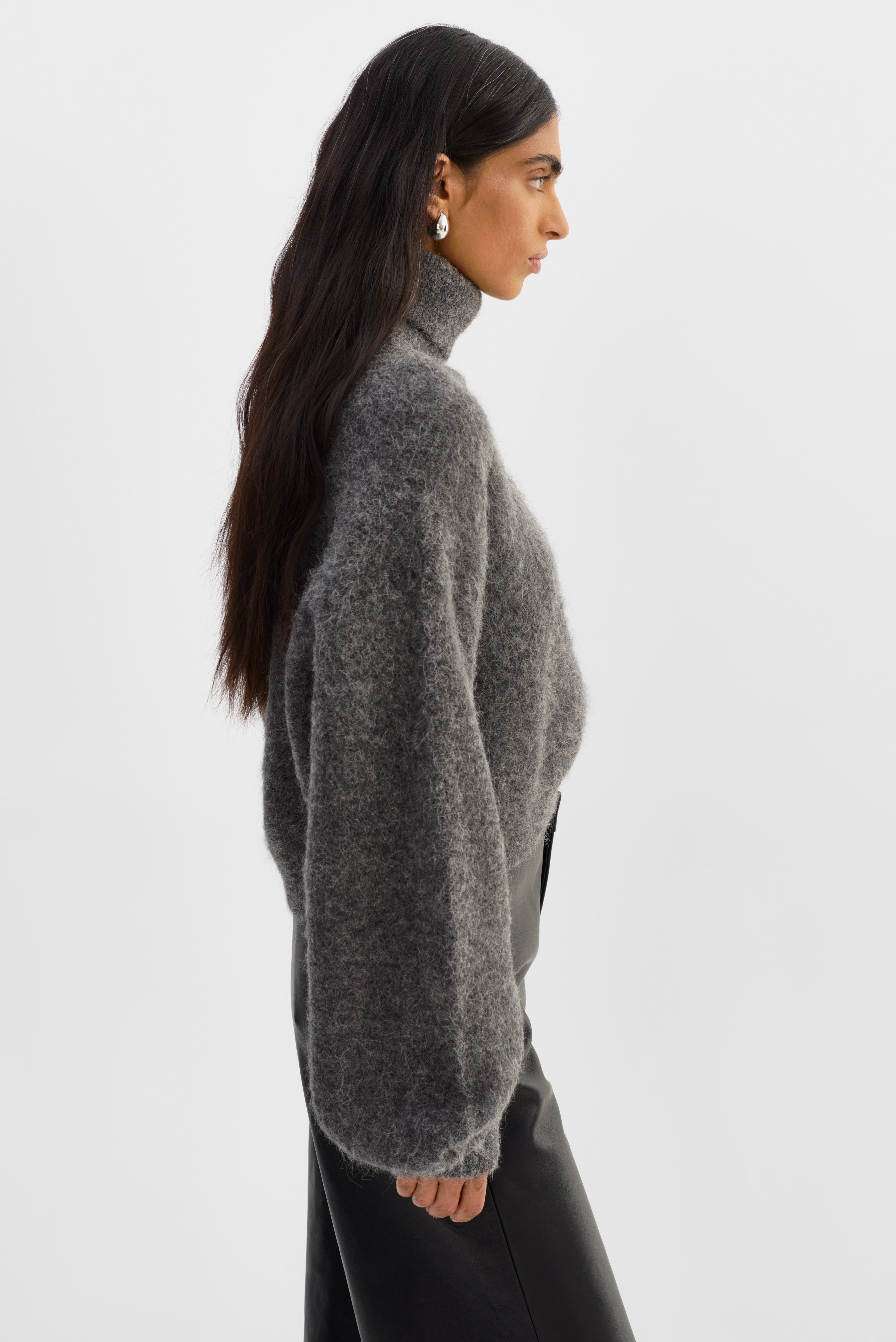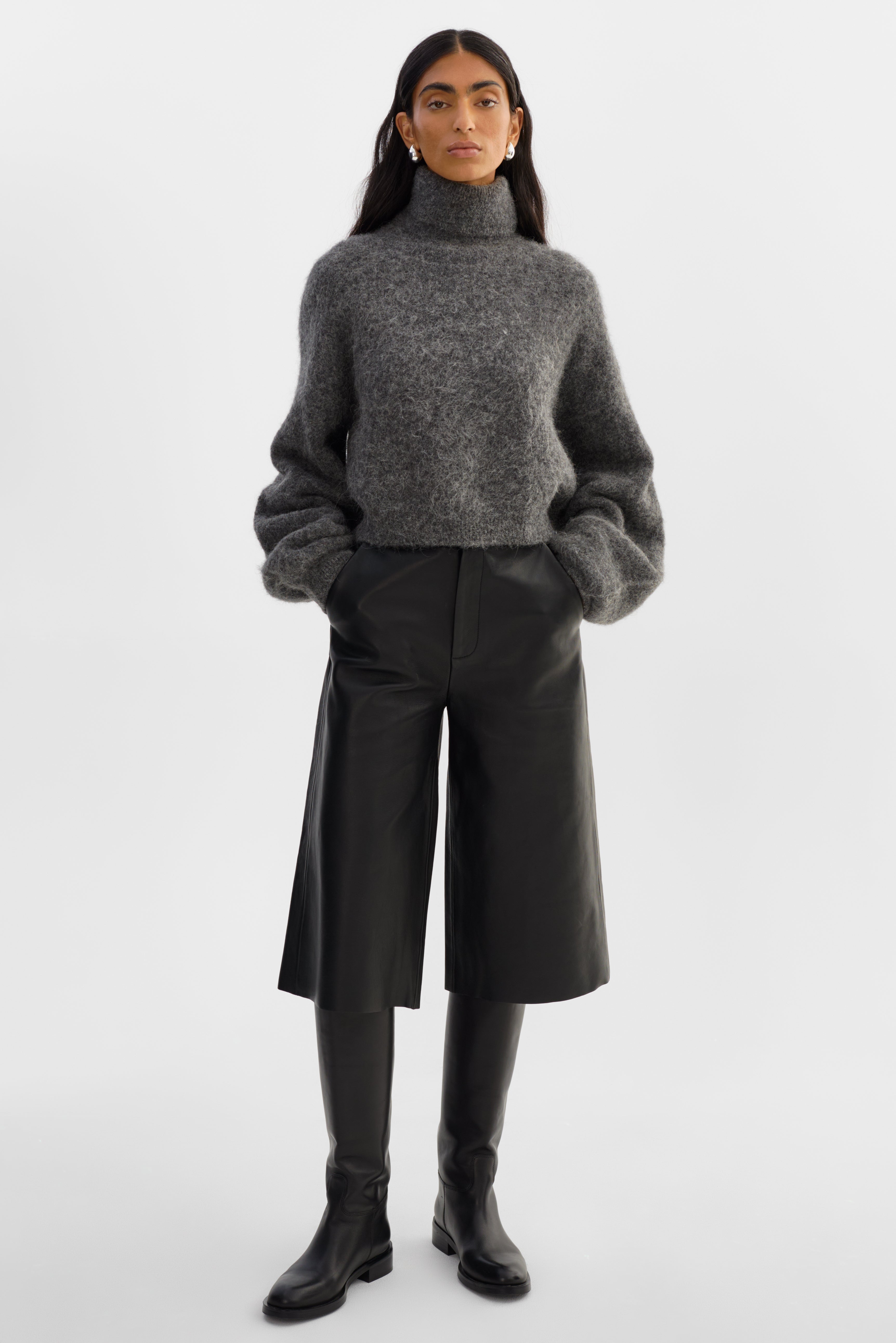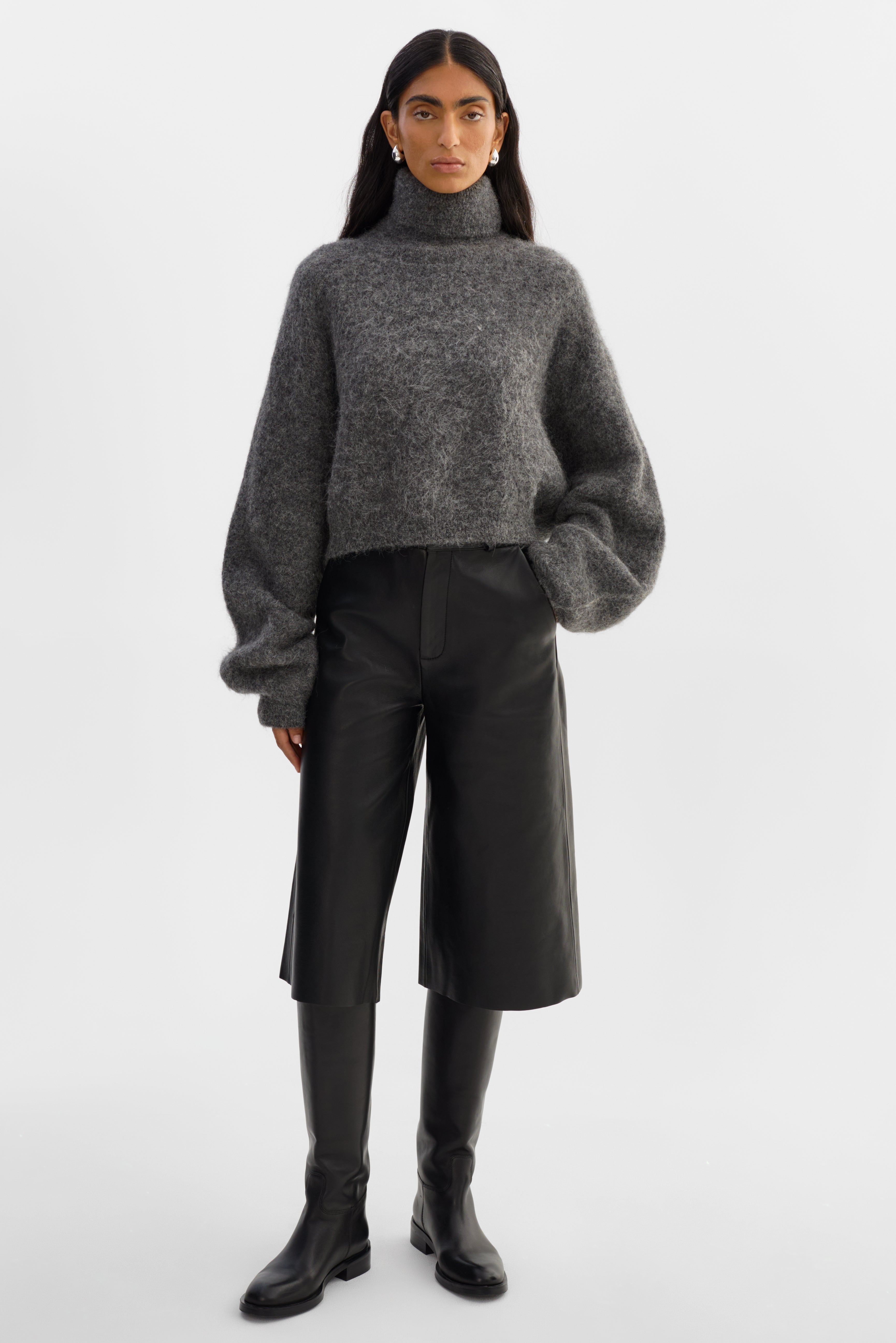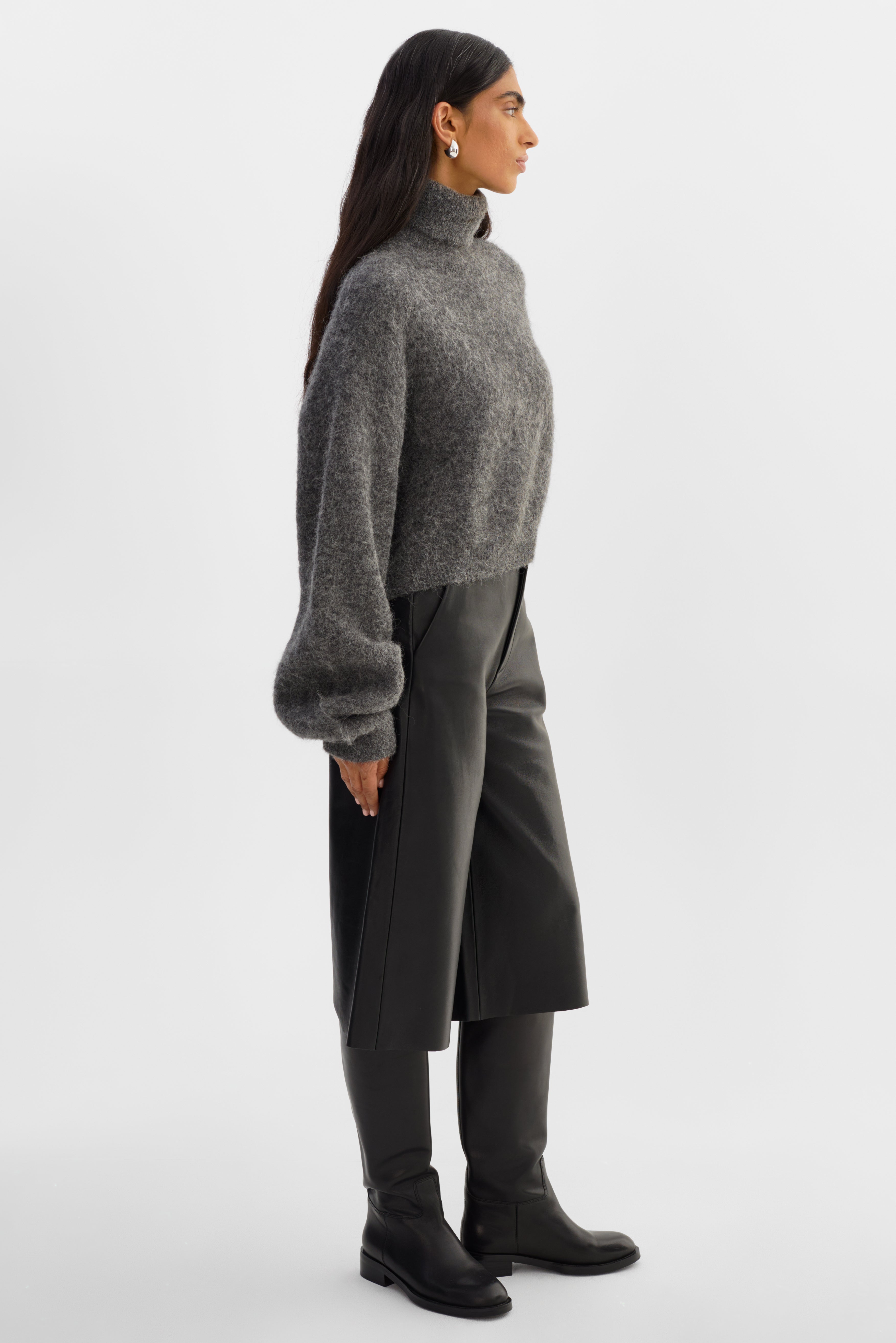 All about luxury and edge, the GARCELLE Wool Sweater is knitted from a plush alpaca blend that exudes sophistication. The loose fit and high-low hem add a modern, yet refined touch. Featuring a cropped length, bold turtleneck, and balloon sleeves, it's perfect with high-waisted jeans for an effortless, casual look or with the matching TARAN Wool Pants for the ultimate cold-weather statement.