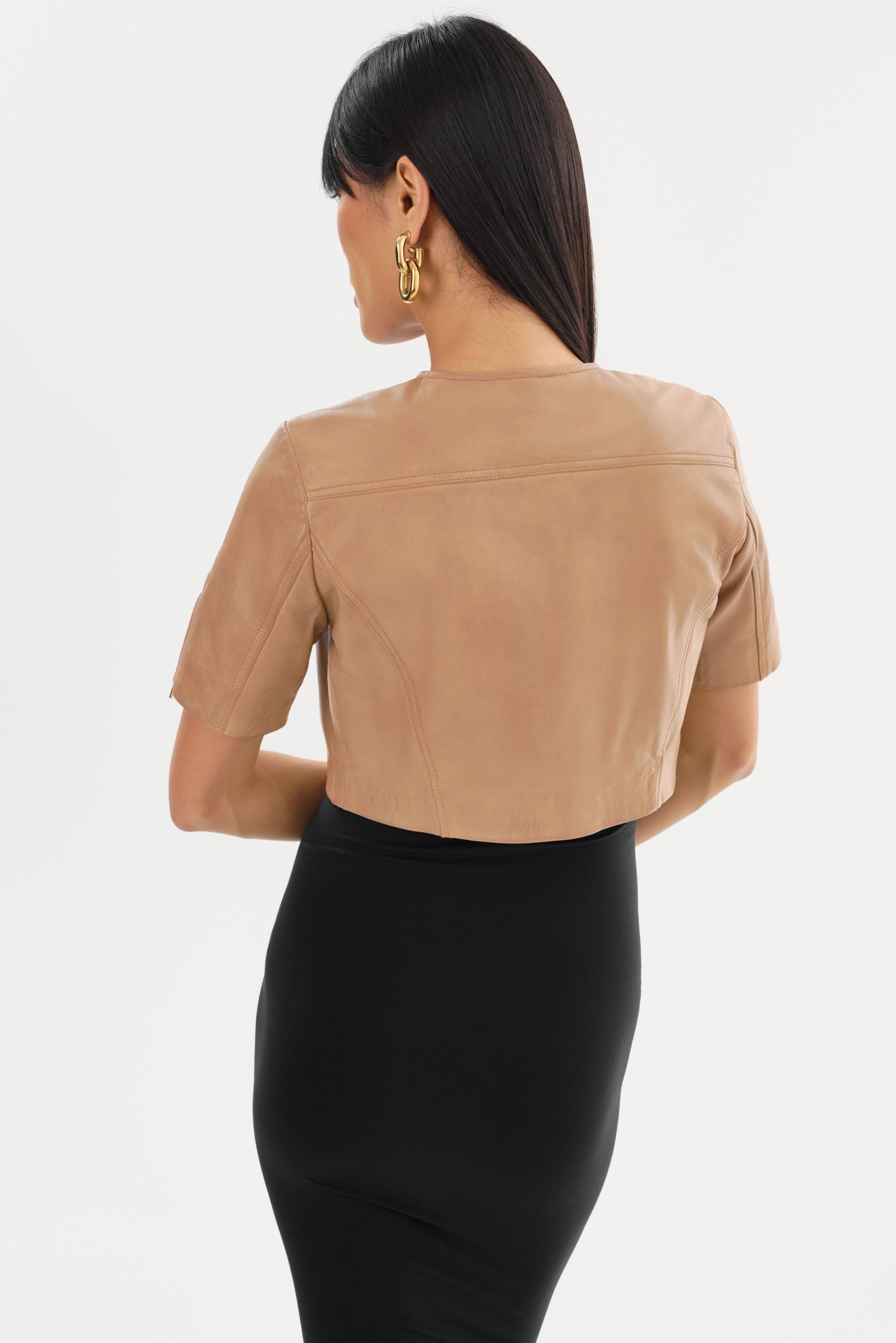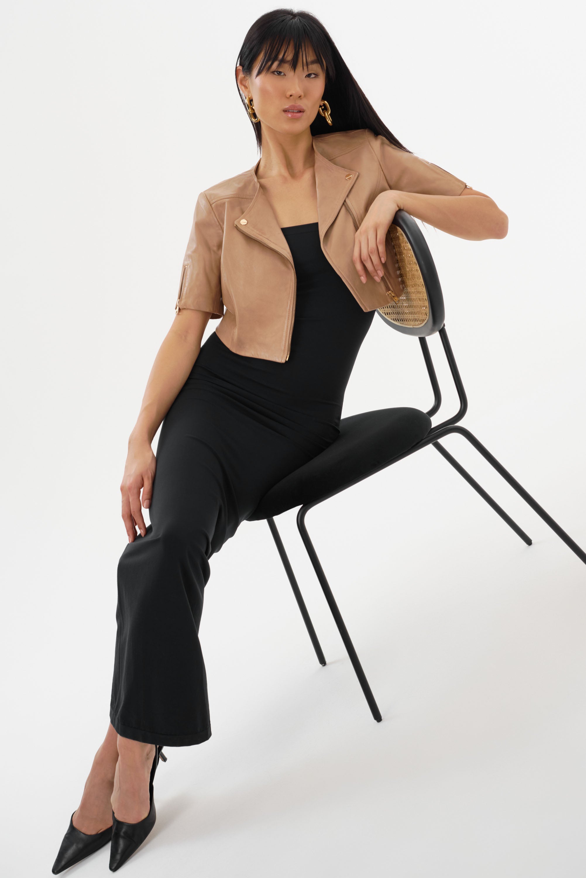Unexpected in all the right ways, the Kirsi cropped biker jacket is an attractive choice for balmy evenings. Featuring classic biker elements from the asymmetrical closure to the snap lapels & gold branded hardware this beauty hits right at the hips to define your silhouette. You'll fall for its soft-to-the-touch lamb leather body. Lightweight and breathable, this top piece makes a flawless day to night transition.