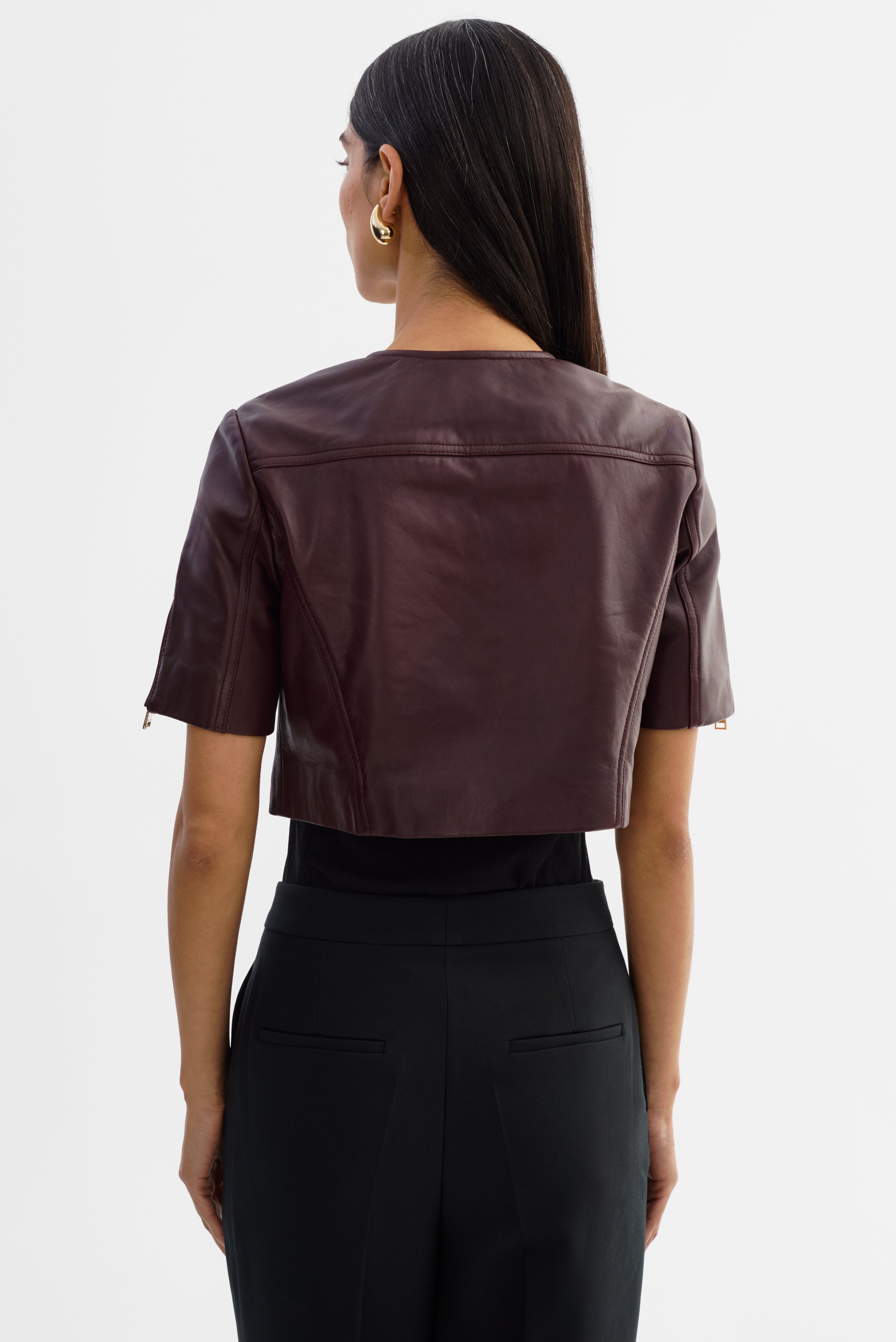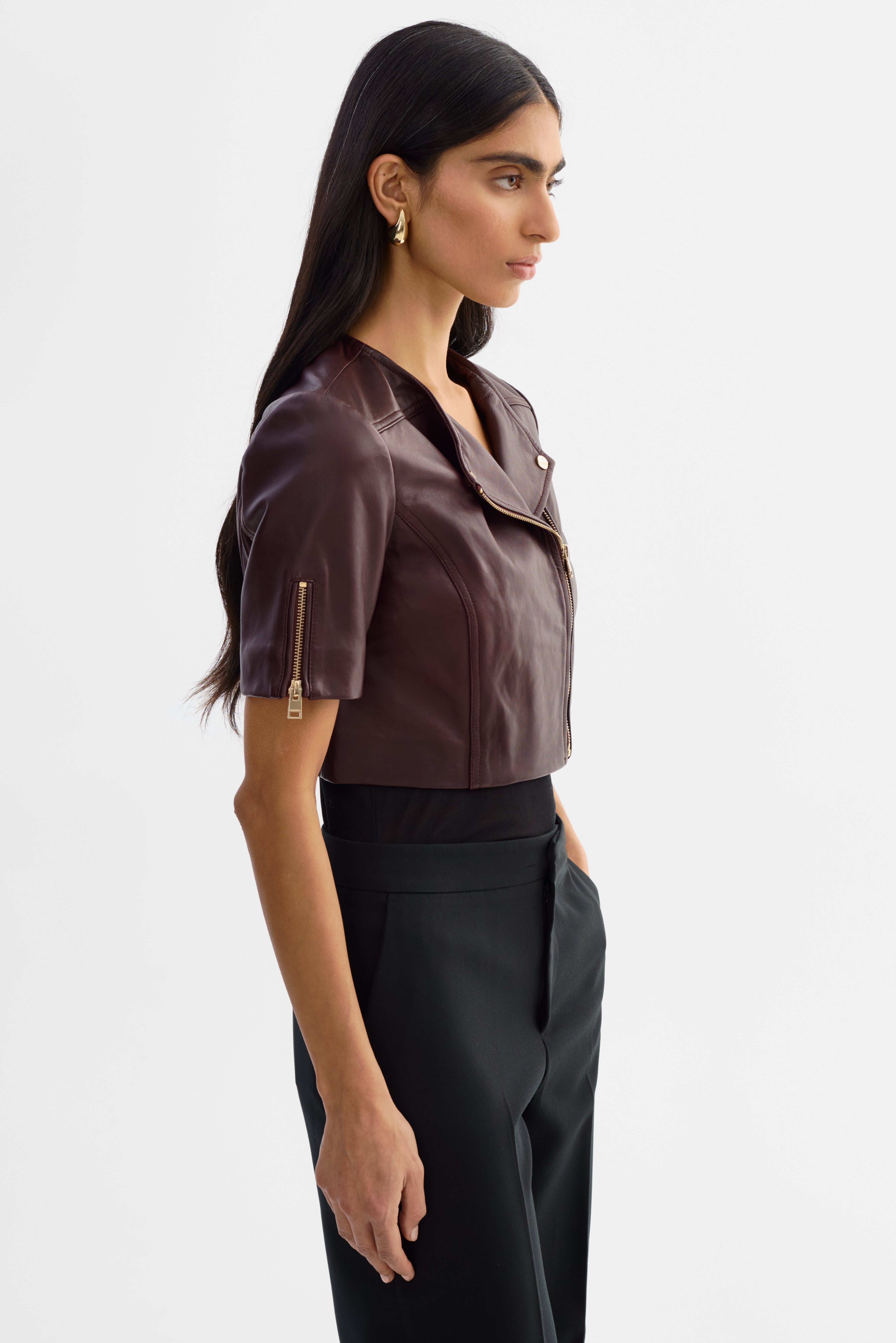 Unexpected in all the right ways, the Kirsi cropped biker jacket is an attractive choice for balmy evenings. Featuring classic biker elements from the asymmetrical closure to the snap lapels & gold branded hardware this beauty hits right at the hips to define your silhouette. You'll fall for its soft-to-the-touch lamb leather body. Lightweight and breathable, this top piece makes a flawless day to night transition.