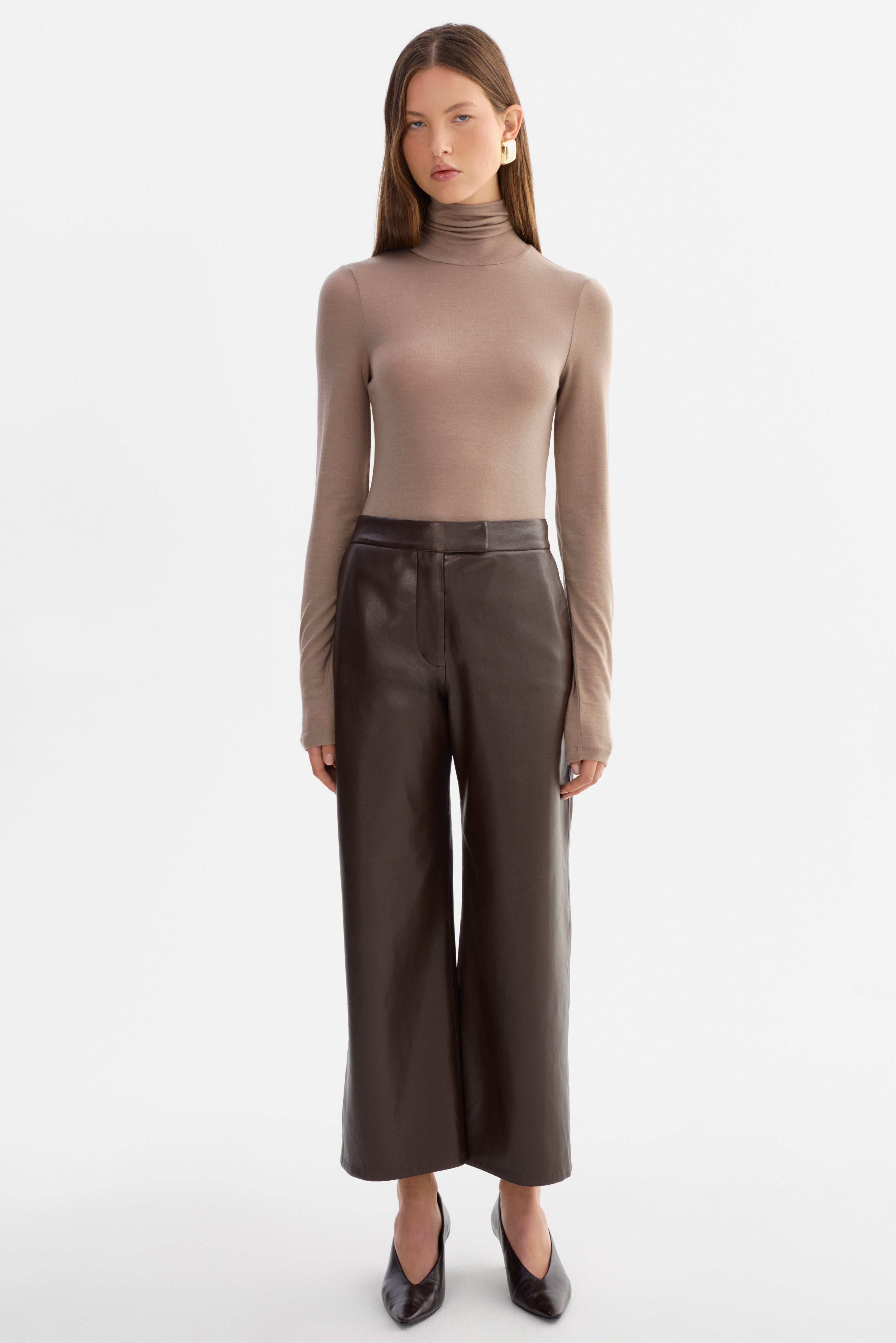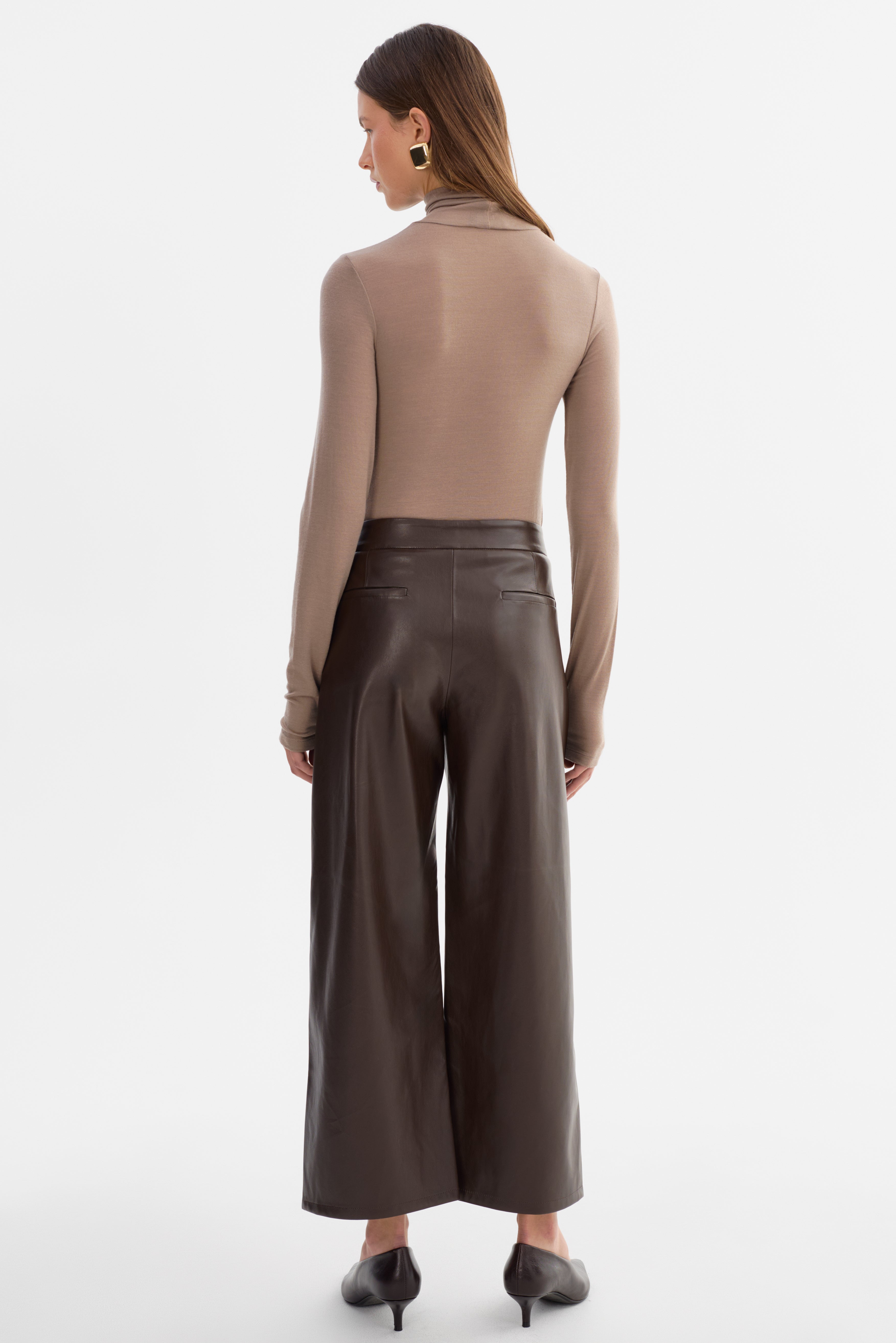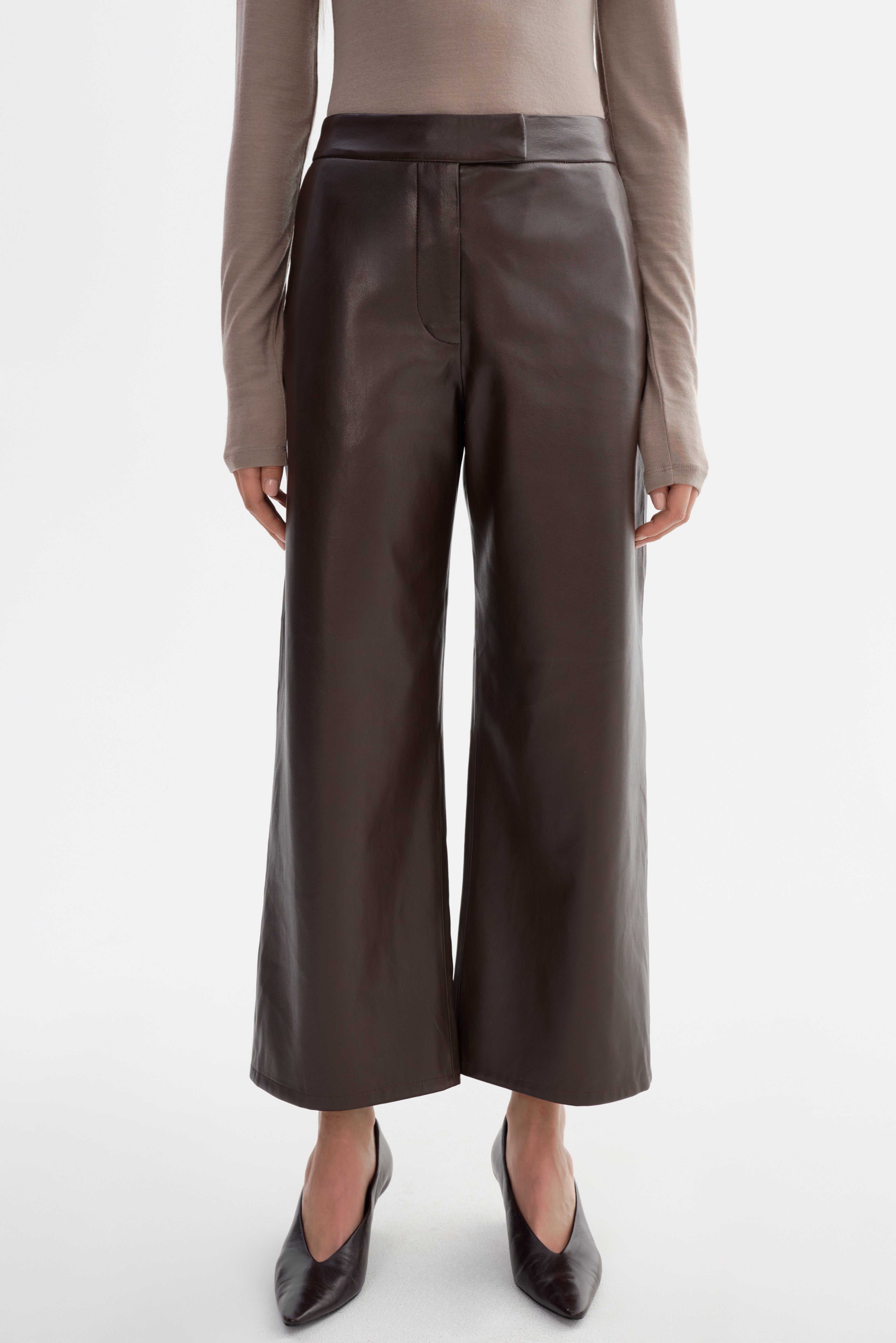 • Wide leg faux leather trouser