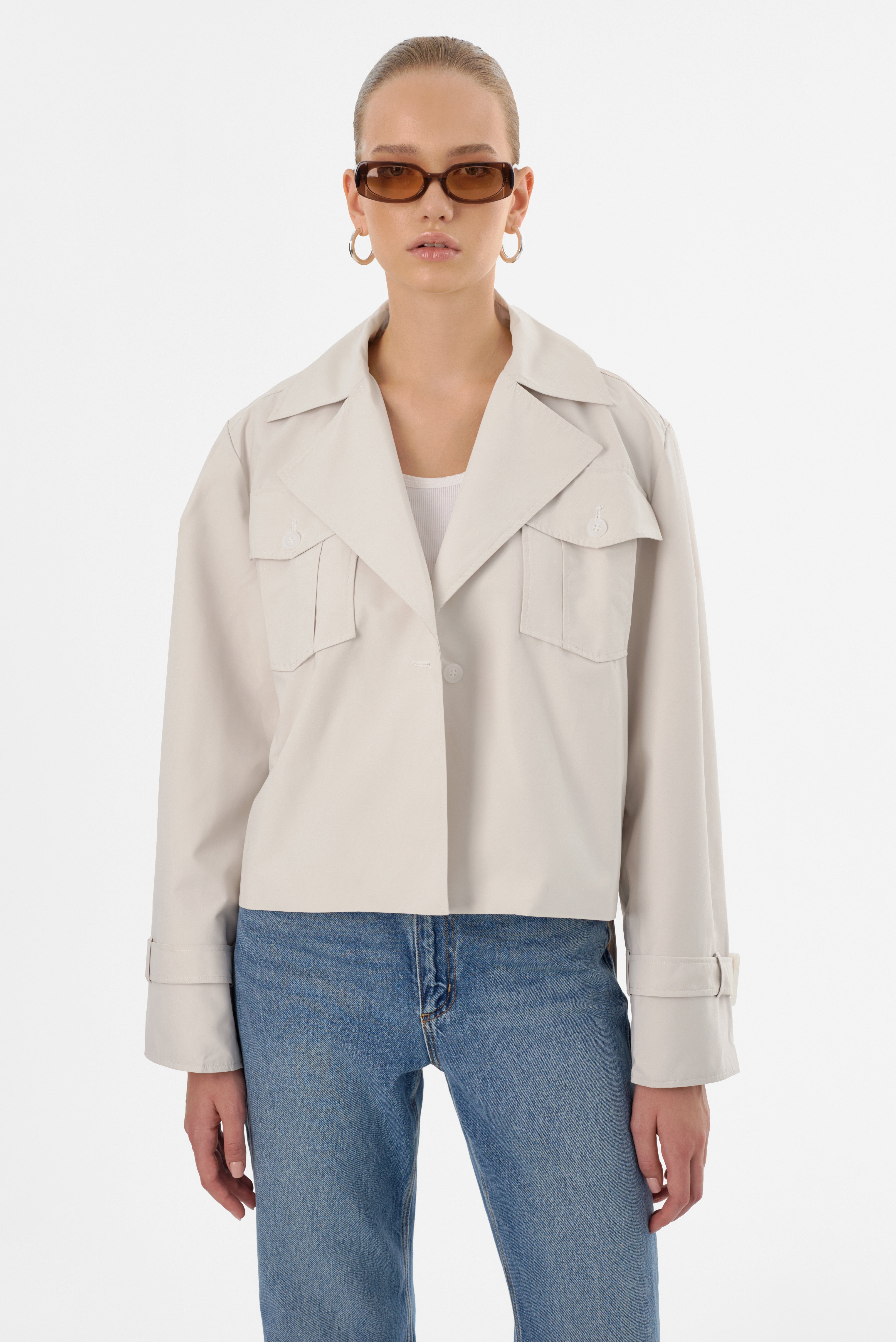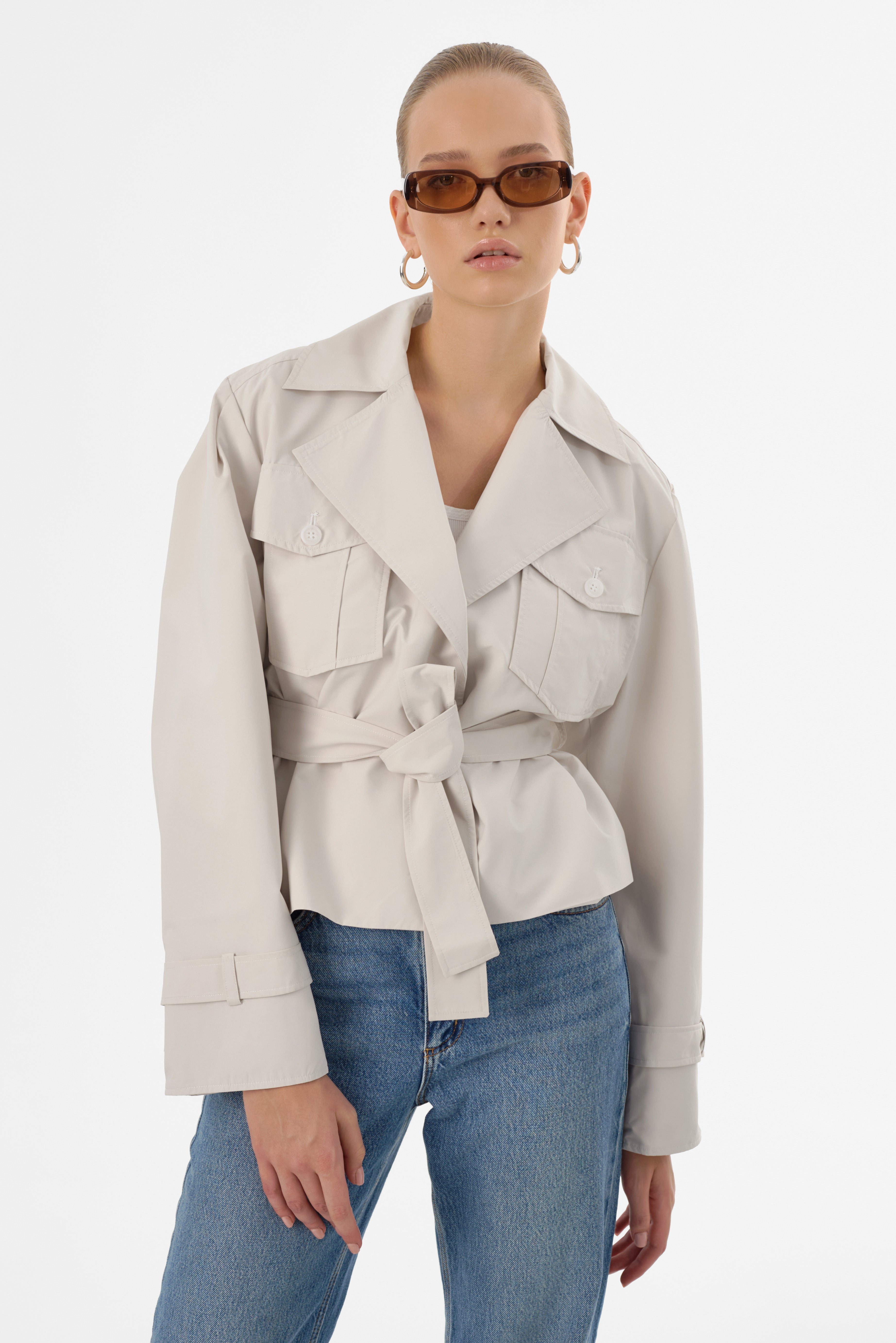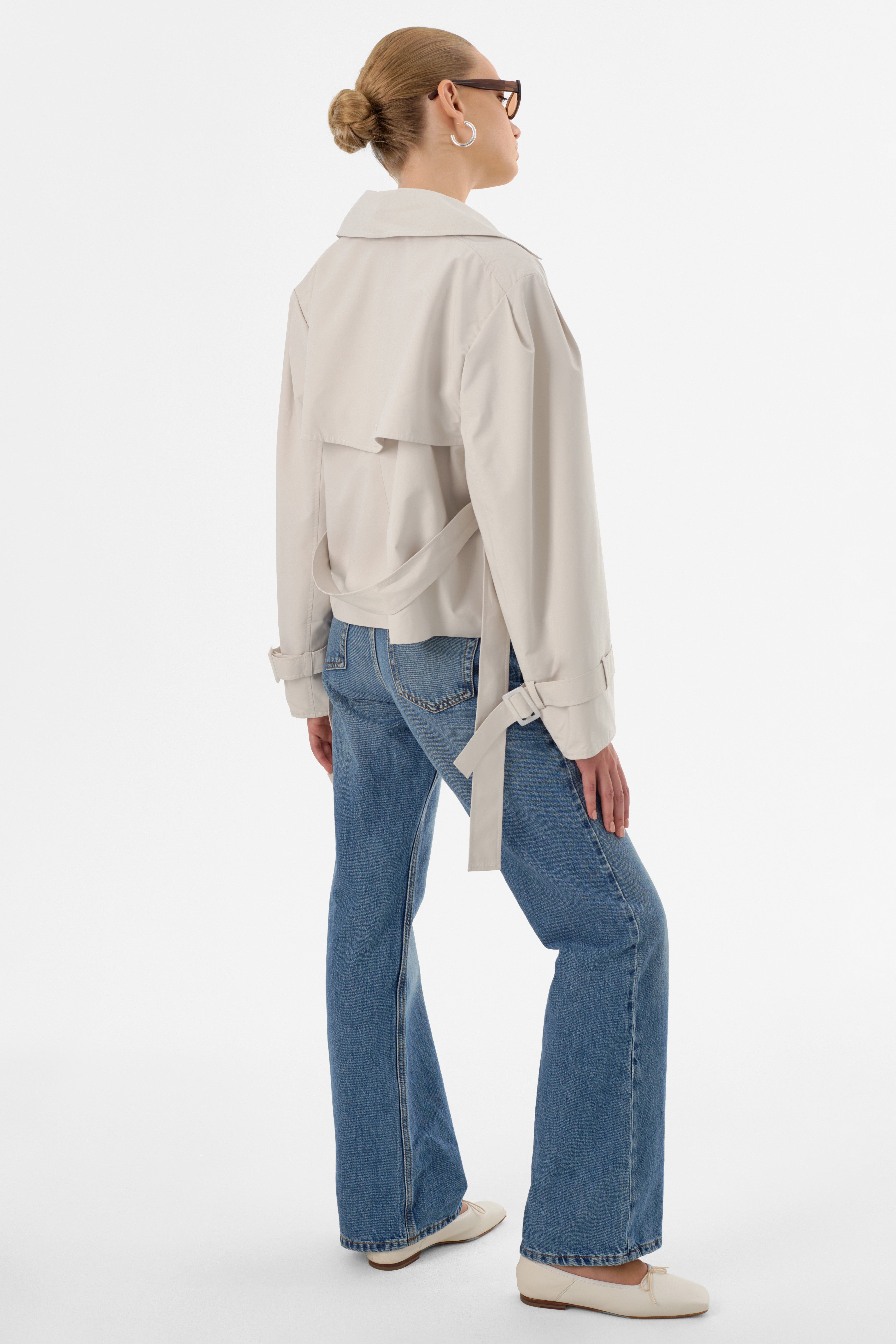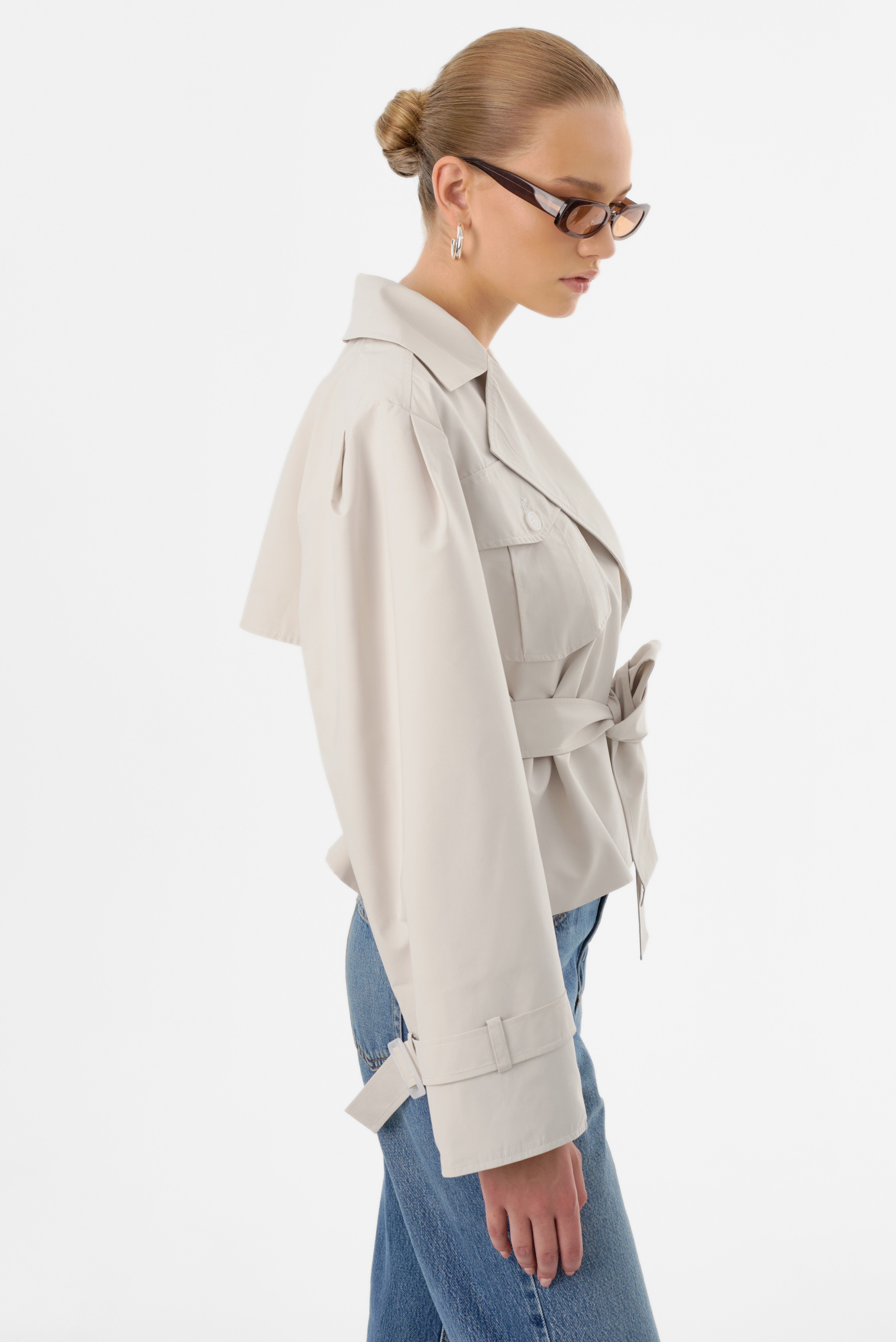 The QUINN Cropped Trench Coat reimagines a timeless silhouette with a chic, modern spin. Featuring a defined waist and voluminous sleeves, it offers a refined statement piece. Perfect for the fashion-forward woman seeking a versatile outer layer, this jacket brings polished style to every look.