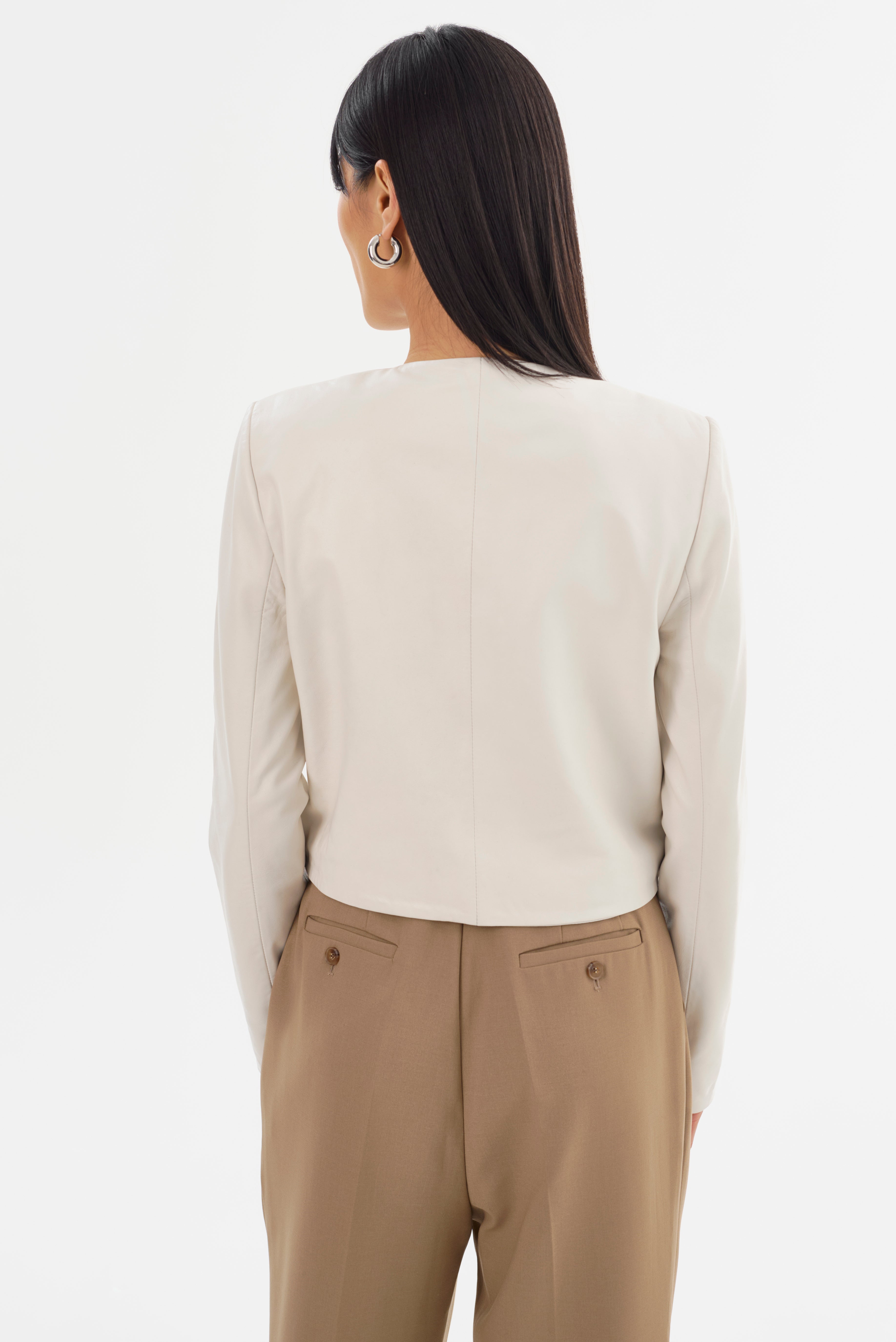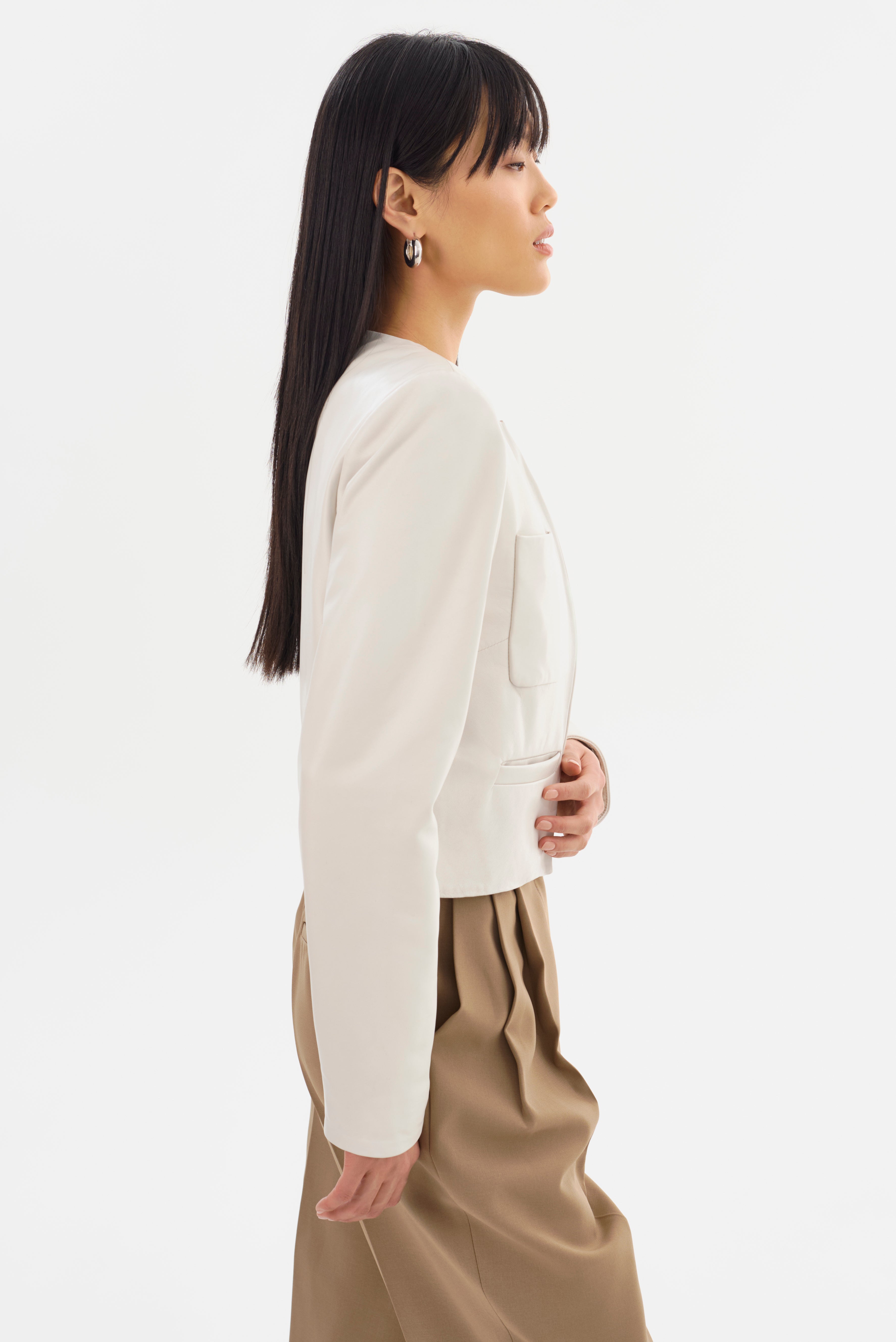 A modern take on a classic silhouette, the LINETTE Leather Jacket is a timeless wardrobe essential. Crafted from premium lamb leather, it features a chic round collar, two front patch pockets, and a sleek, minimalist design. Pair it with the matching ROWAN Leather Skirt for a sophisticated take on leather suiting.