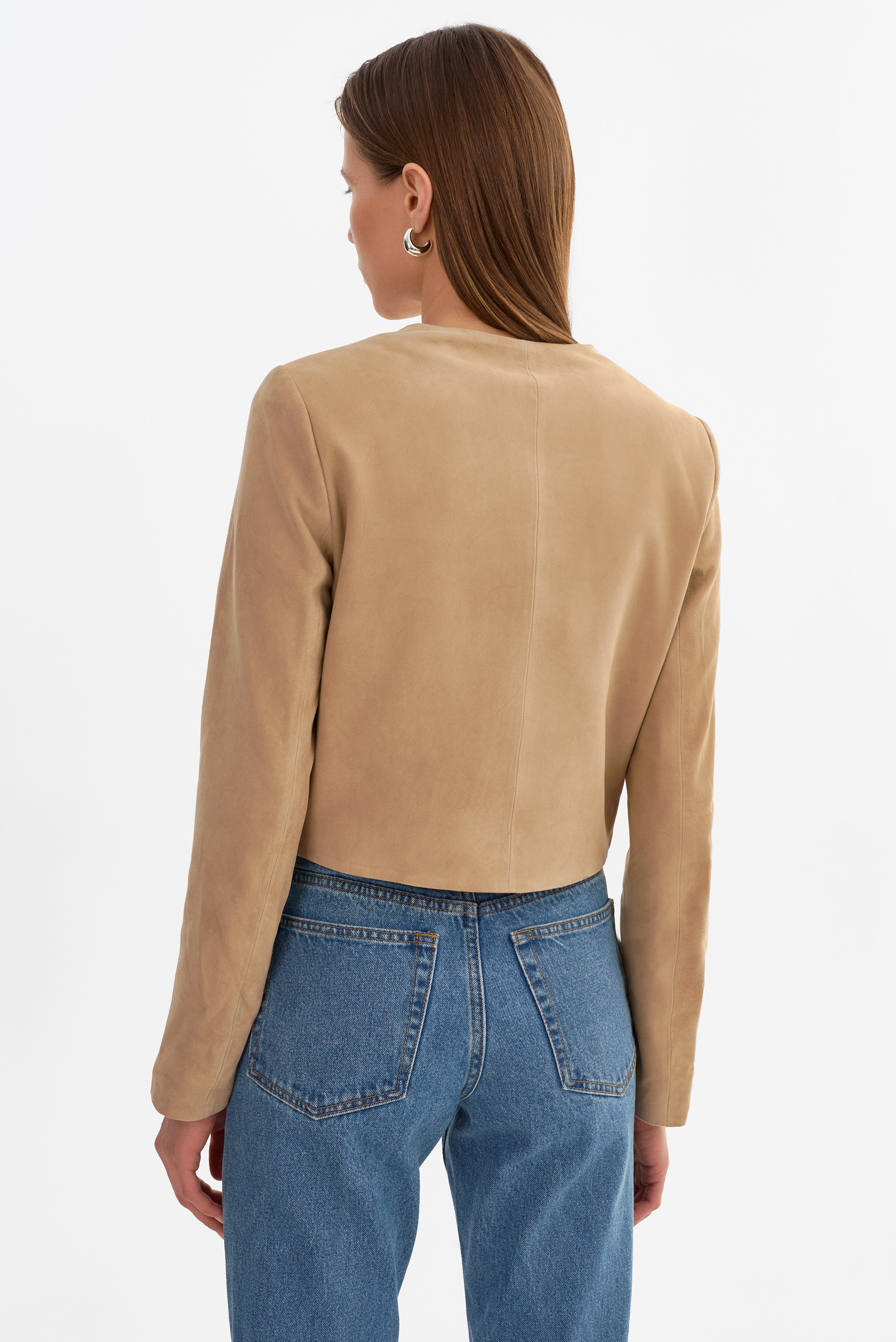 A modern take on a classic silhouette, the LINETTE S Suede Jacket offers a clean, minimalist look with a softer feel. Crafted from supple suede, it features a collarless neckline, front zip closure, and a streamlined design that feels easy to wear. An effortless layer that works just as well dressed up or styled casually.