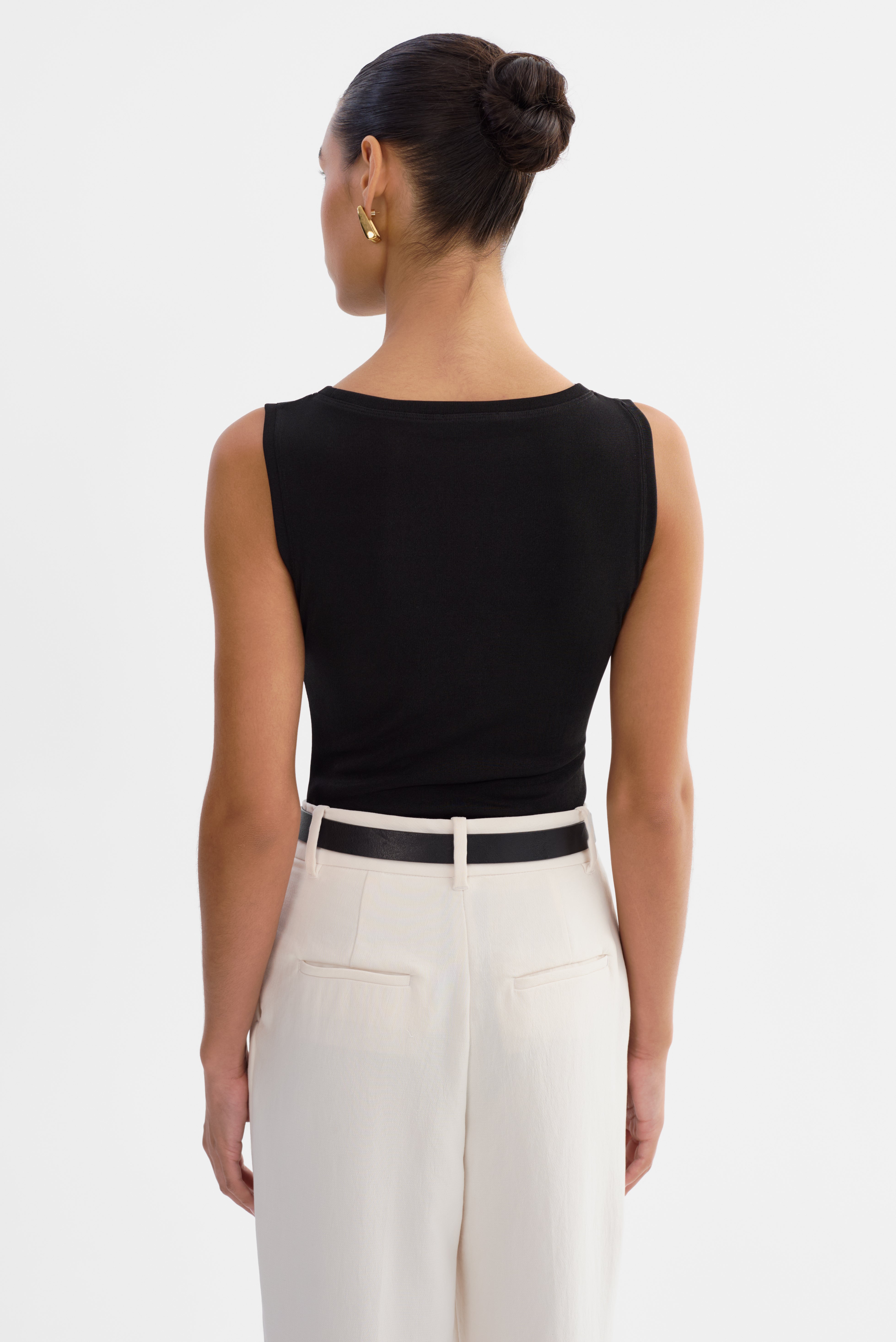 The LOKI Bodysuit offers a refined foundation with its fitted silhouette and clean boat neckline. Cut from a slinky stretch knit, it is finished with elasticated leg openings and a snap closure for ease and comfort. Versatile and streamlined, it pairs effortlessly with skirts or trousers for a polished look.