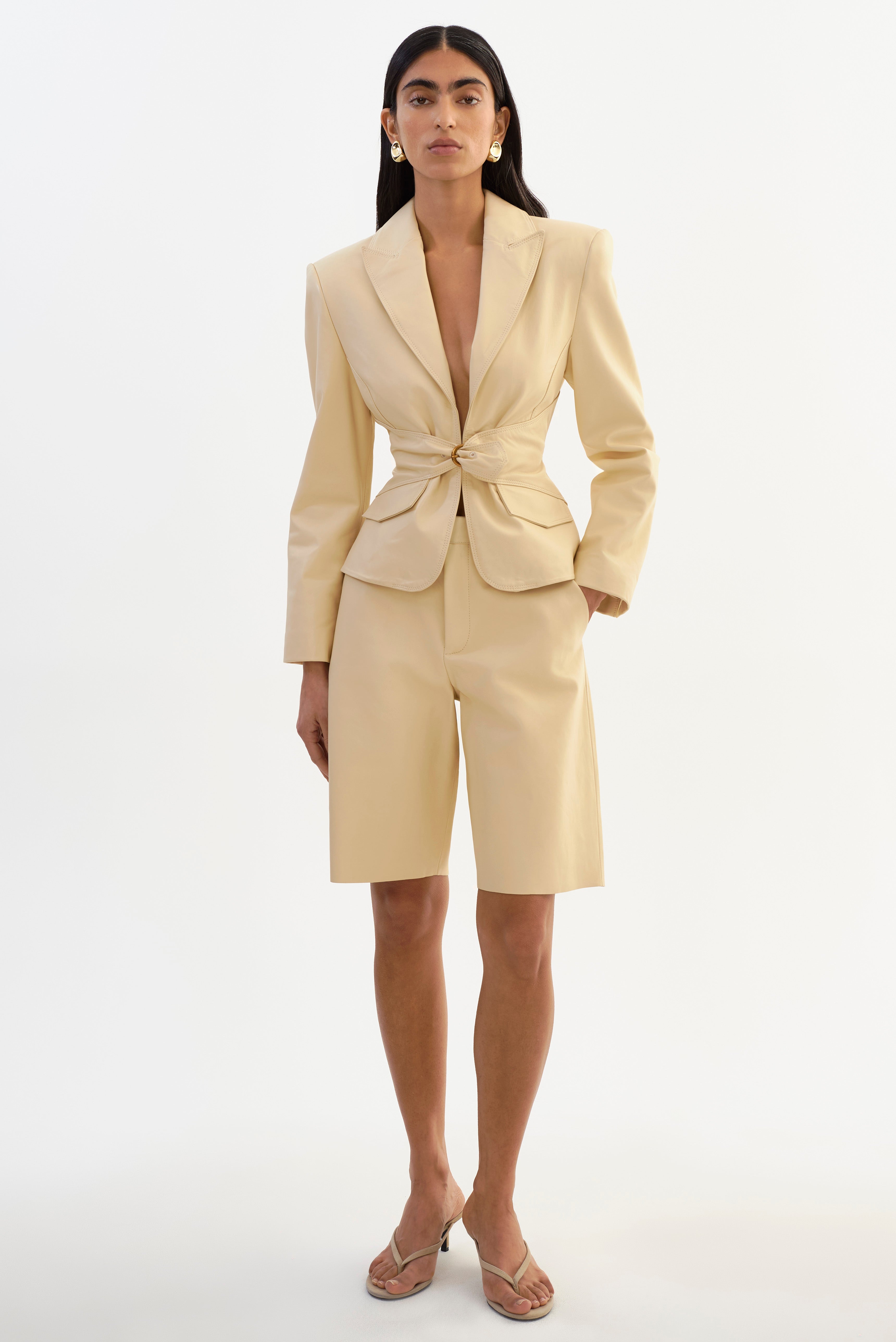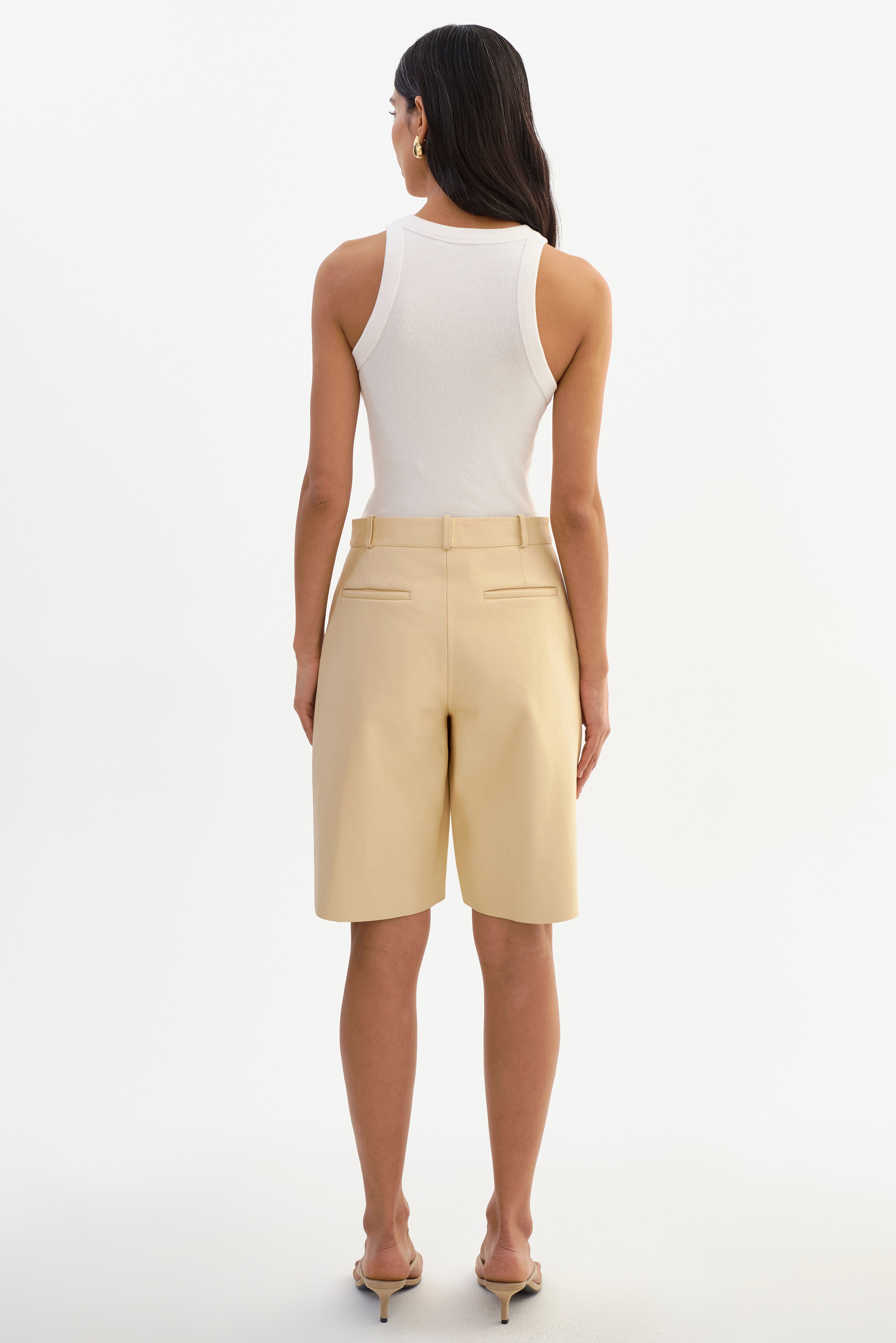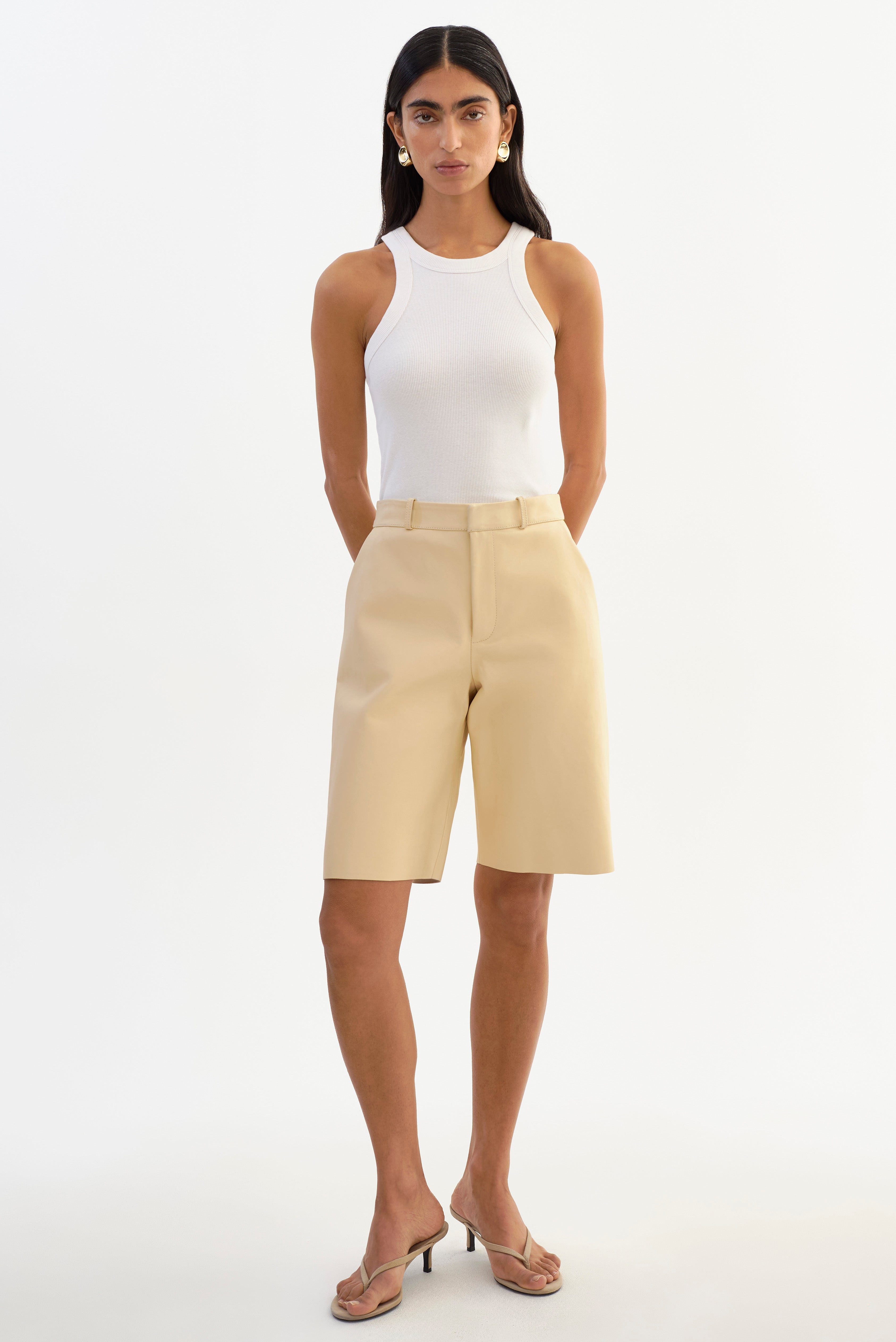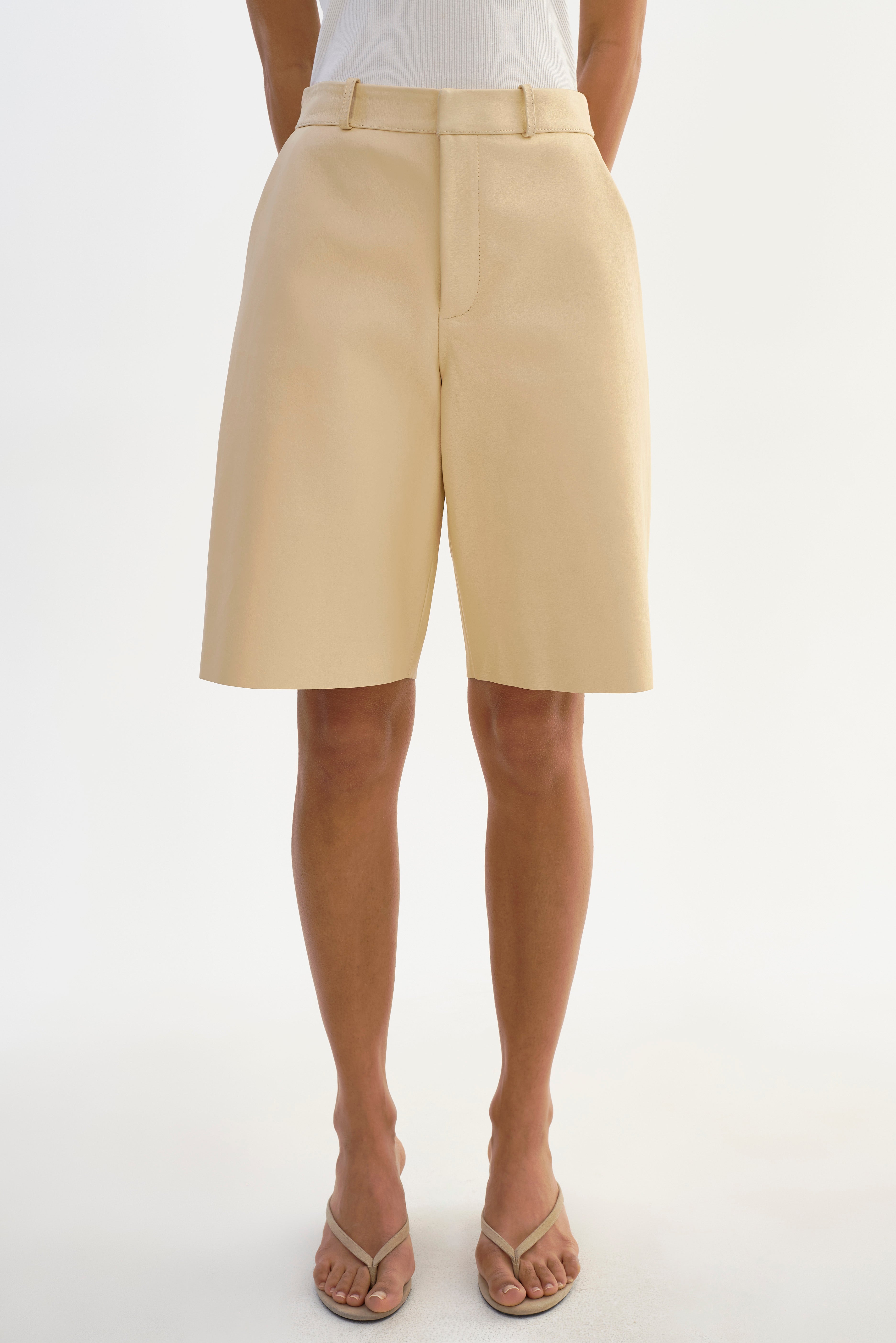 An elevated take on a warm-weather staple. Crafted from smooth leather with a refined, elongated shape, the LOTTA Leather Bermuda Shorts balances structure and ease beautifully. Polished yet relaxed, it transitions seamlessly from casual days to more considered looks.