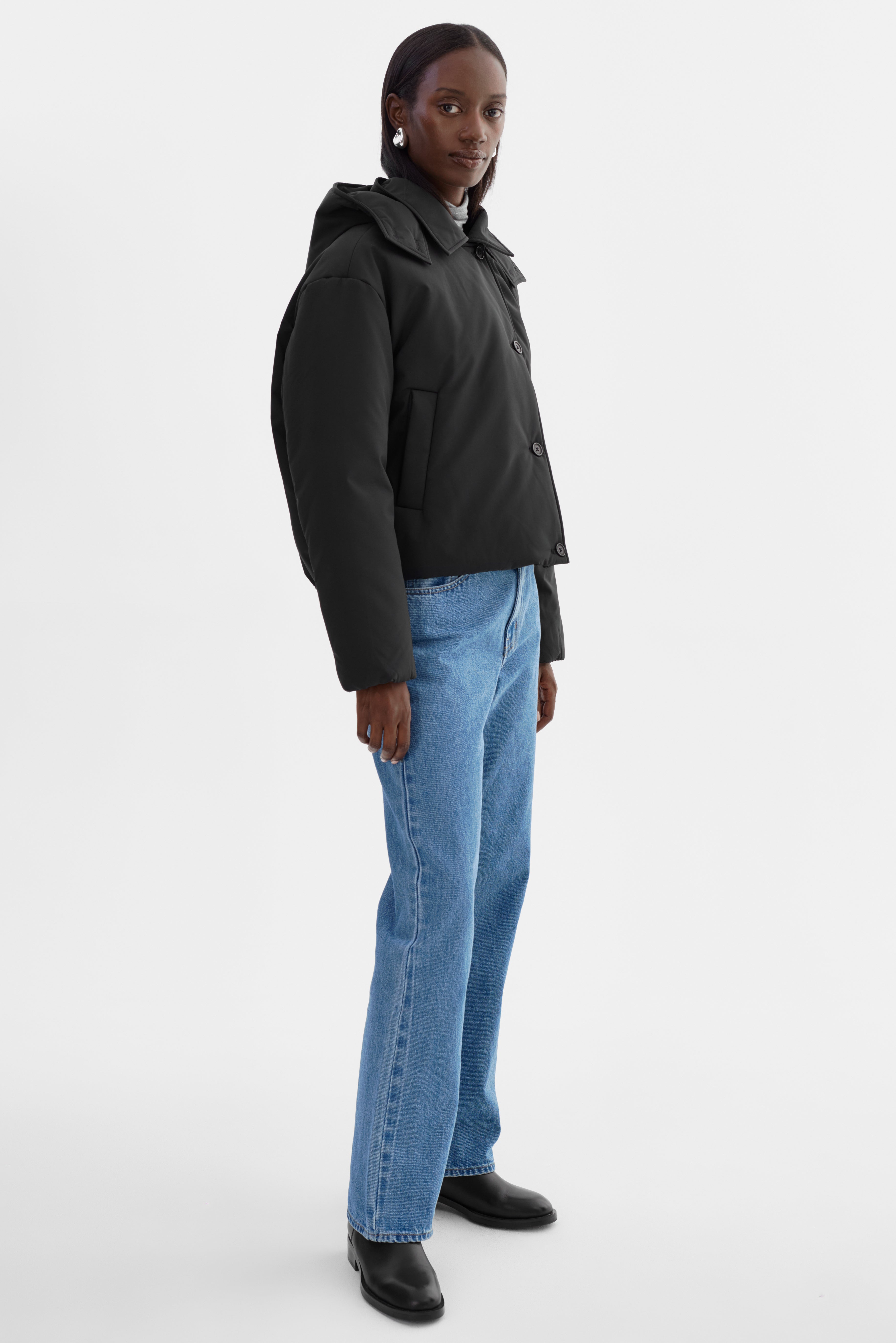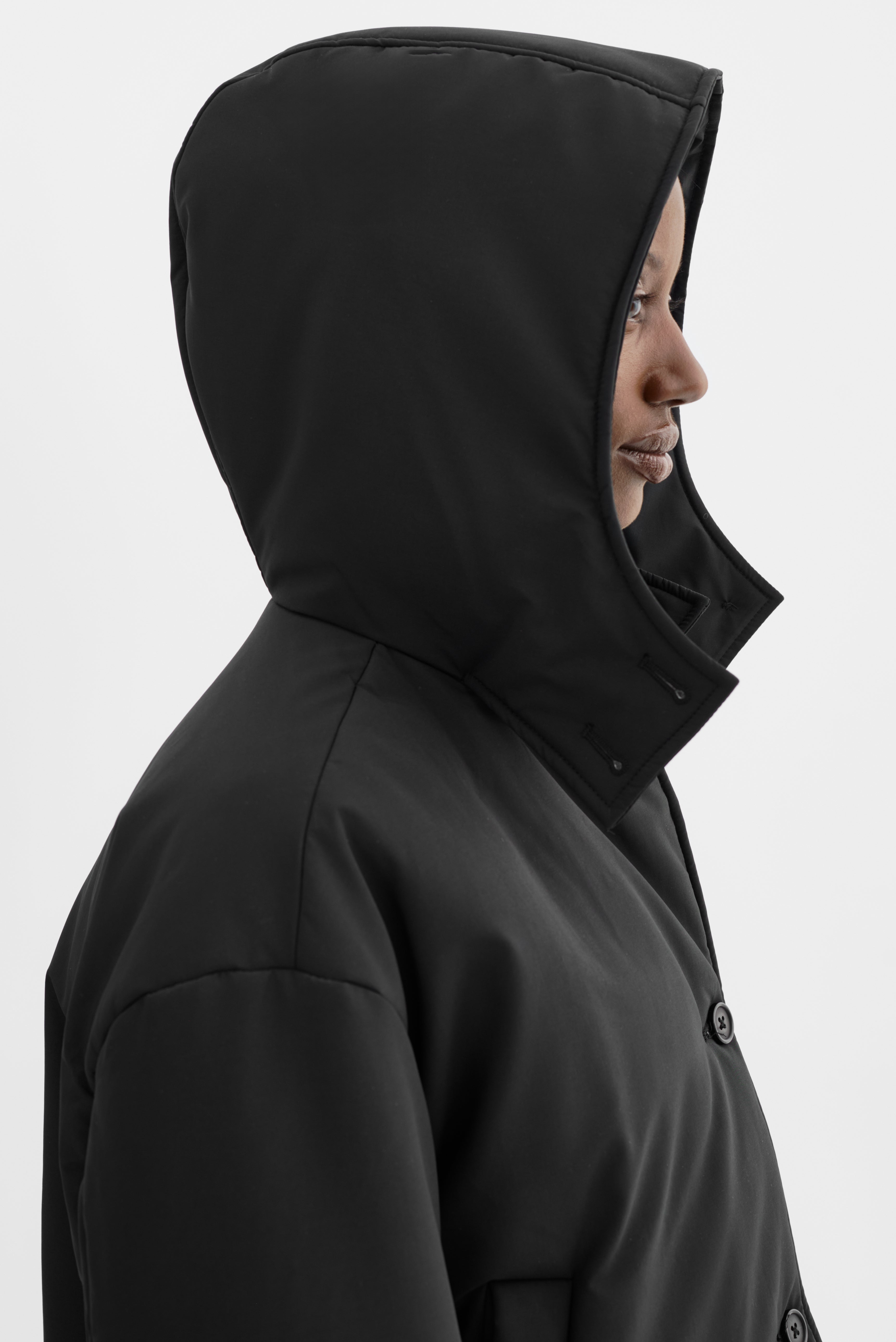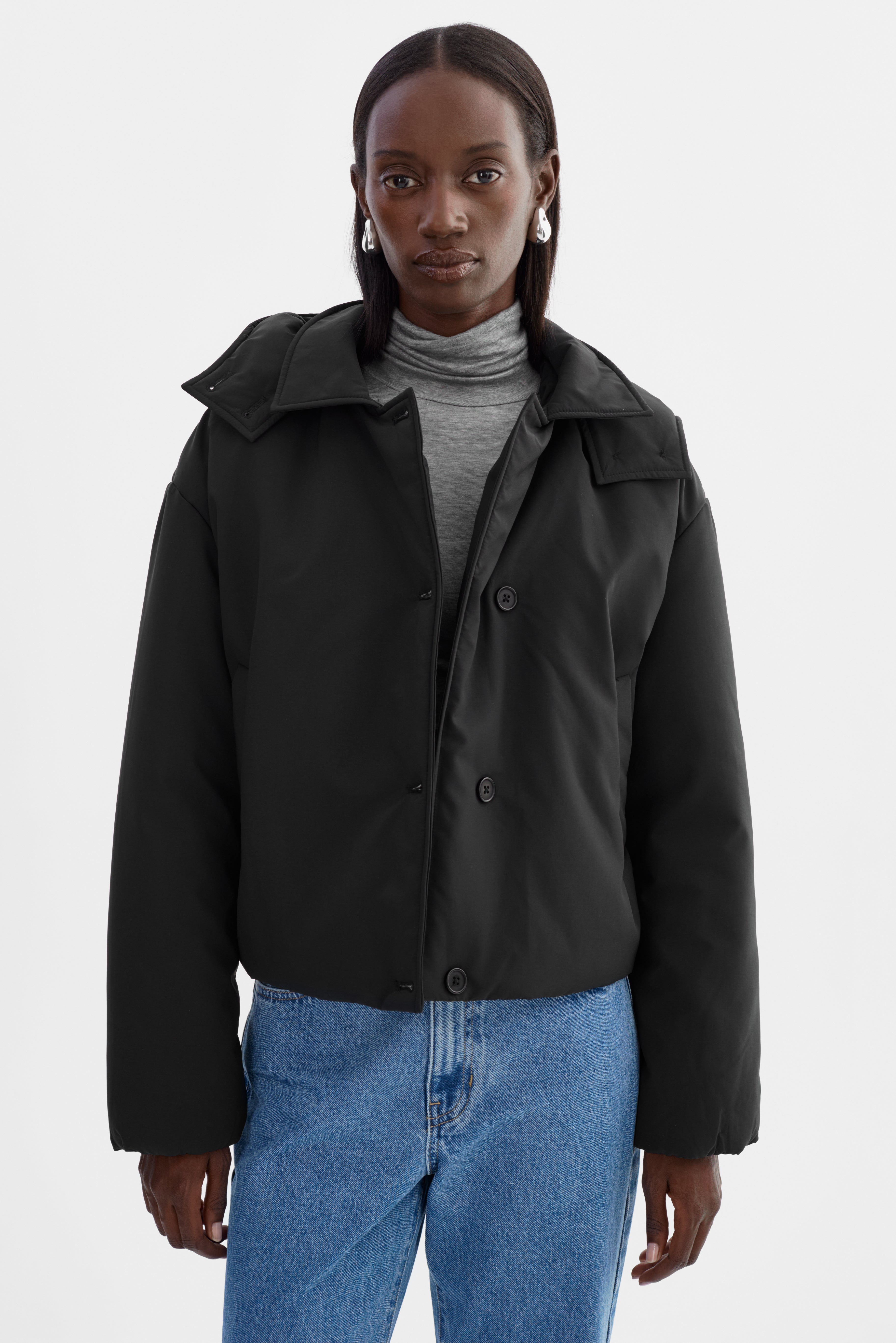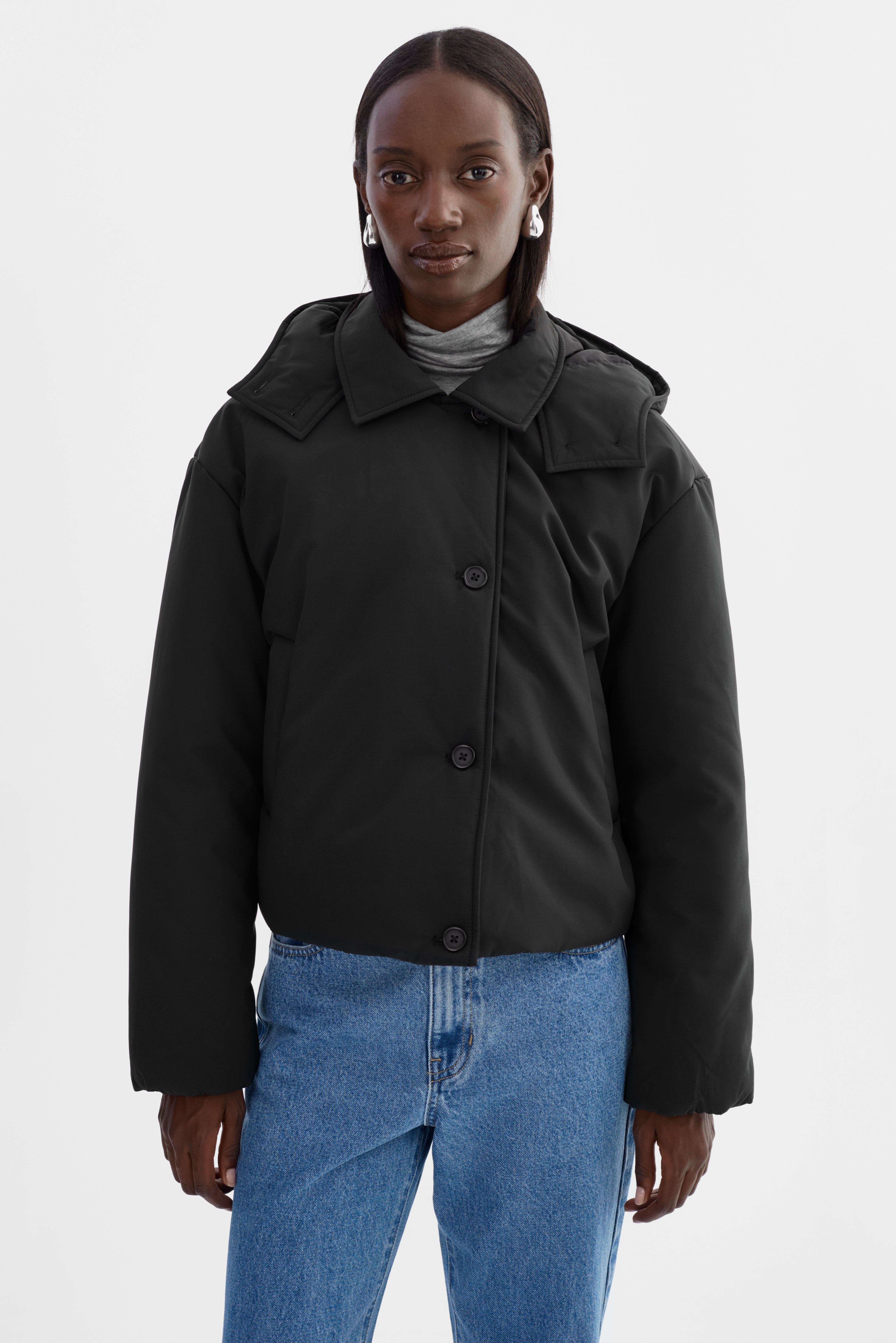 The LOZ Padded Jacket blends warmth and clean design. Featuring a soft padded shell, button-front closure, and a detachable hood, it's built for everyday comfort with a streamlined finish. A modern essential for cold-weather dressing with understated edge.