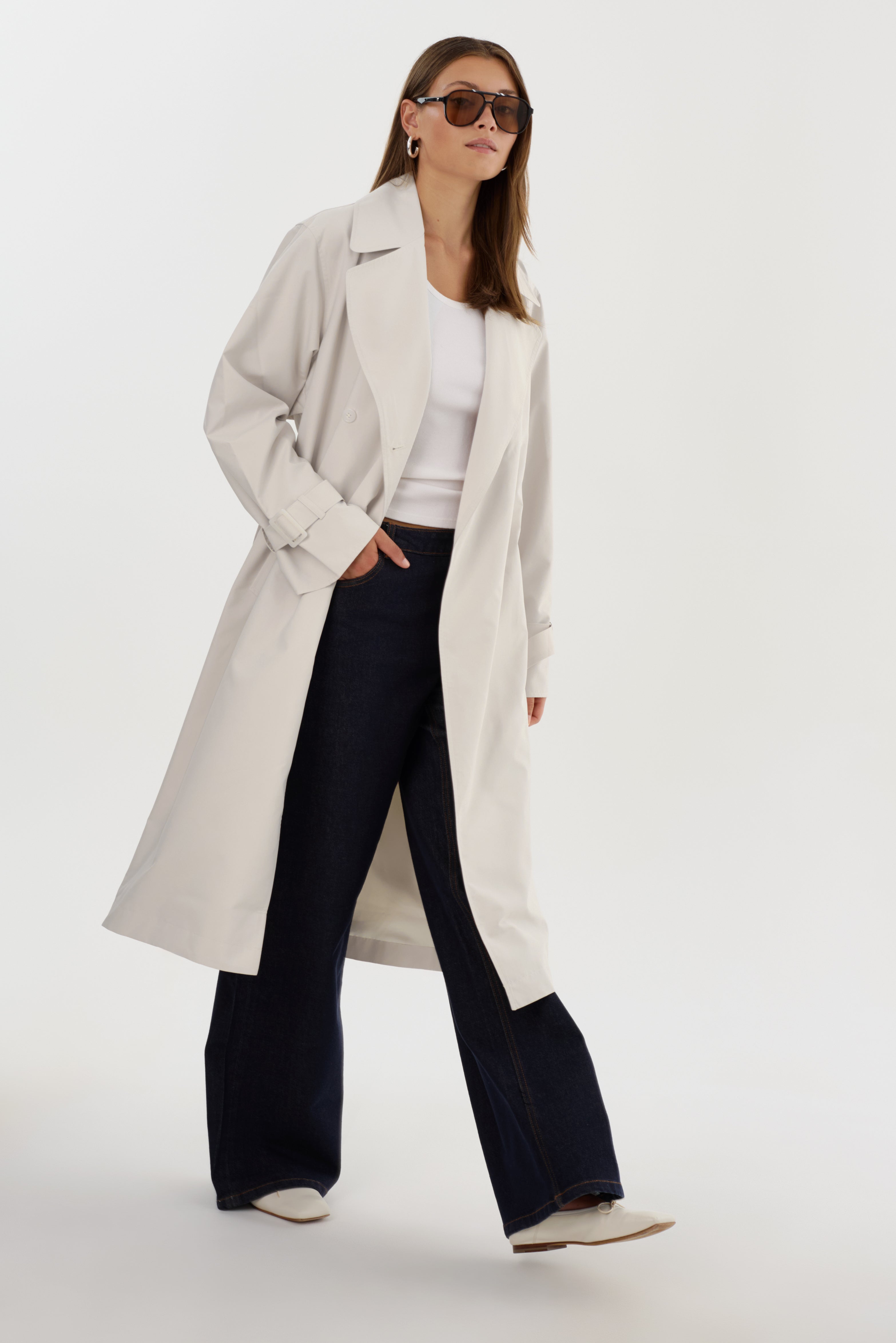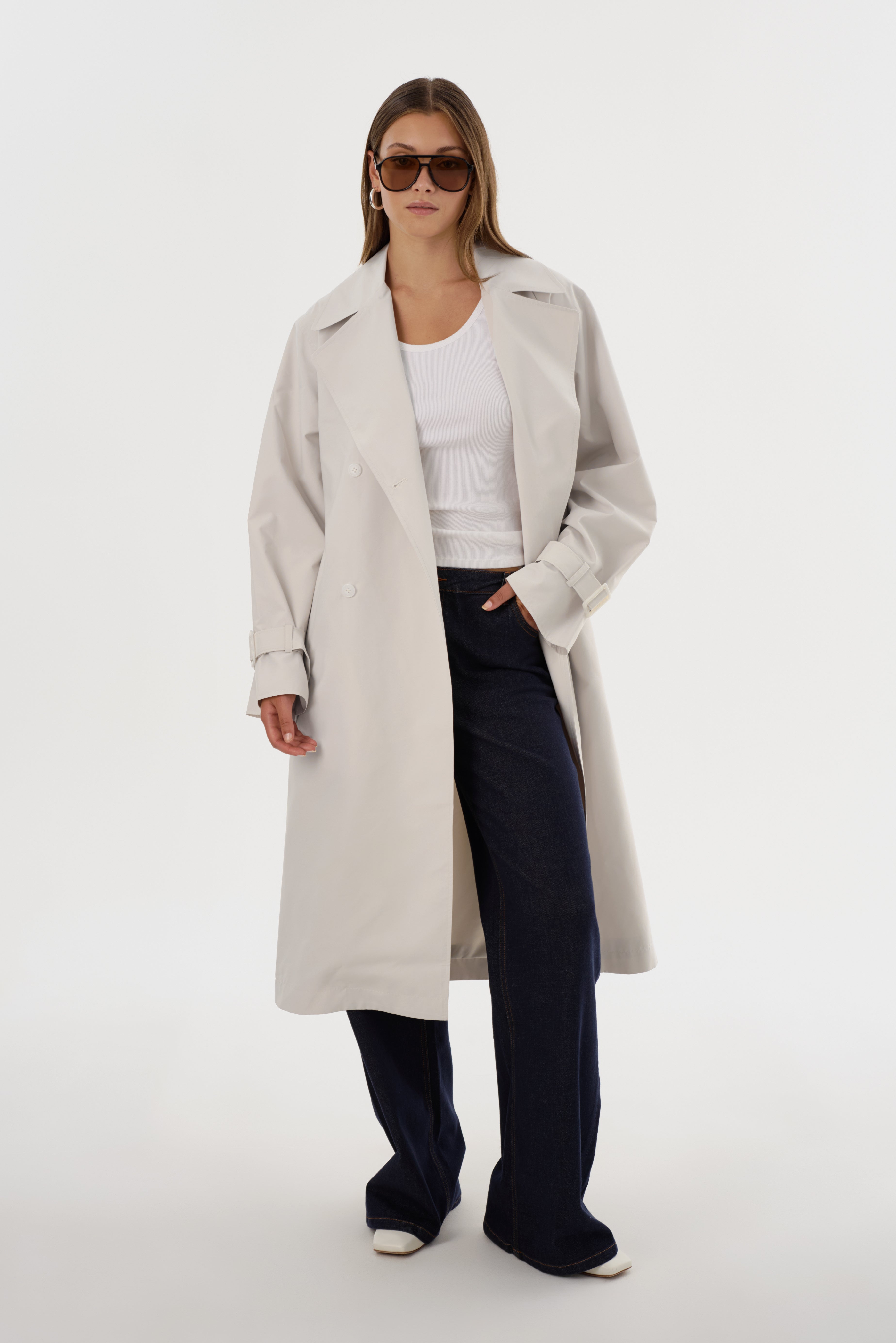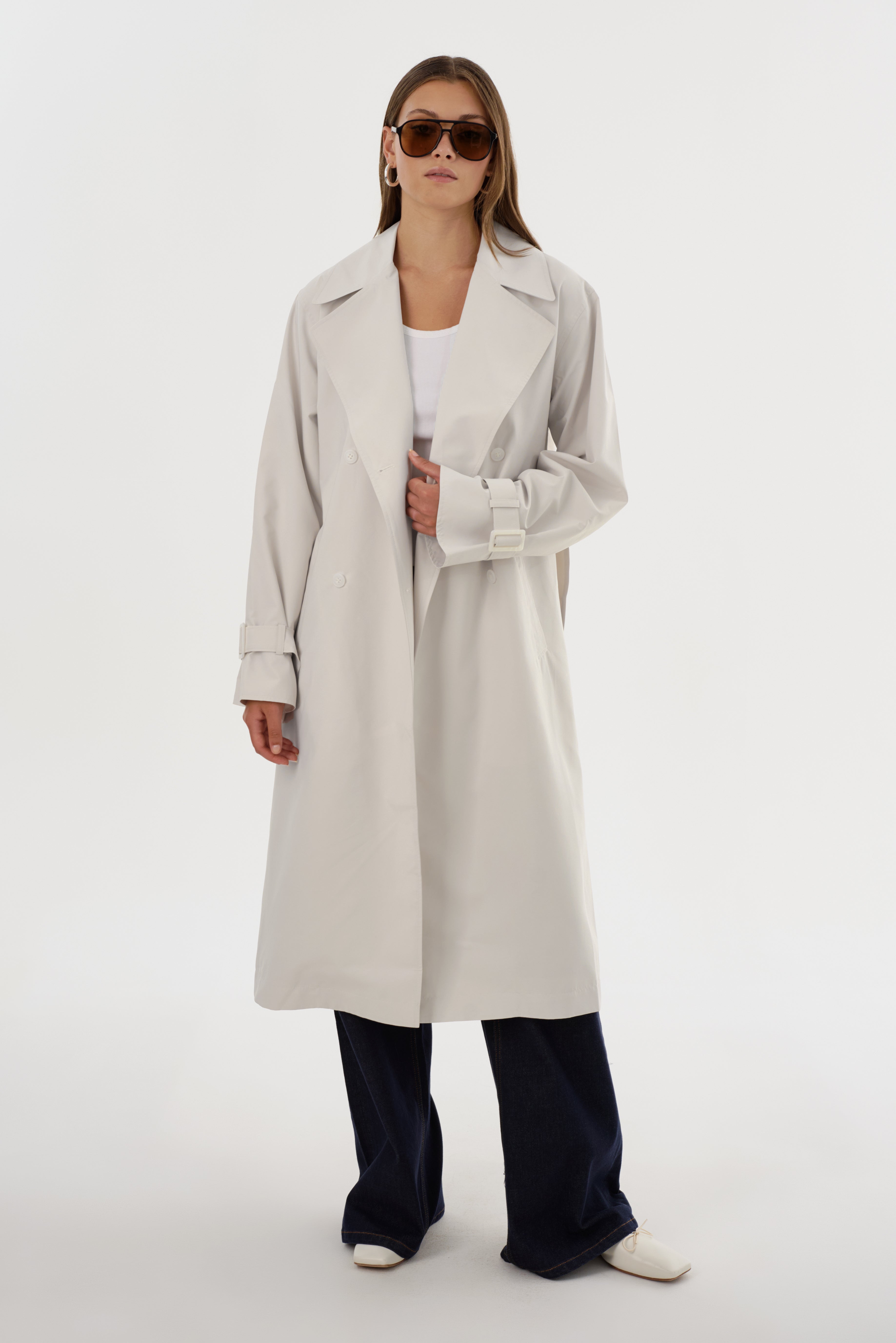 The COLETTE Trench Coat combines timeless trench design with a contemporary edge. Featuring a double-breasted button closure, self waist tie, and wide sleeves with buckle detailing, it offers a relaxed yet refined silhouette. A perfect transitional piece, it effortlessly layers over any outfit for an elevated touch.
