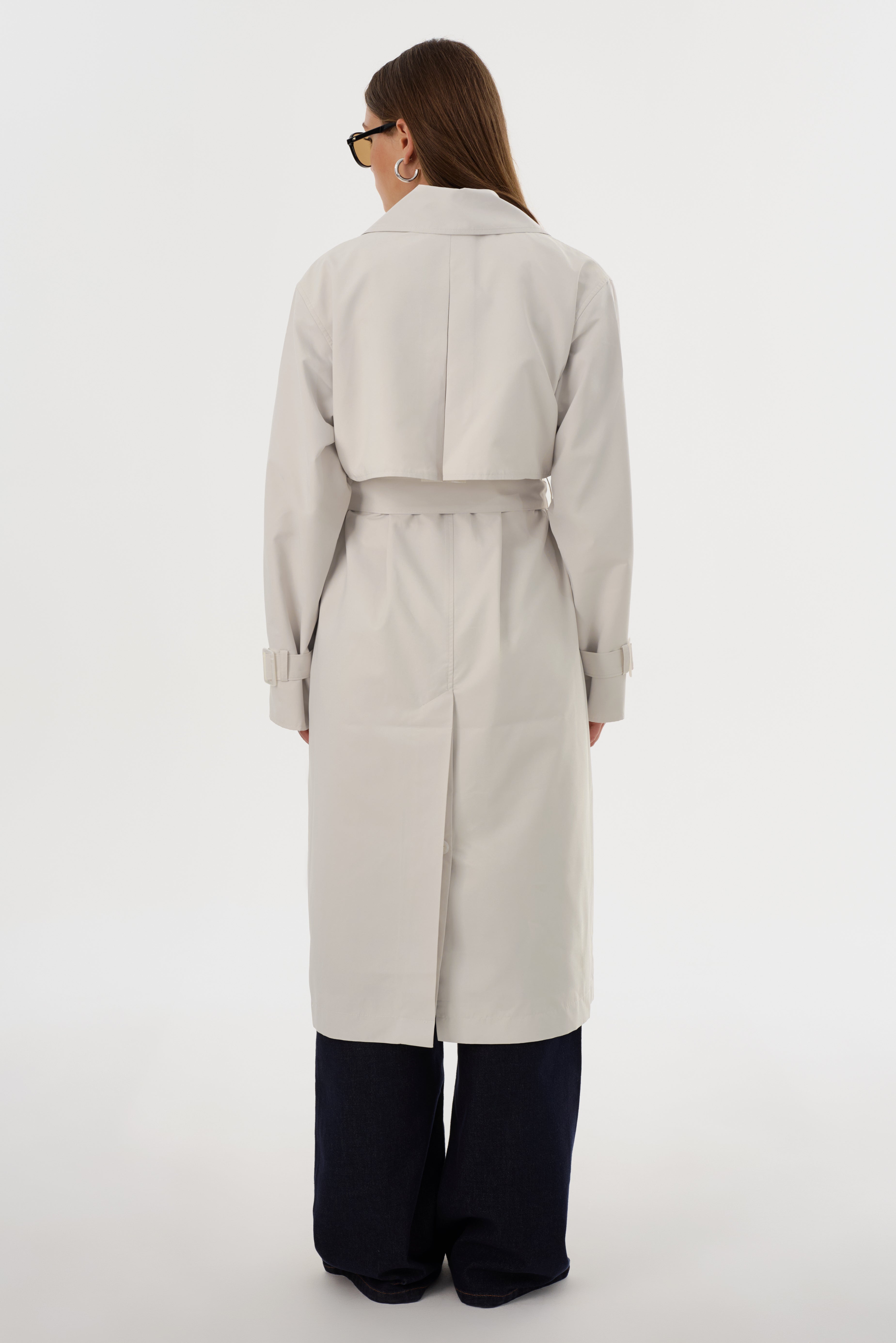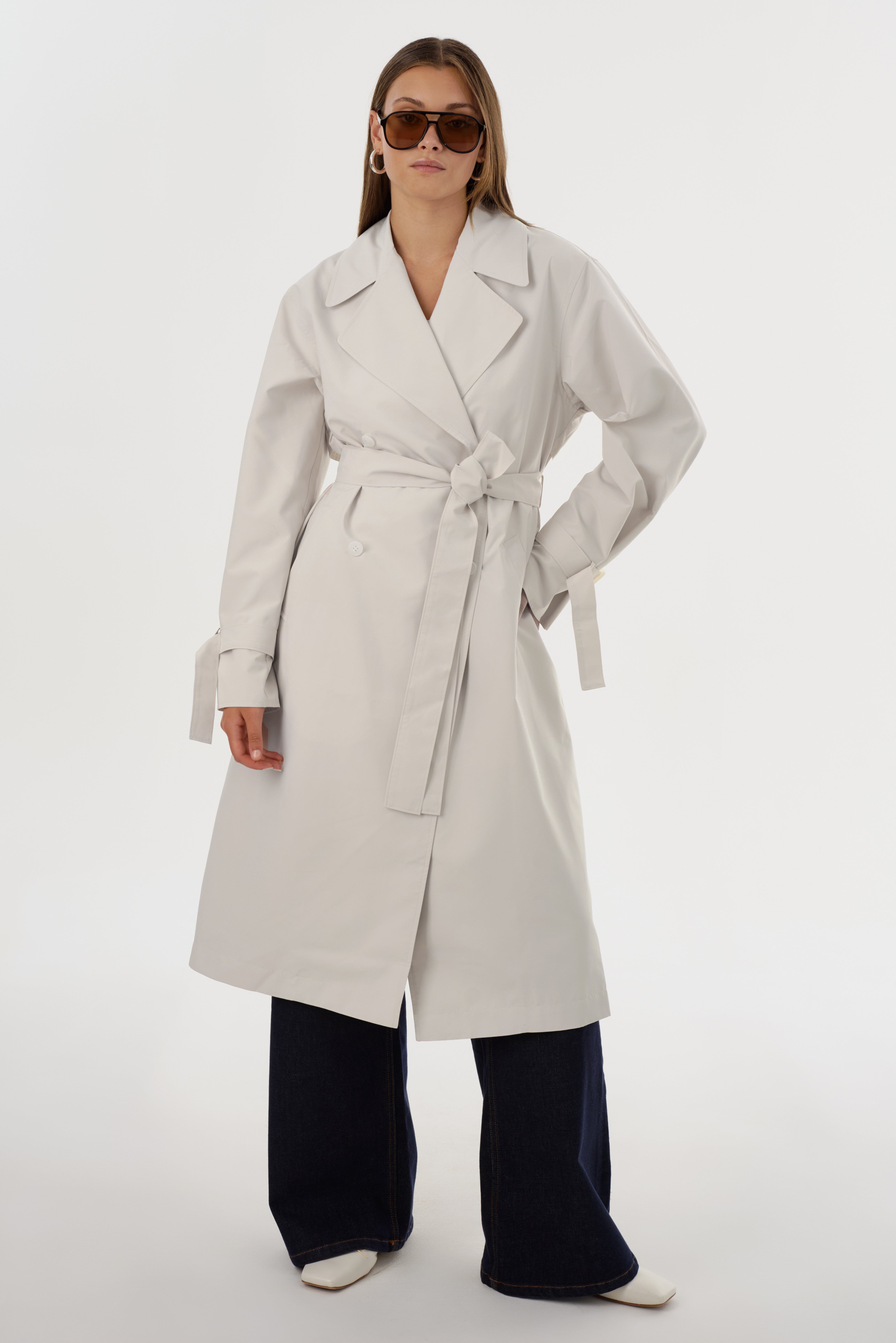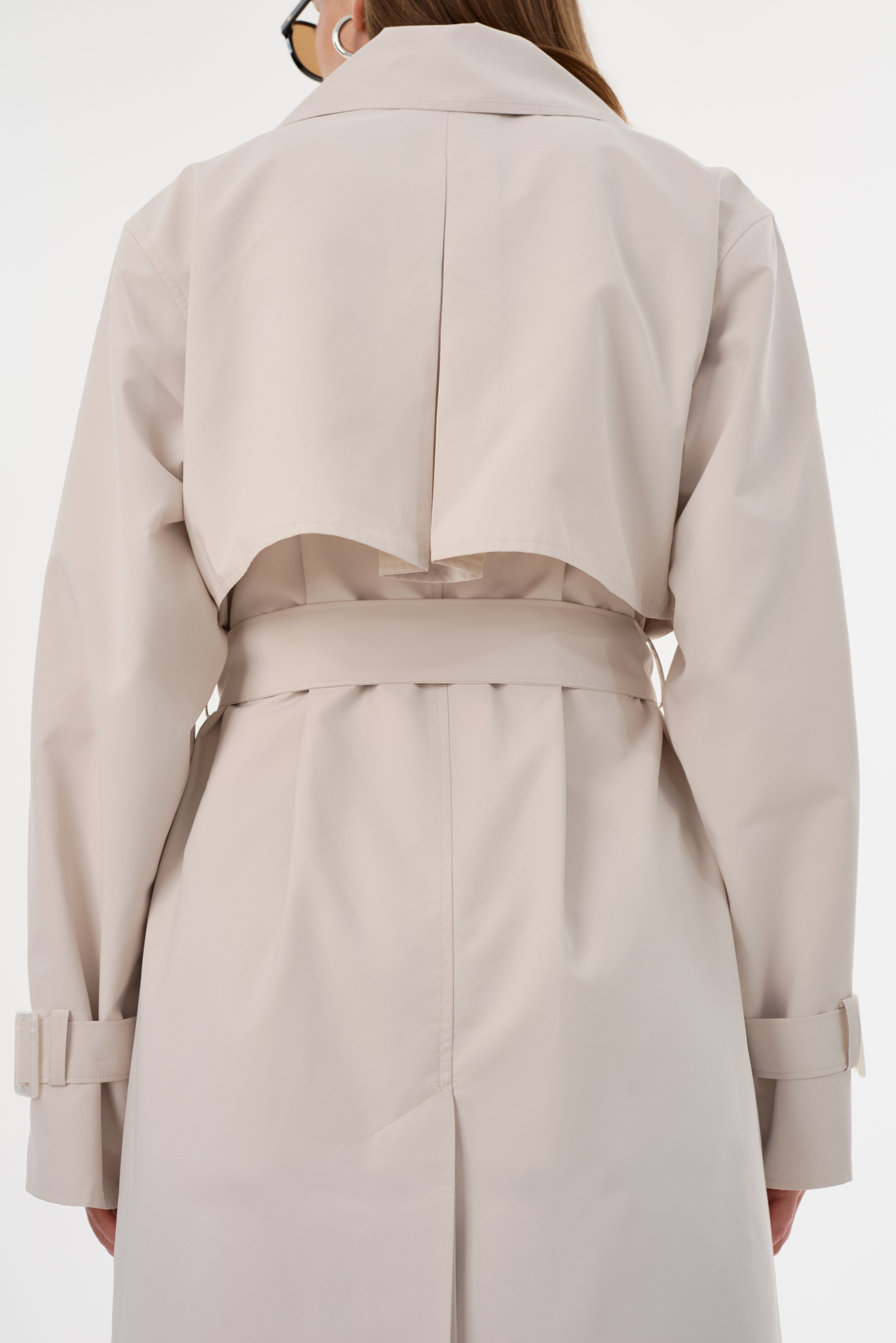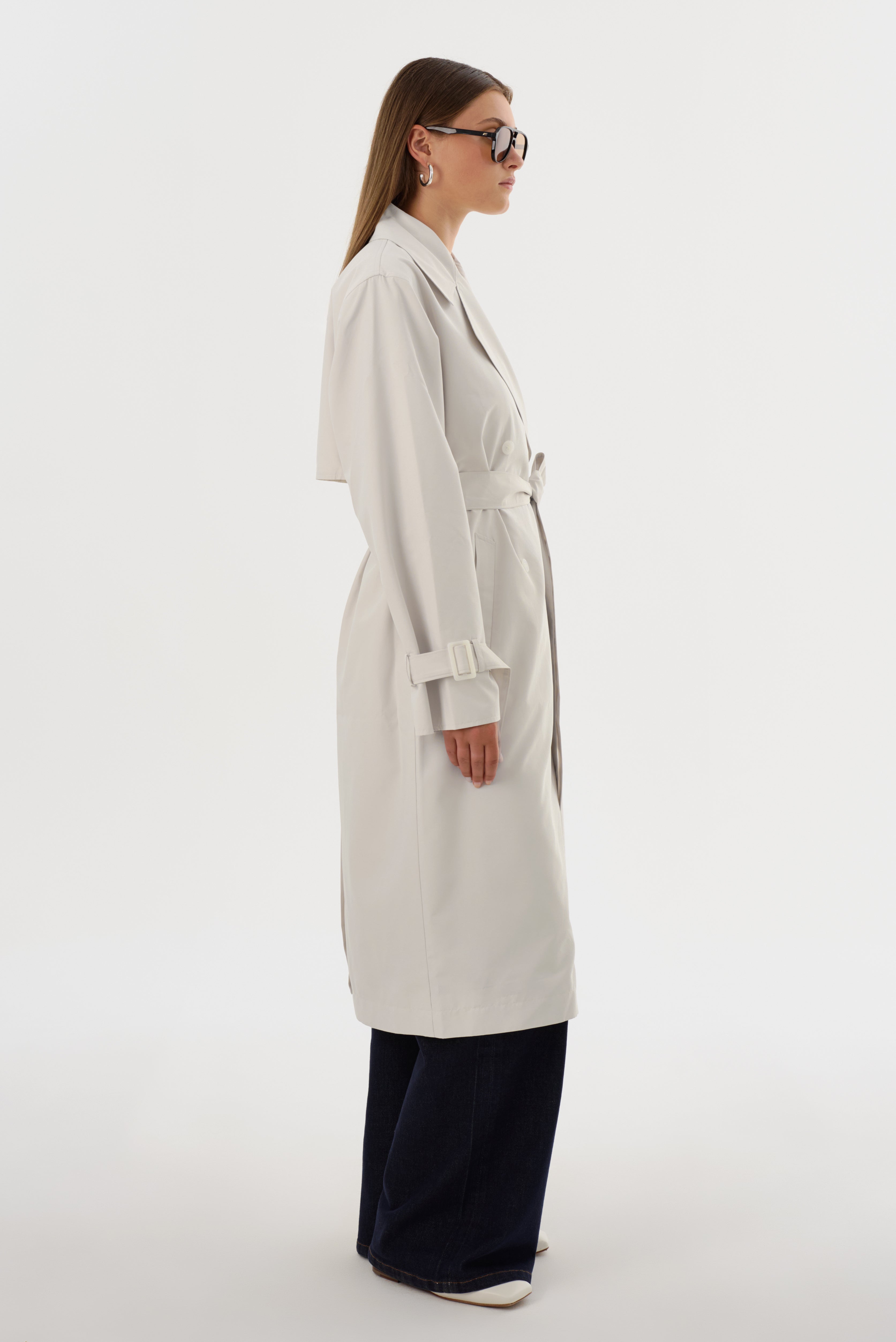 The COLETTE Trench Coat combines timeless trench design with a contemporary edge. Featuring a double-breasted button closure, self waist tie, and wide sleeves with buckle detailing, it offers a relaxed yet refined silhouette. A perfect transitional piece, it effortlessly layers over any outfit for an elevated touch.