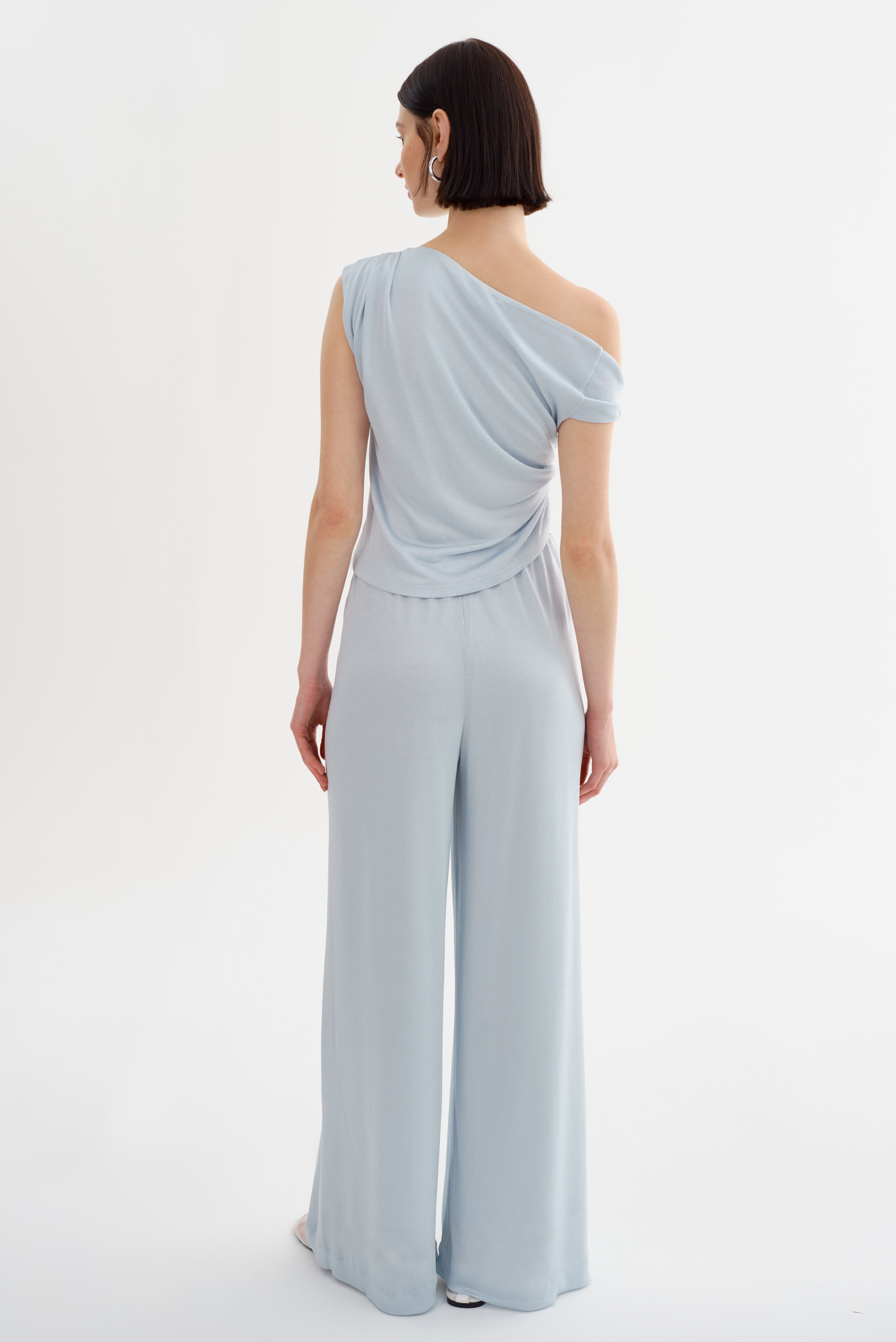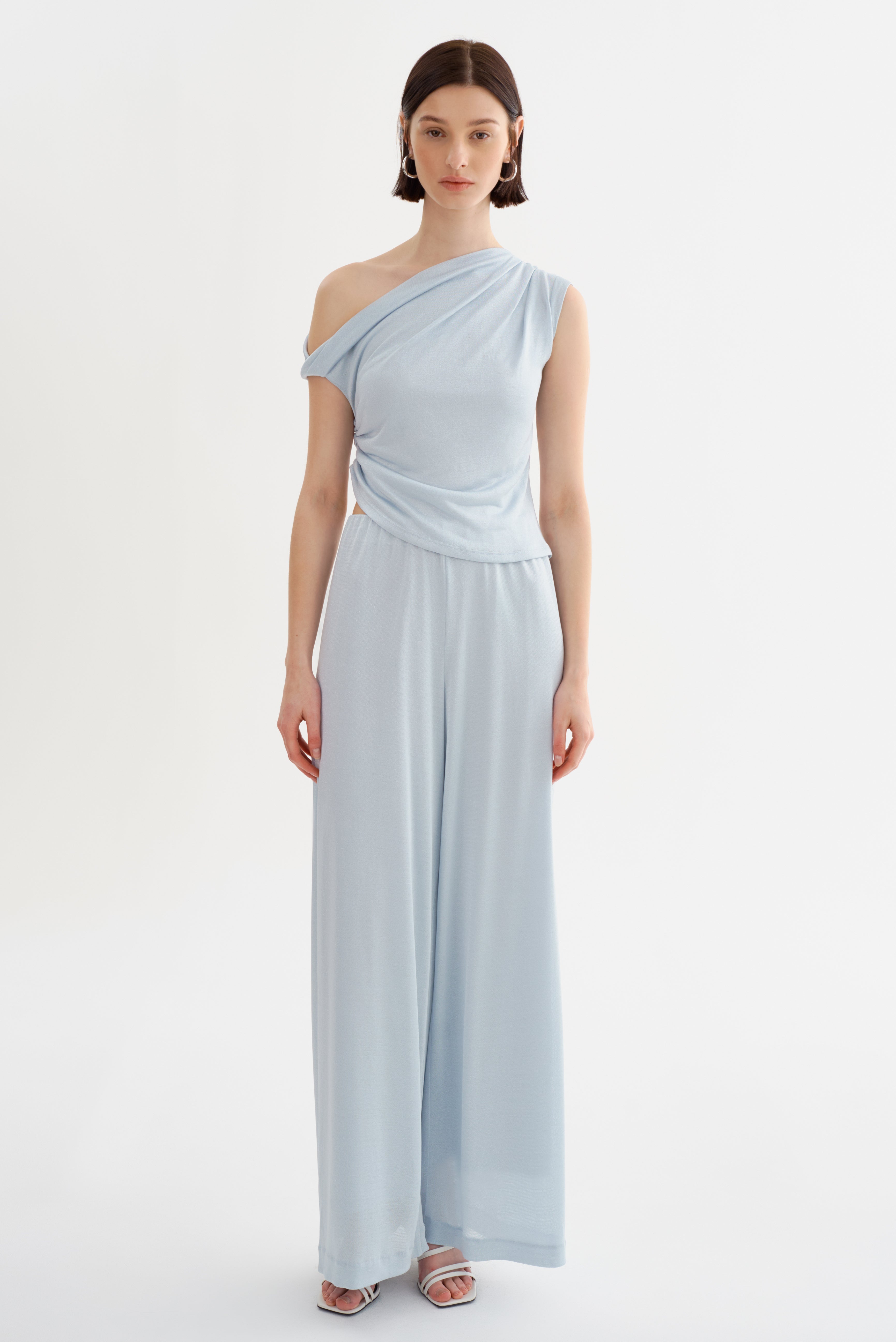 The NEELA Straight Leg Pant offers a streamlined take on relaxed tailoring. Designed in metallic knit fabric, this high-waisted, pull-on pant features a hidden elasticized waistband for a seamless look. The absence of side seams creates an ultra-smooth silhouette, while the fluid straight-leg fit makes it a versatile wardrobe essential.