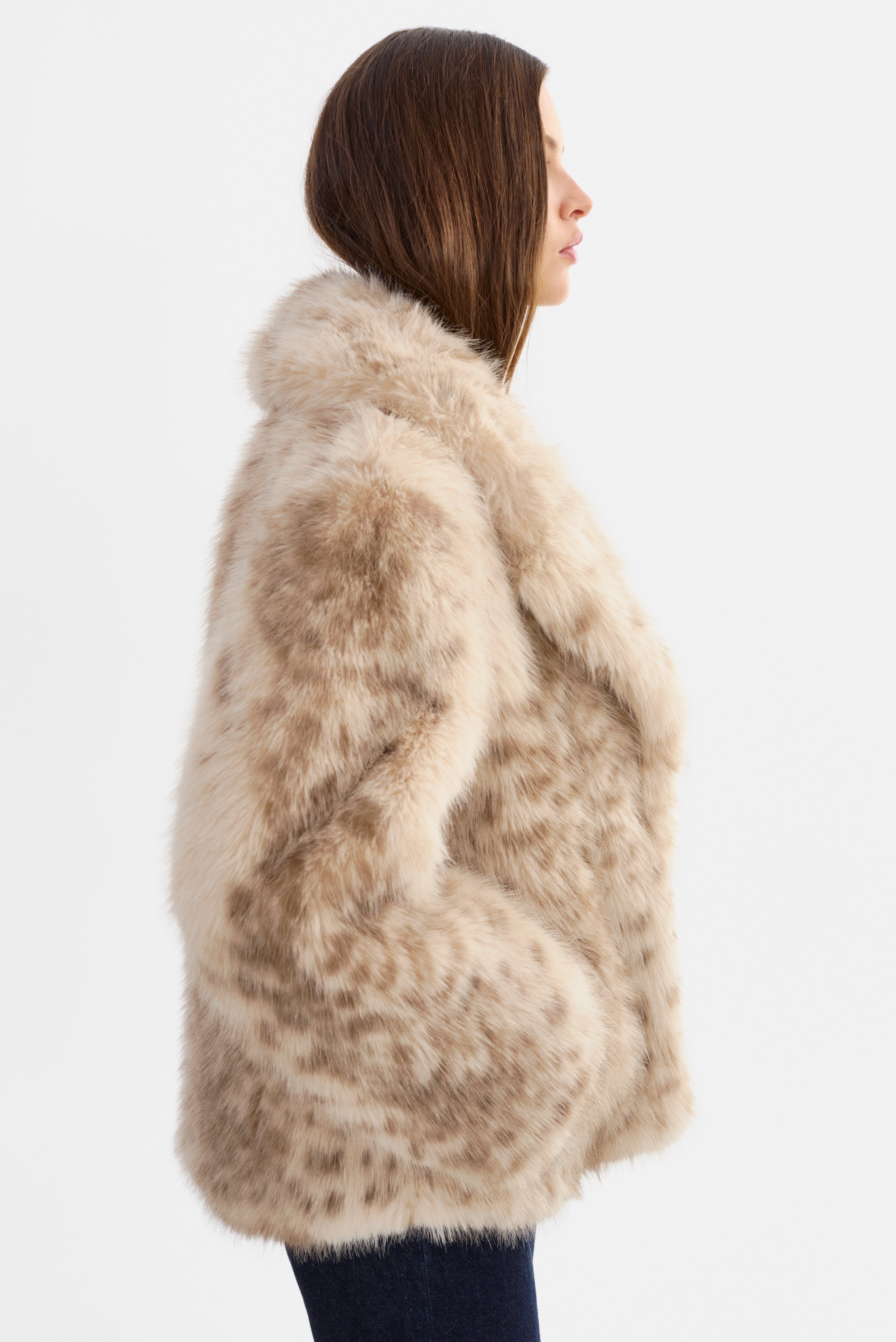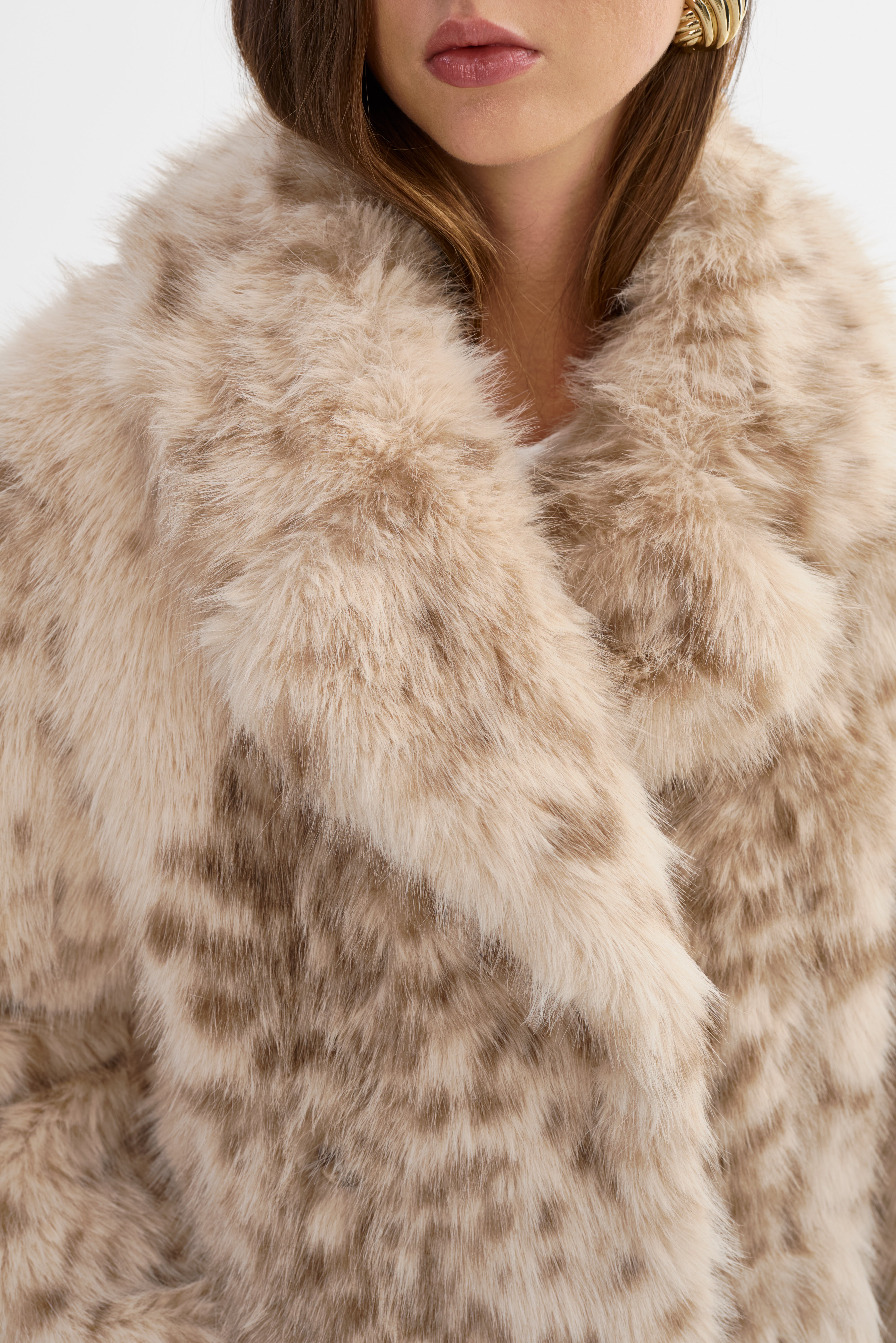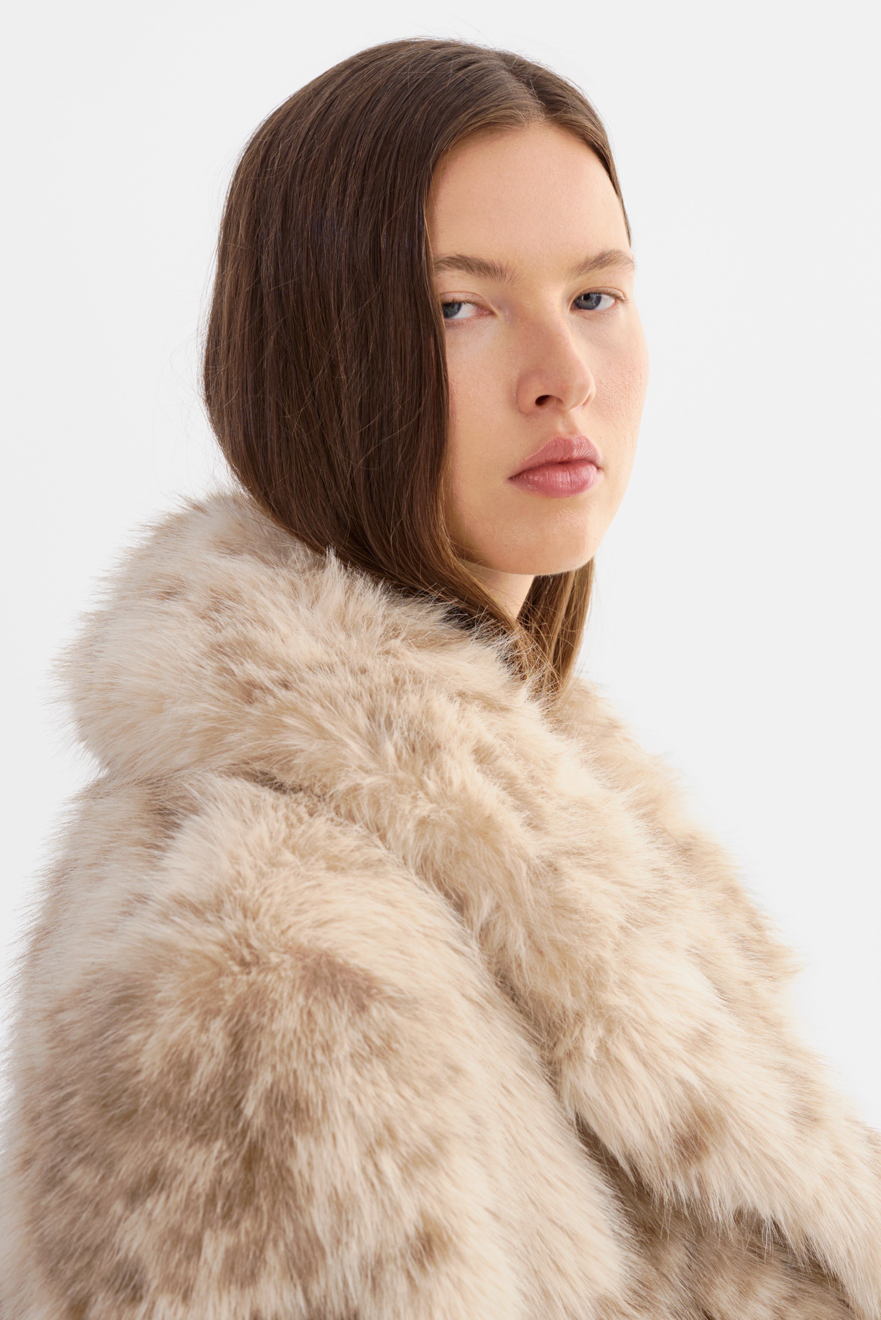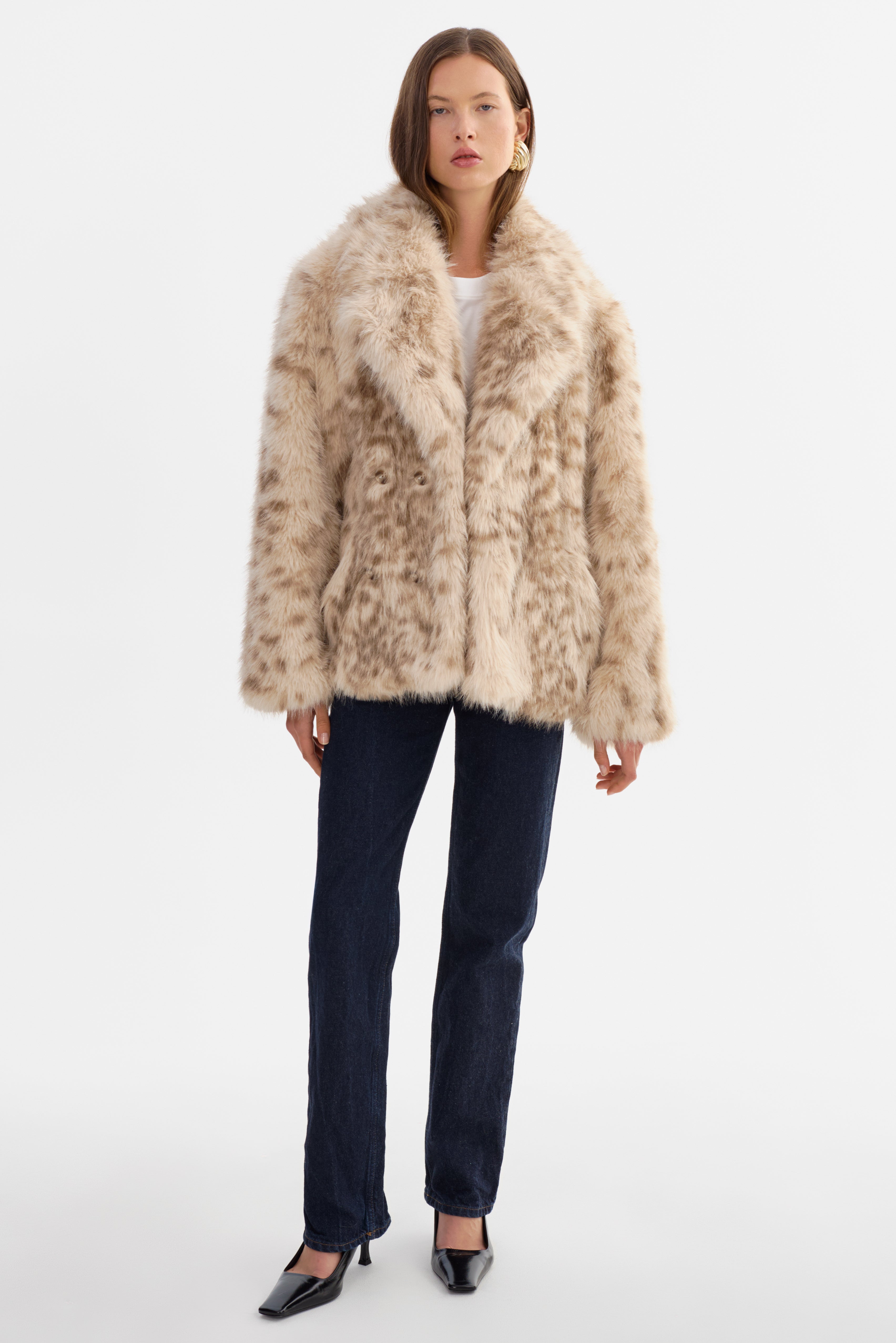 Refined and luxurious, the RAVENNA Faux Fur Coat is crafted from soft faux fur in a clean, tailored silhouette. Featuring a notched collar, hidden front closure, and structured fit, it's designed to elevate any look with quiet sophistication and timeless texture.