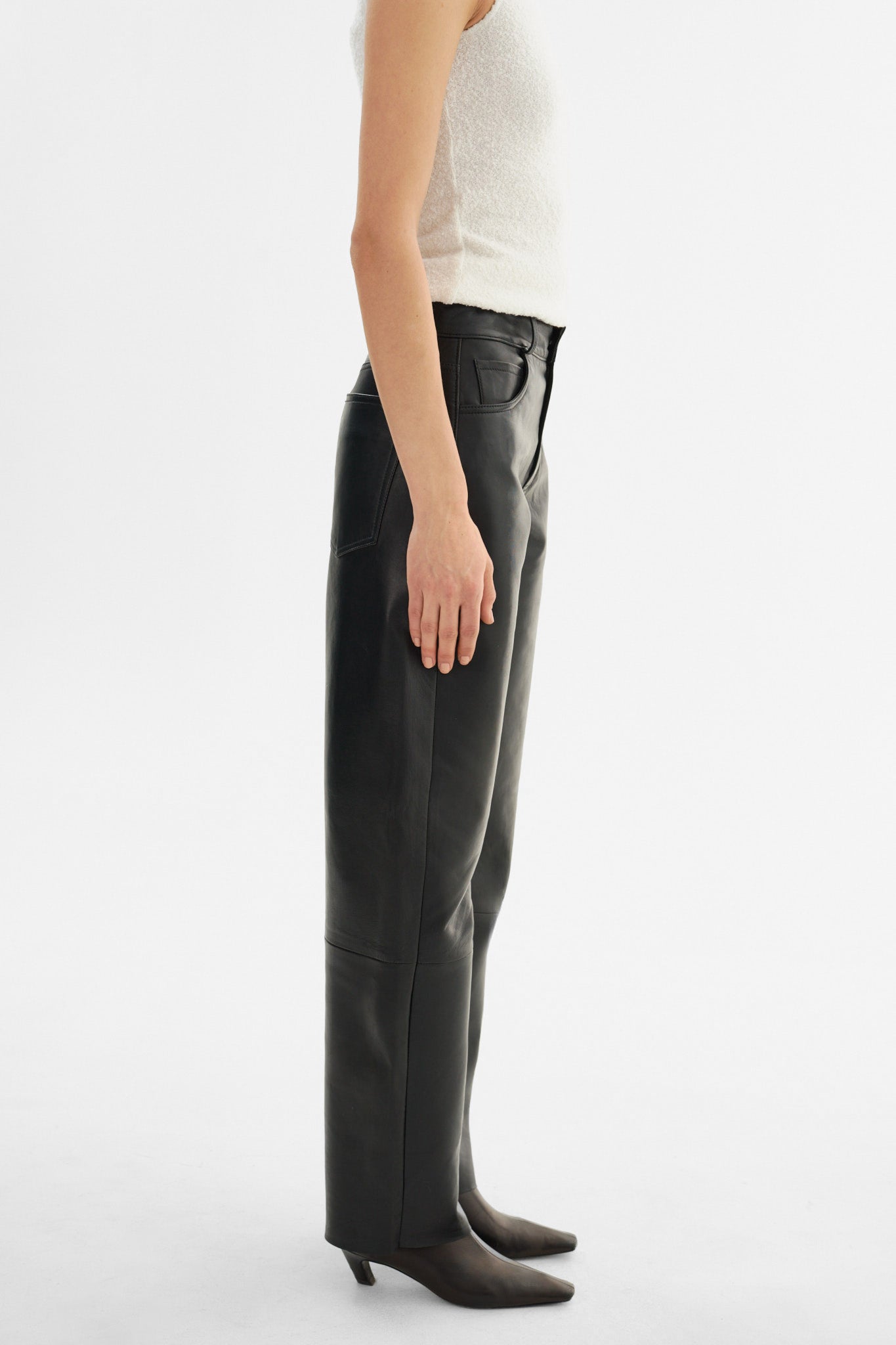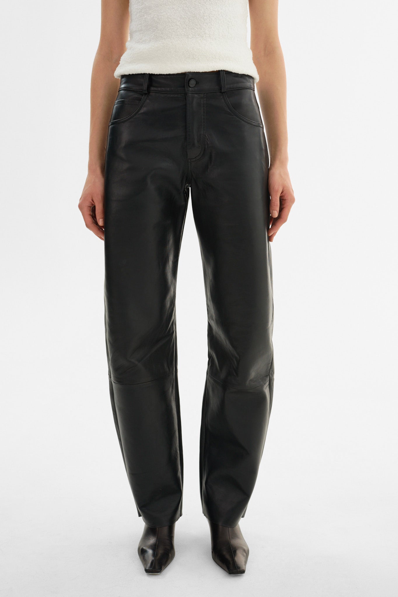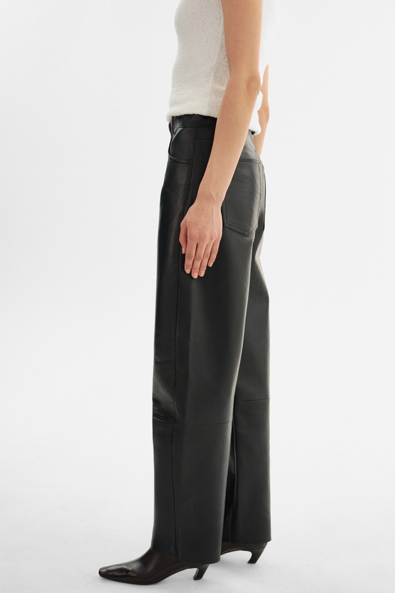 The RIDA Horseshoe Leather Pants are the ultimate addition to any cool girl's wardrobe. Sitting comfortably at the natural waist, they are crafted from supple lamb leather and feature a horseshoe wide leg silhouette that is right on trend.