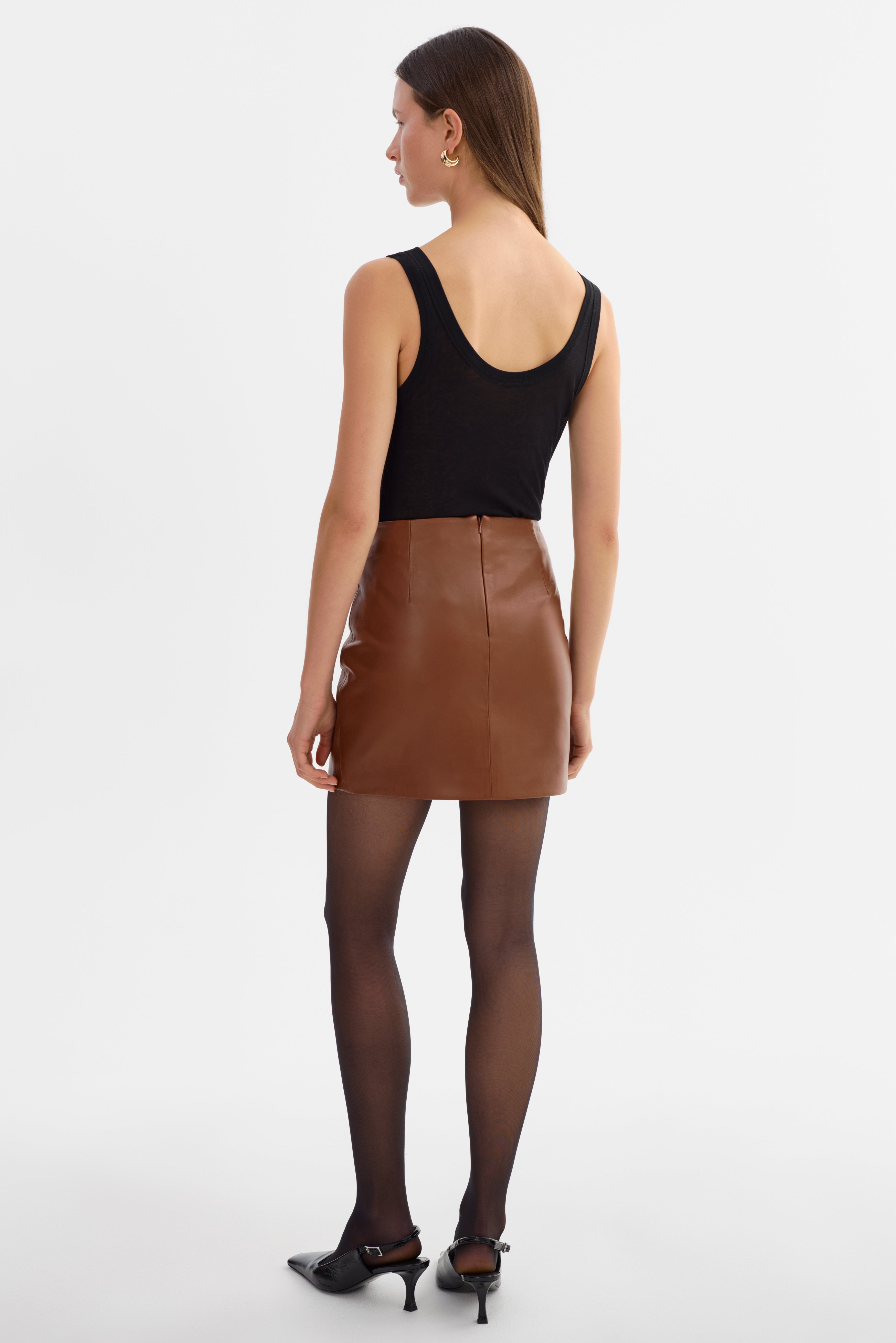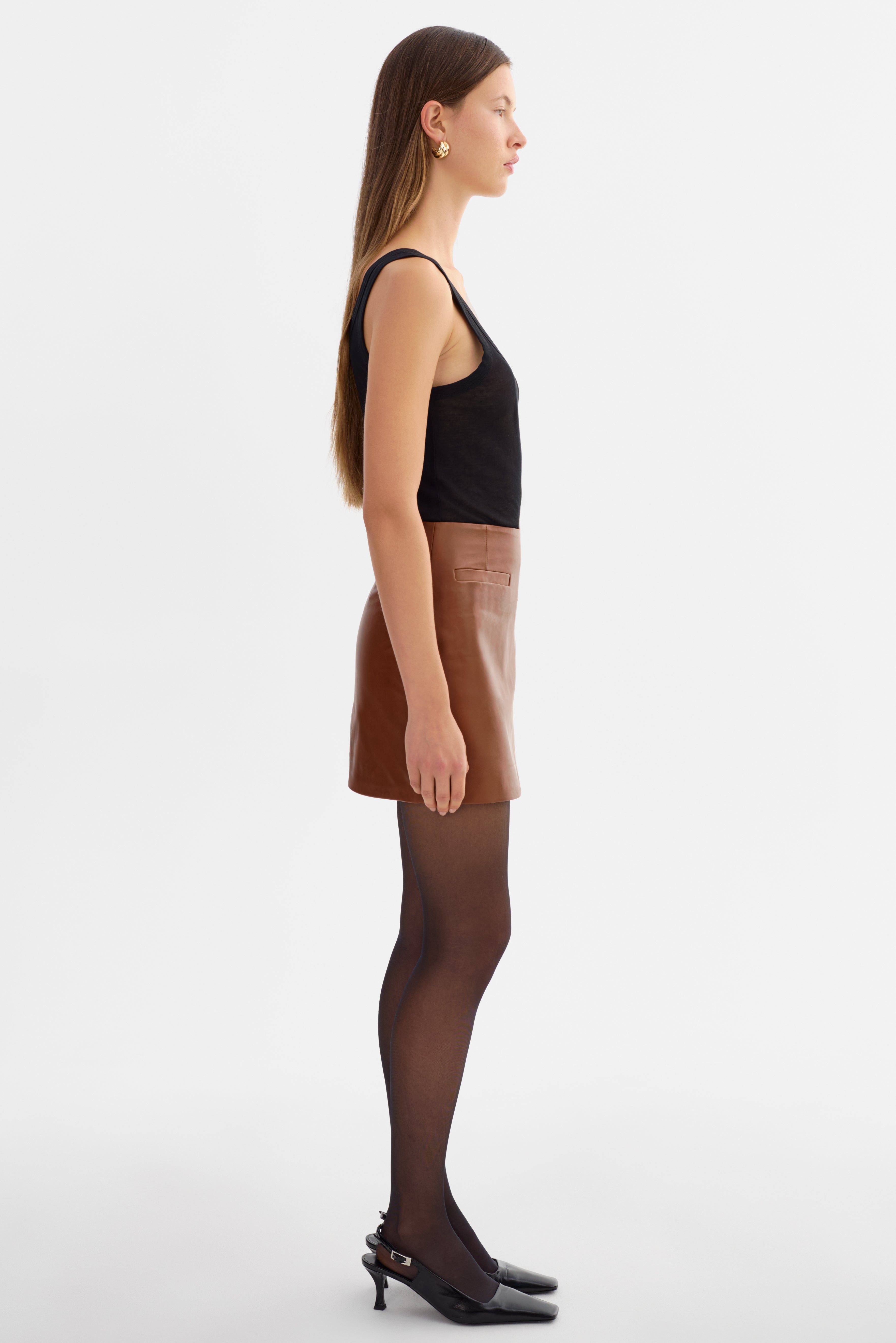 The ROWAN Leather Skirt is a versatile wardrobe staple, effortlessly transitioning from day to night. Made from premium lamb leather, it showcases a sleek design with front pockets and a flattering fit. Pair it with the matching LINETTE Leather Jacket for an elegant take on leather suiting.