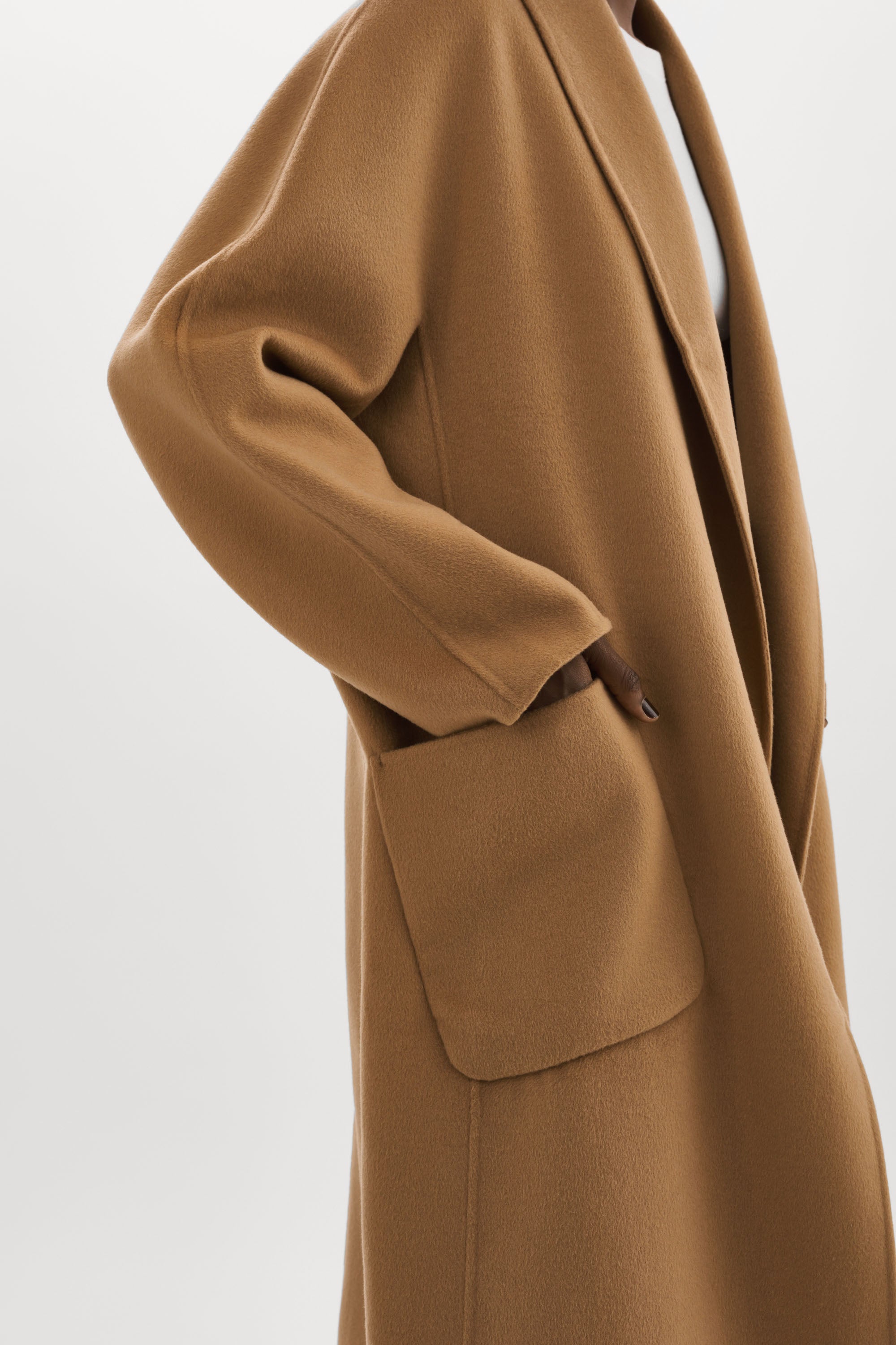 Embodying all that's classy, the THARA is a cold-weather stunner. With its drapey fit and oversized sleeves, this shawl collar wool coat pulls off a cozy-meets-sophisticated aesthetic with grace. Featuring patch pockets and double-faced wool, this top piece is both functional and warm.