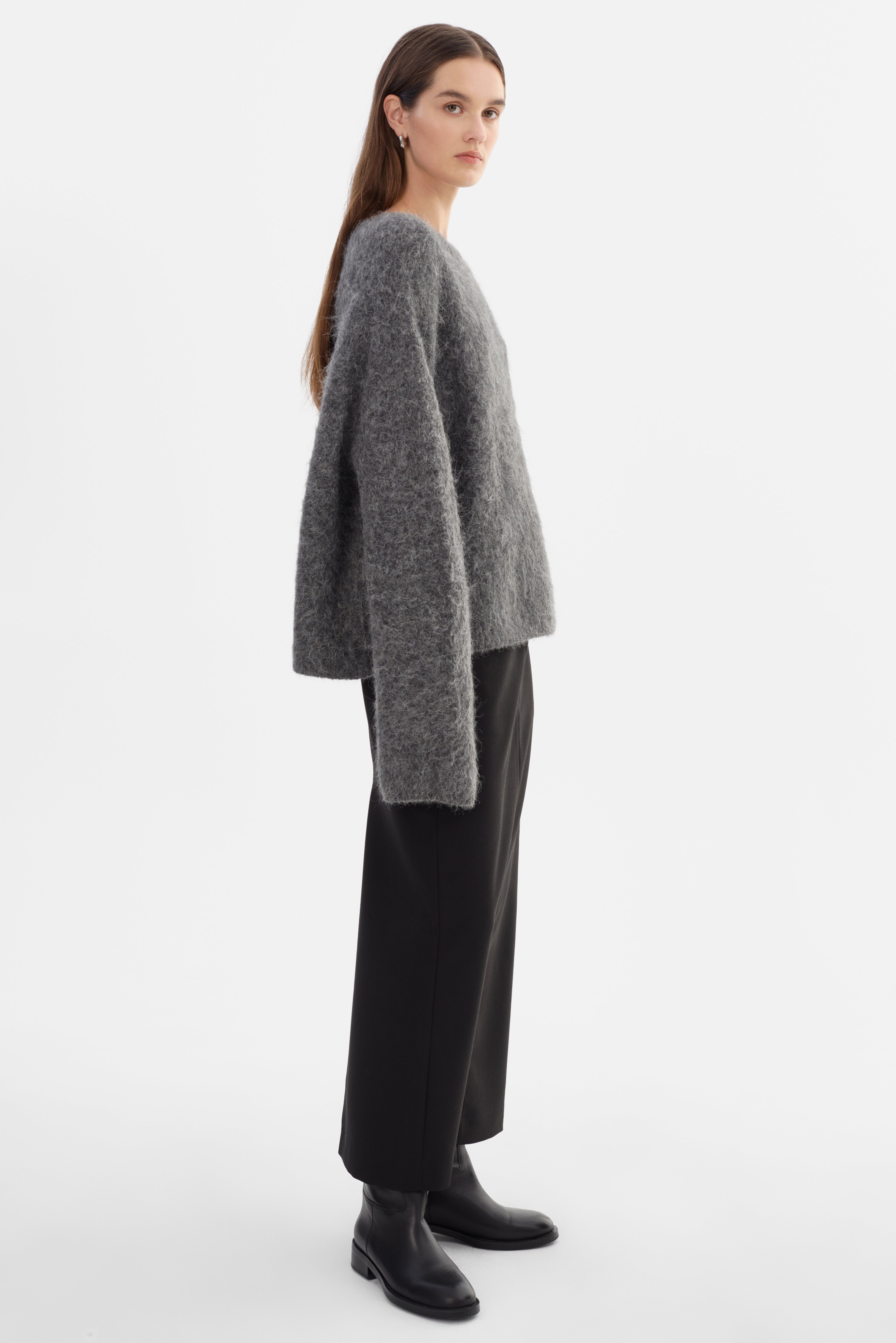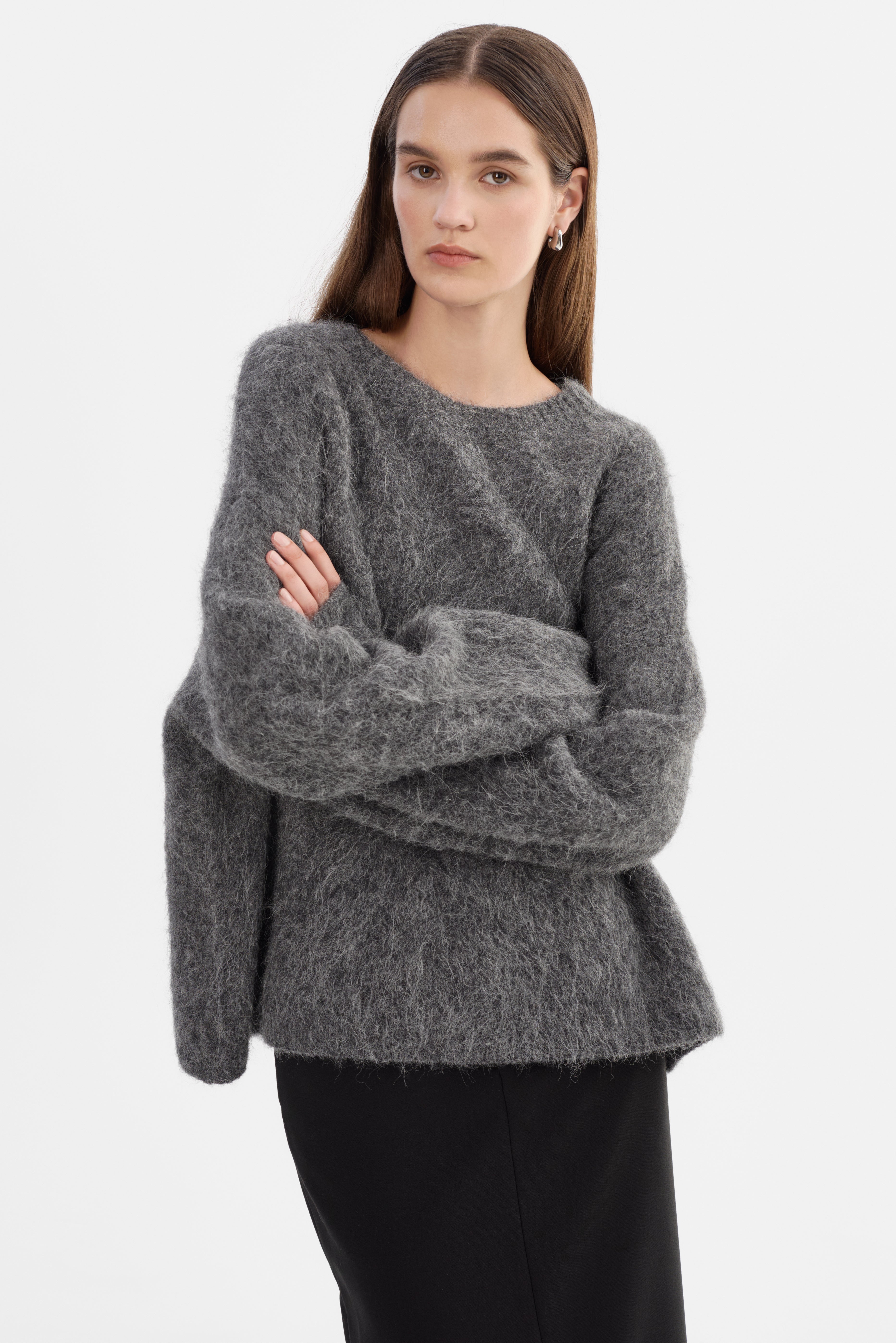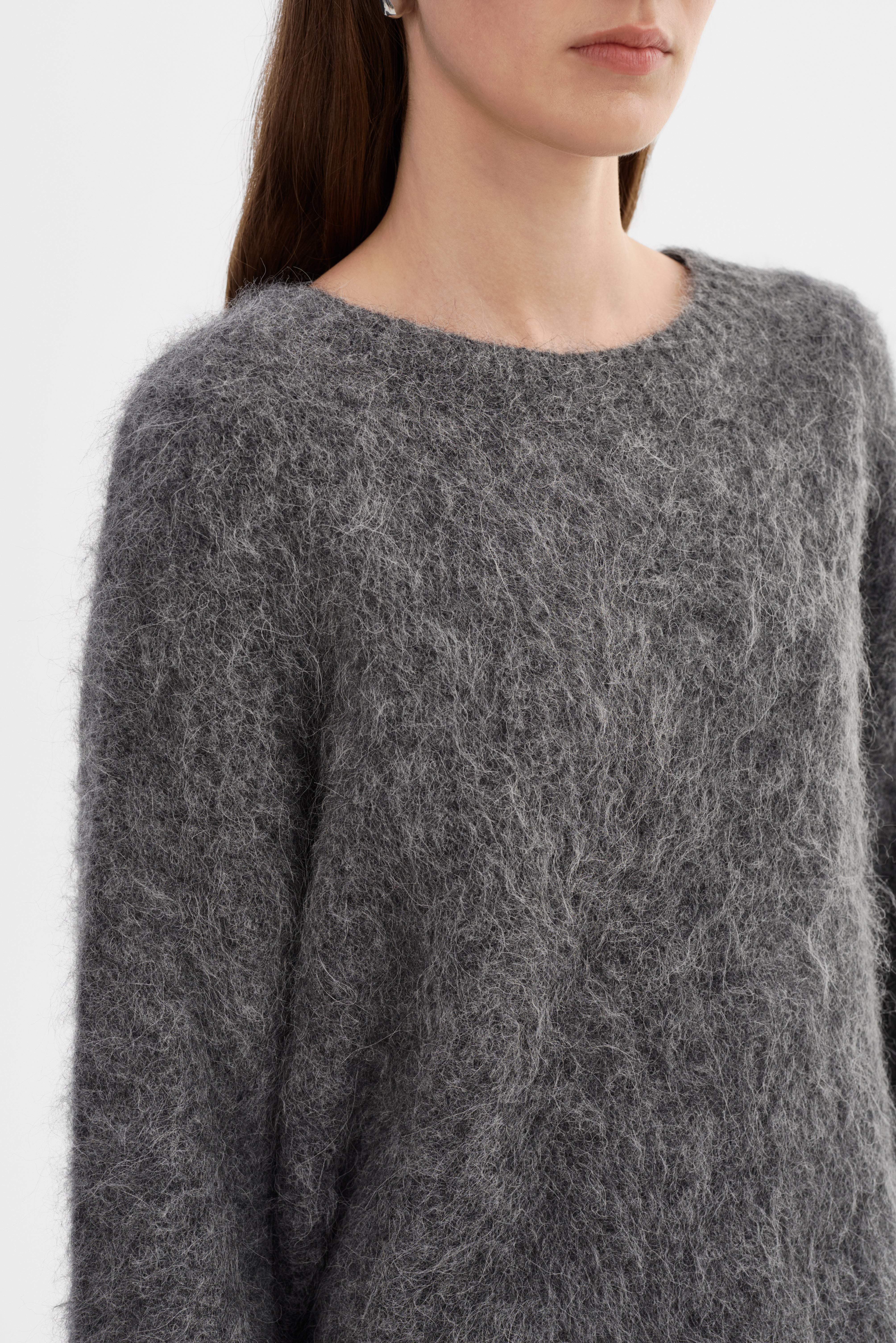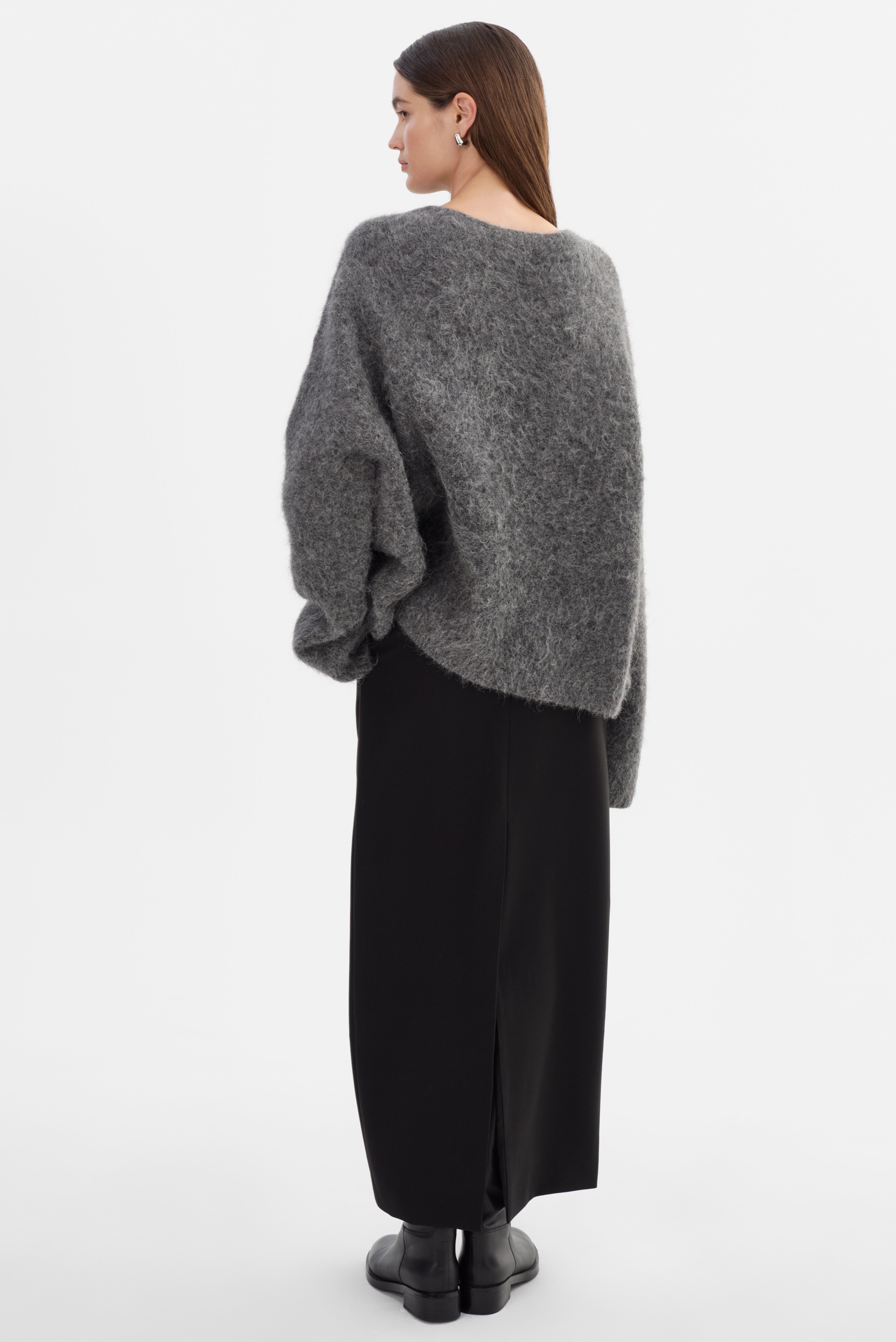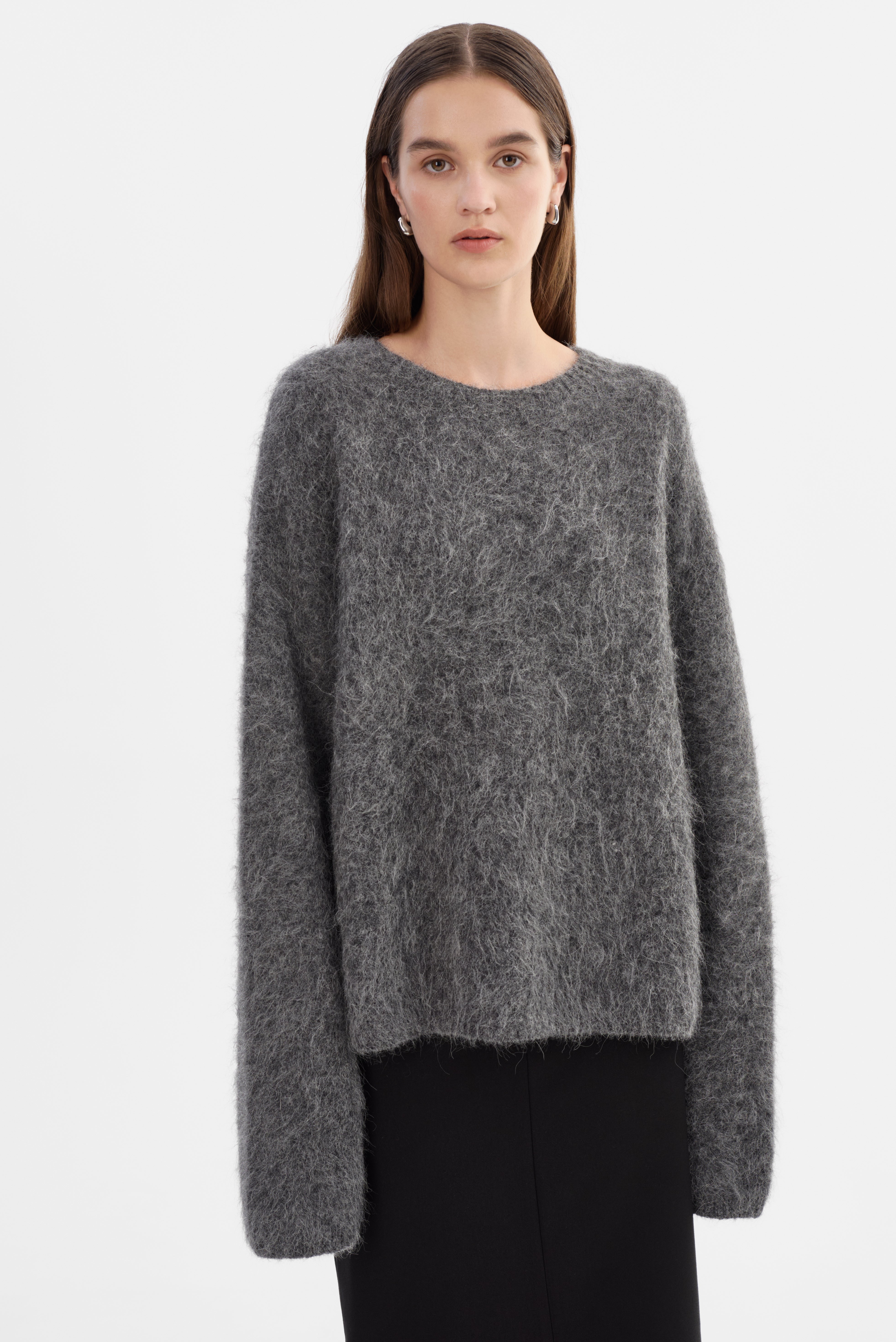 Softness you can feel. The VERA Oversized Knit Sweater is crafted from a brushed alpaca knit that offers a luxe, airy texture with a naturally relaxed drape. Featuring a classic crew neckline, elongated sleeves, and an easy fit, it's an elevated essential that pairs effortlessly with denim, leather, or tailored bottoms.