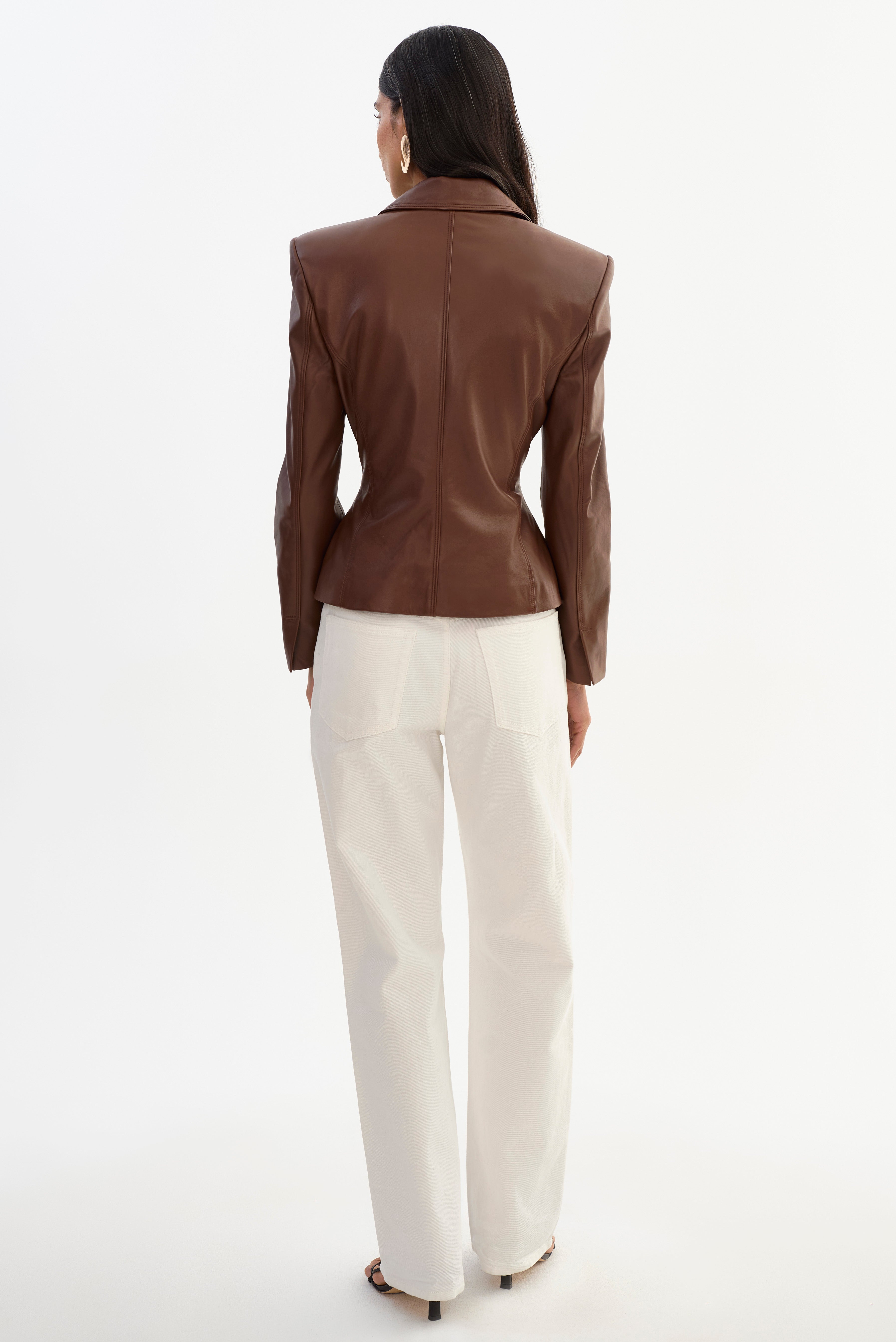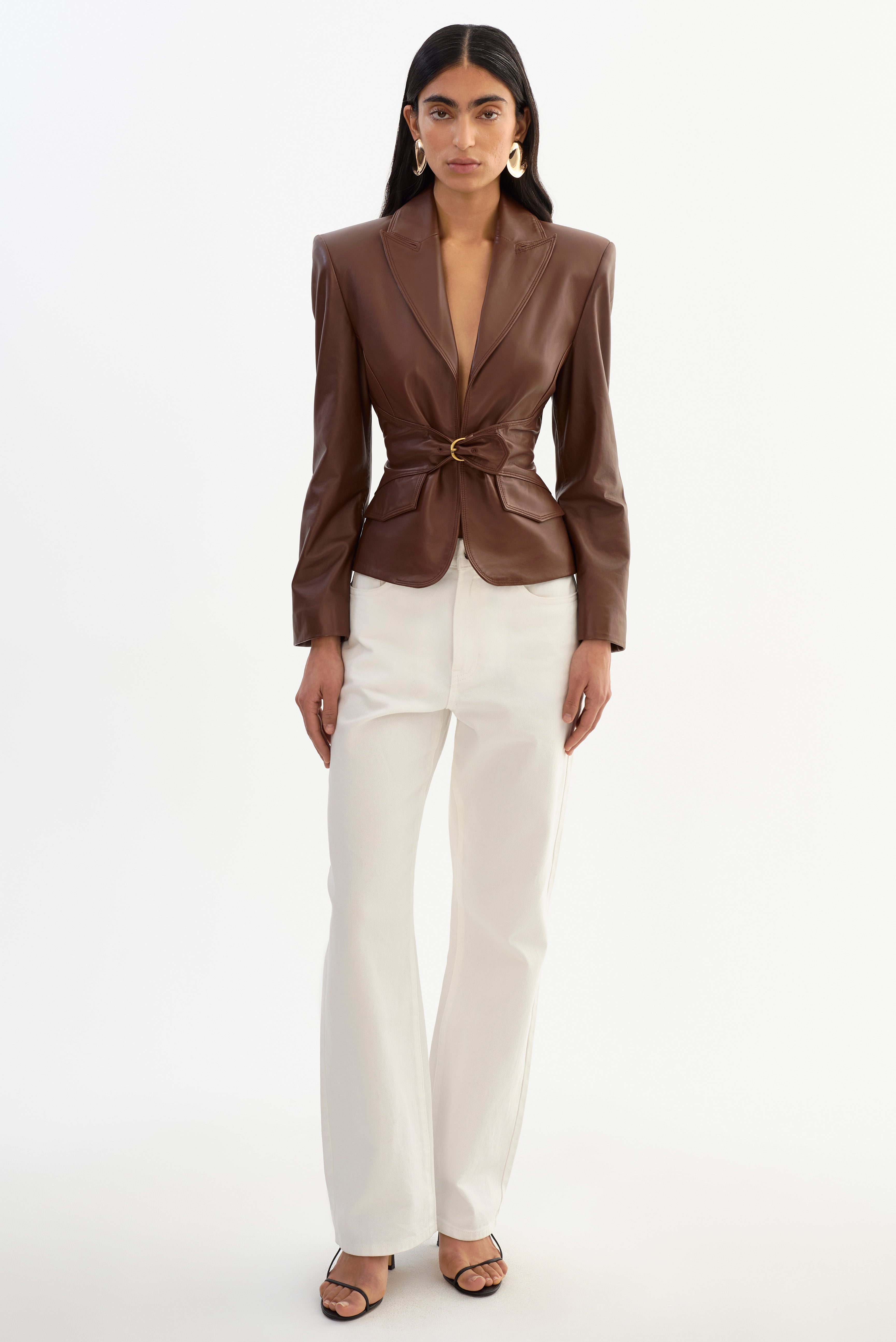 A polished take on modern tailoring. The WILEY Leather Belted Blazer features a softly defined waist that creates a flattering, feminine shape. Crafted from supple leather, it transitions easily from daytime dressing to evening looks.